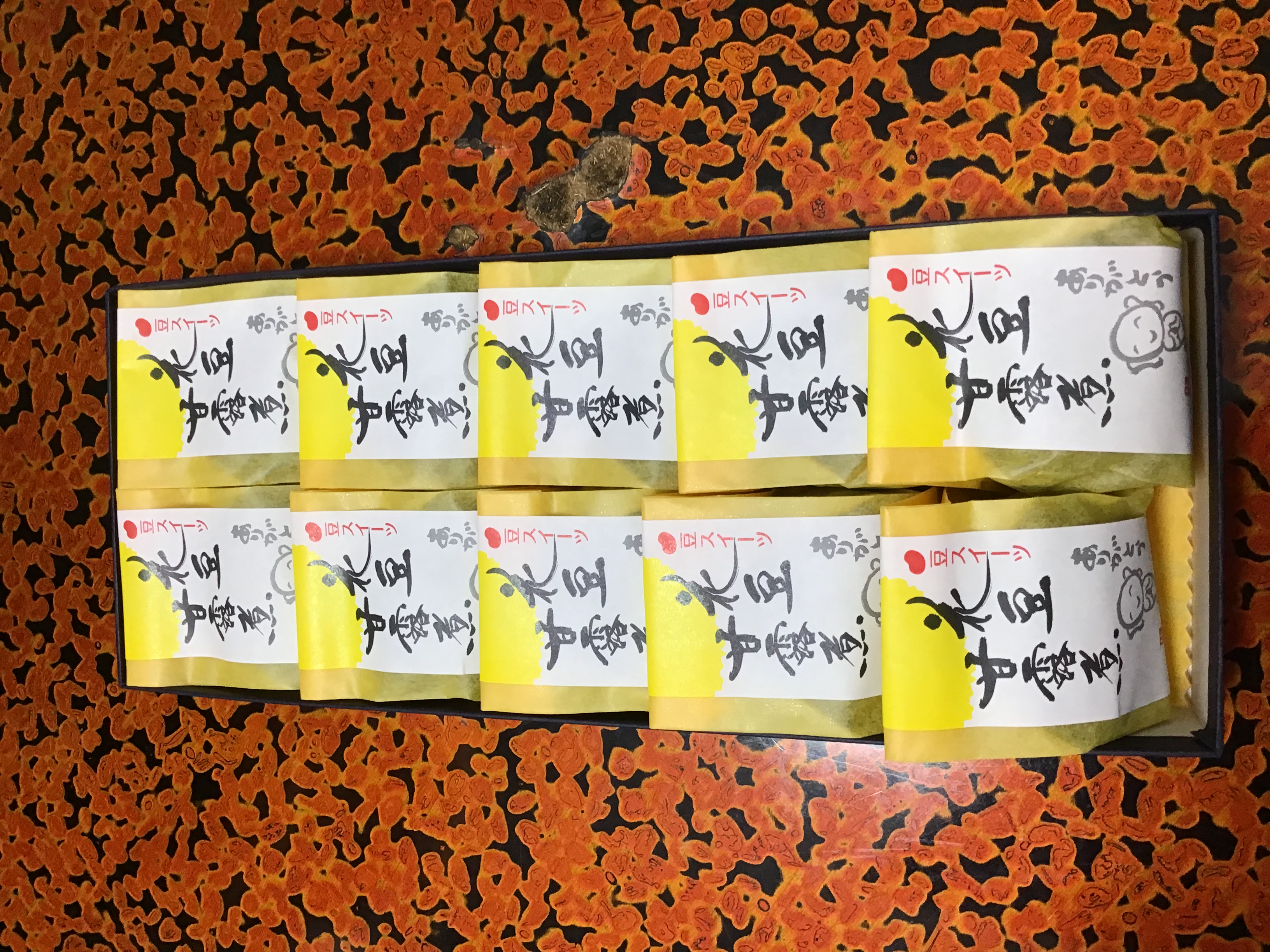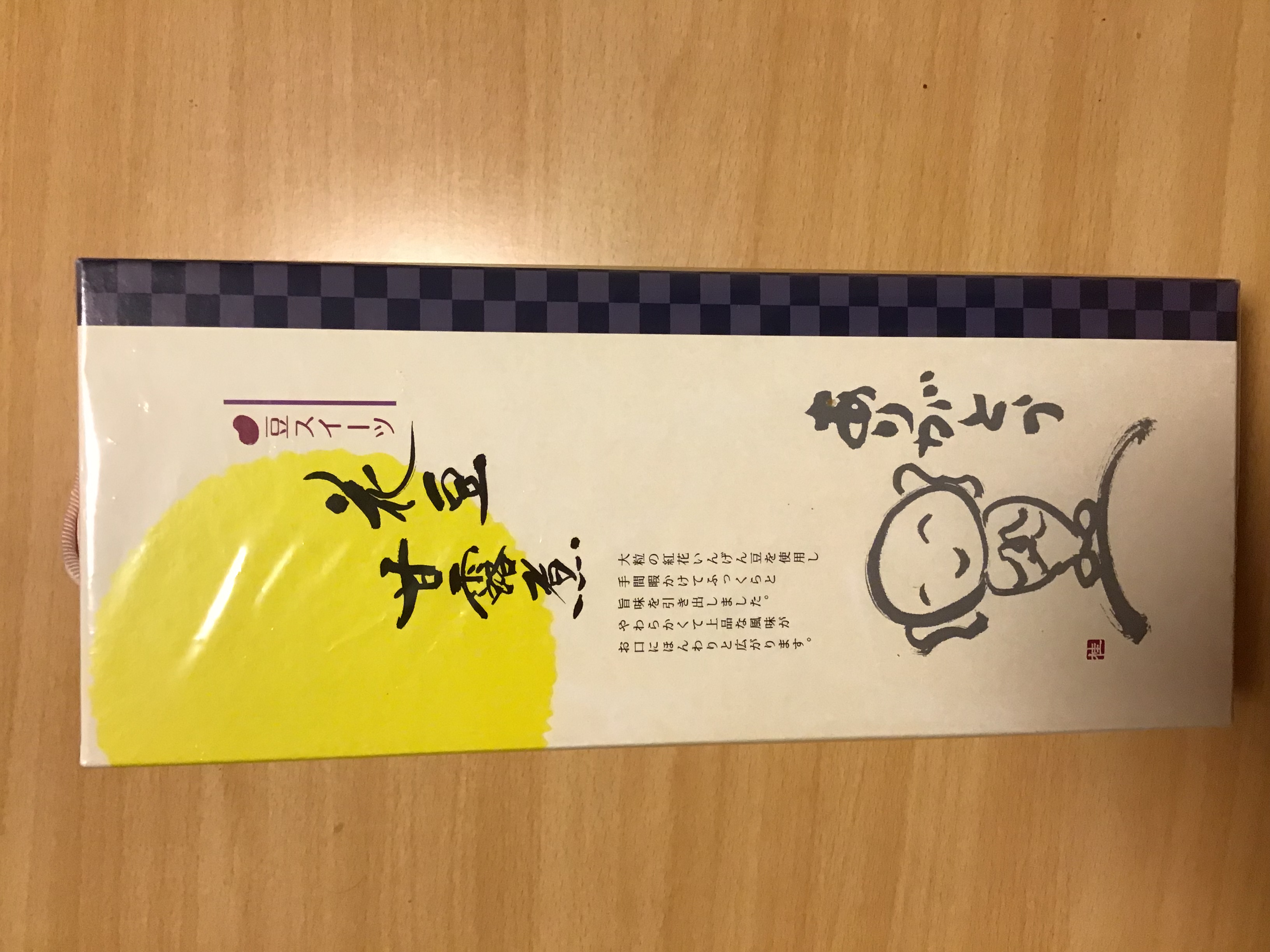箱にお地蔵さんが描かれていて、お盆だね、とみんなほっこり。箱を開け1つ手にすると叔父が「重いな」と。小さい袋に入っているのに、ずしっと重みがあります。祖母に渡すと「大きい豆がいっぱい入ってる」と言い、1つ食べると笑顔になりました。甘党の叔父はお茶も飲まずに「うまいうまい」と映画の某キャラクターのように食べています。お茶を準備してくれた従姉妹が「出遅れた!」と言って座り、叔母も加わりみんな揃って食べました。1袋に8〜9個入っていて、祖母と私は半分こして食べました。従姉妹と叔母も半分こしたので、女性なら2回に分けて食べても良さそうです。