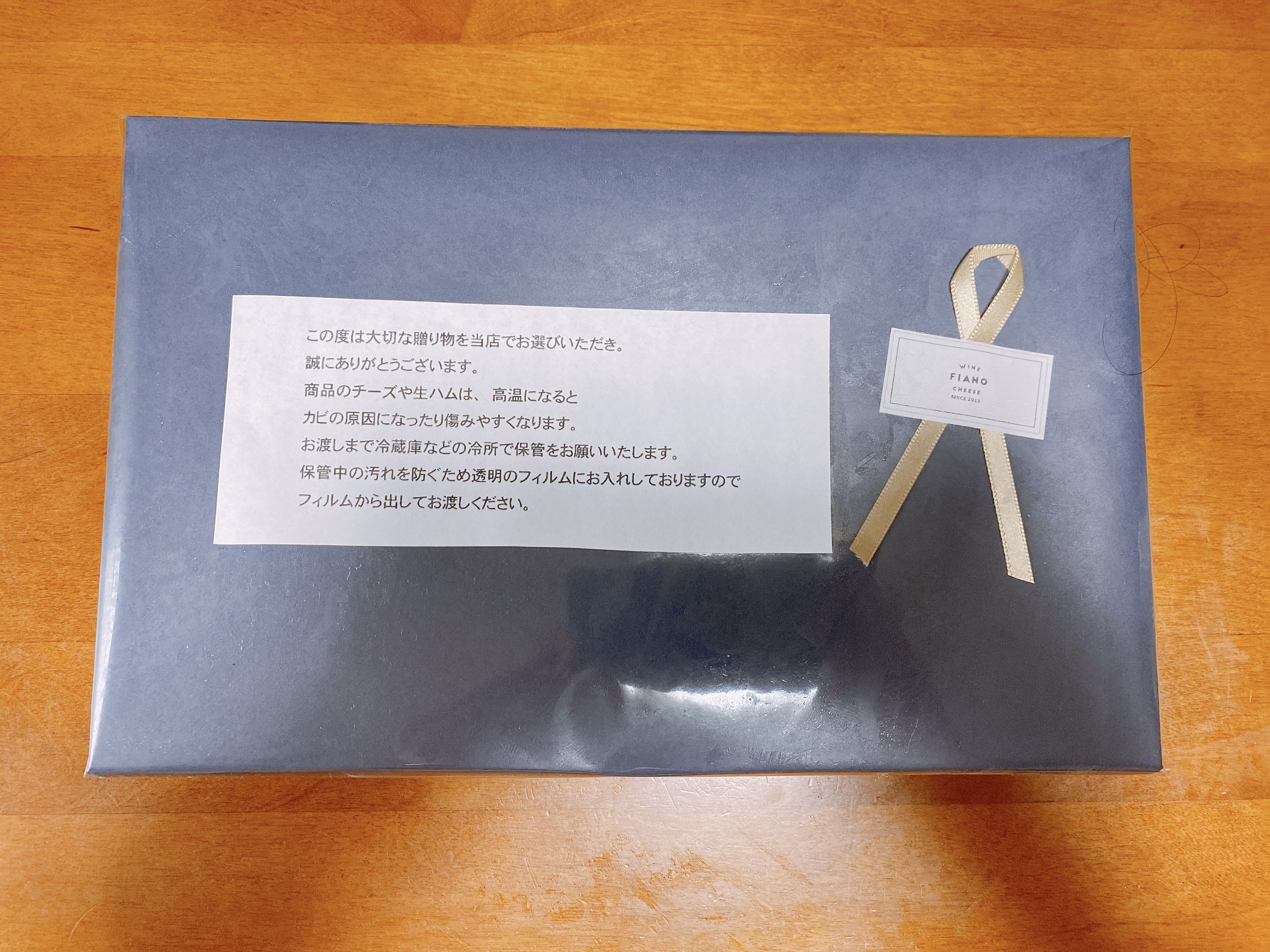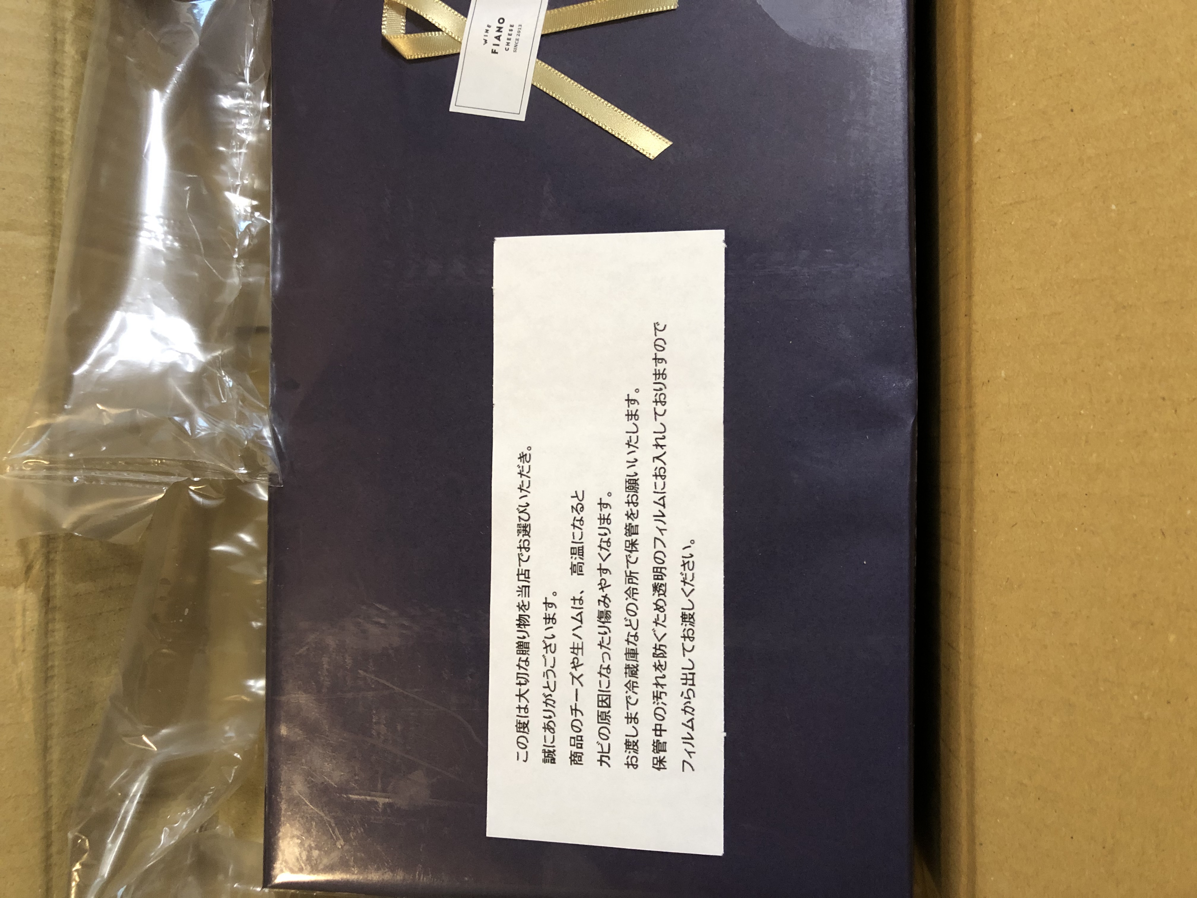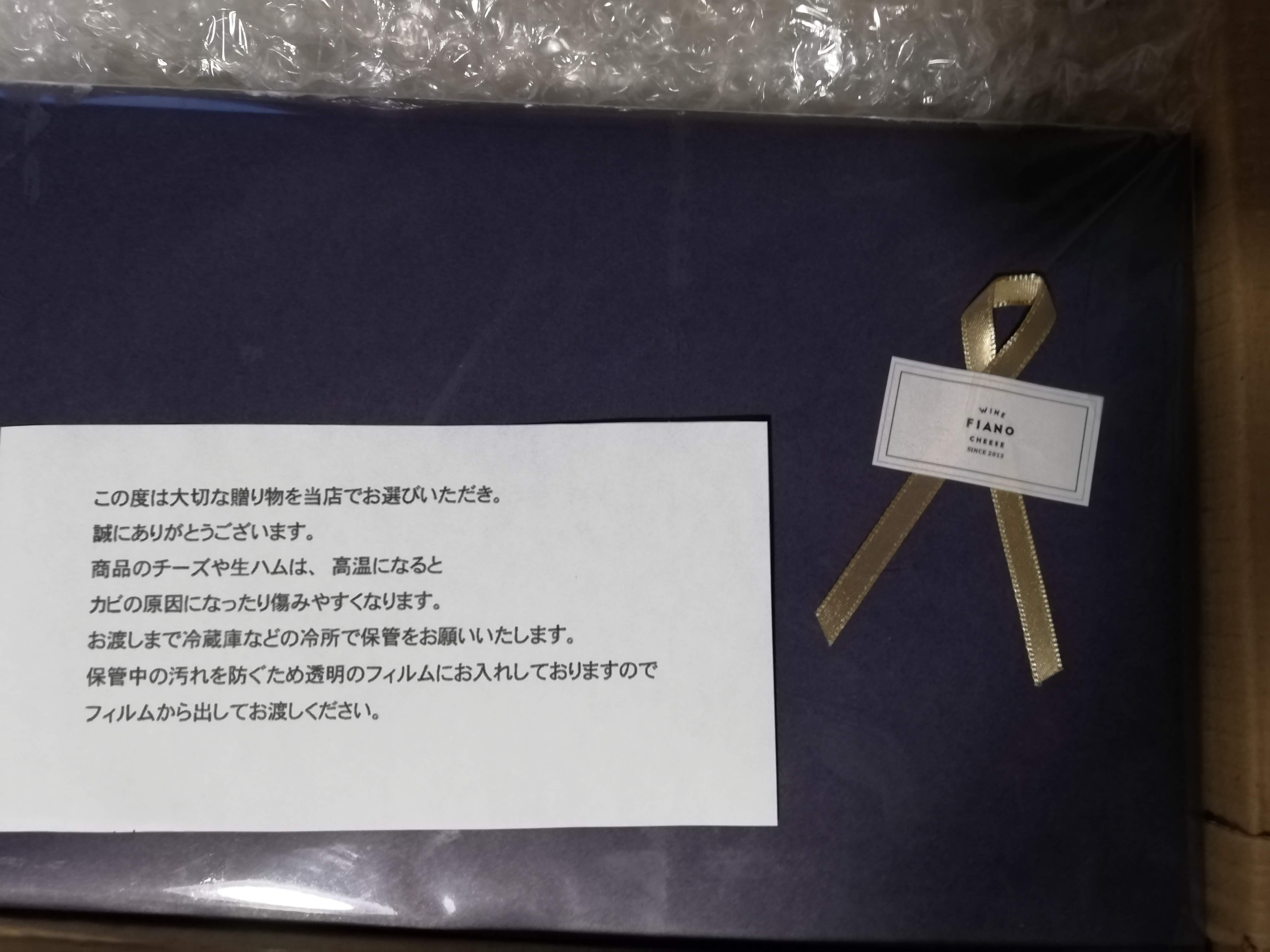 段ボールを開けると、とてもシックな包装紙でラッピングされた商品とメモが。