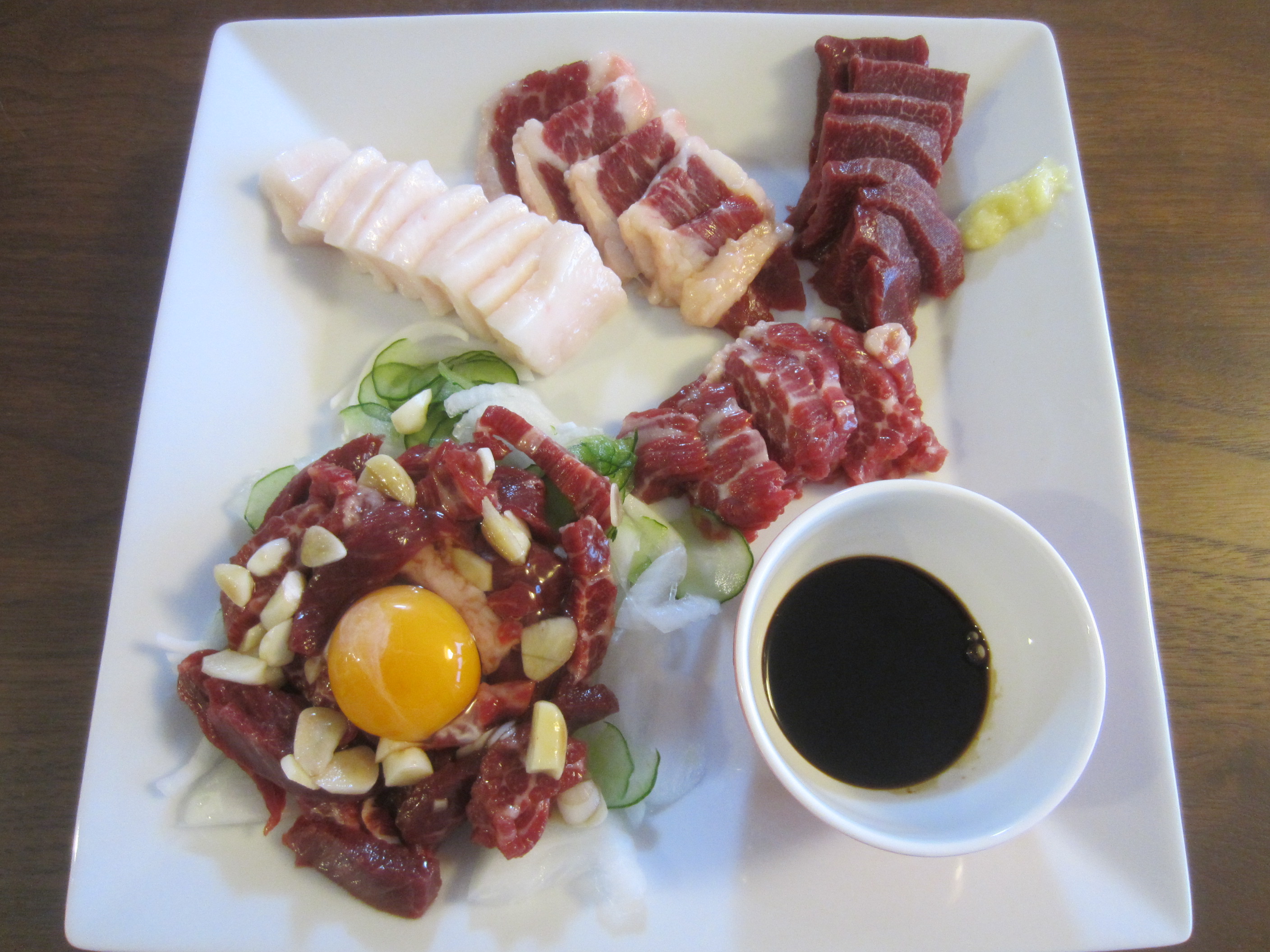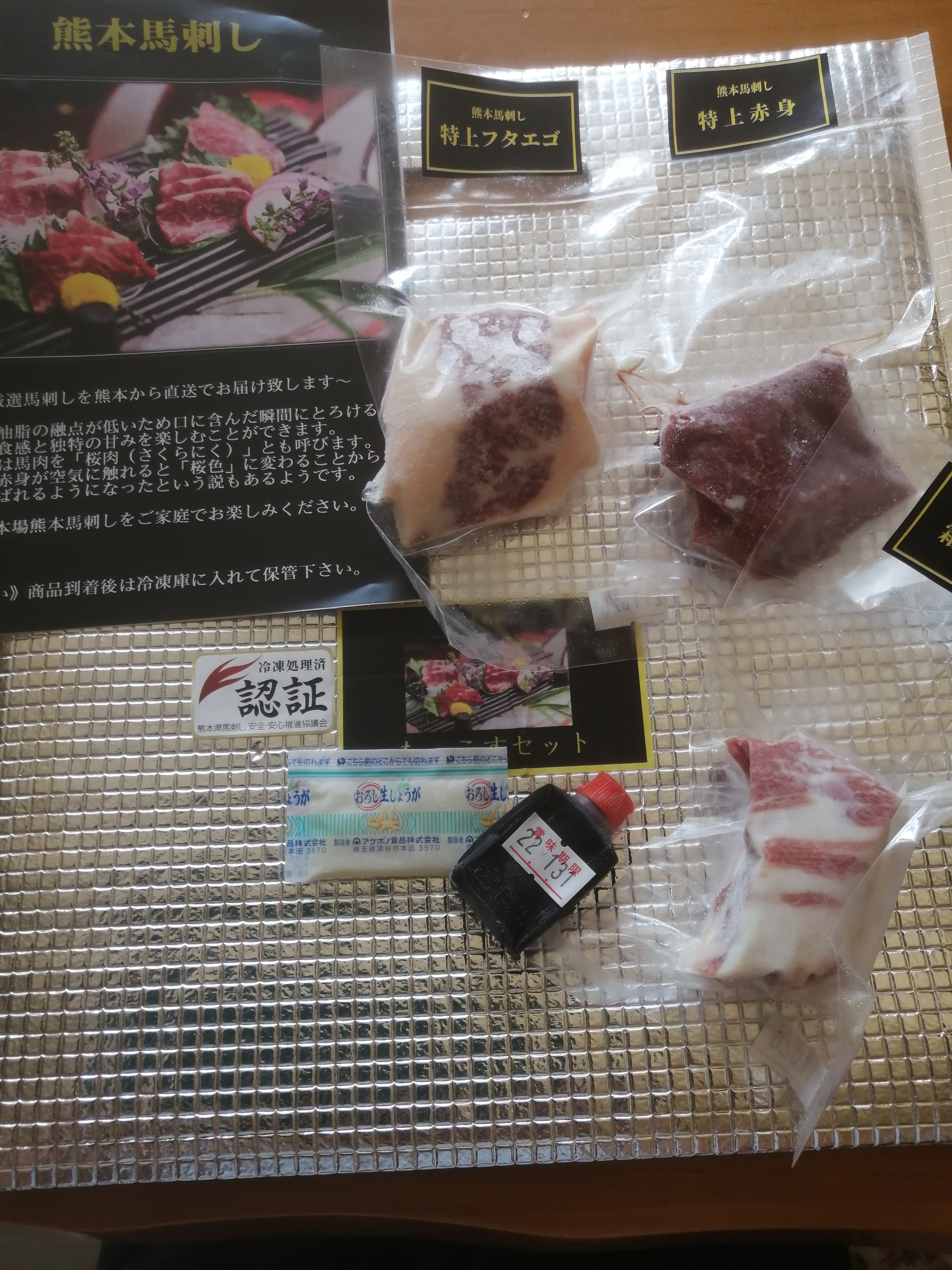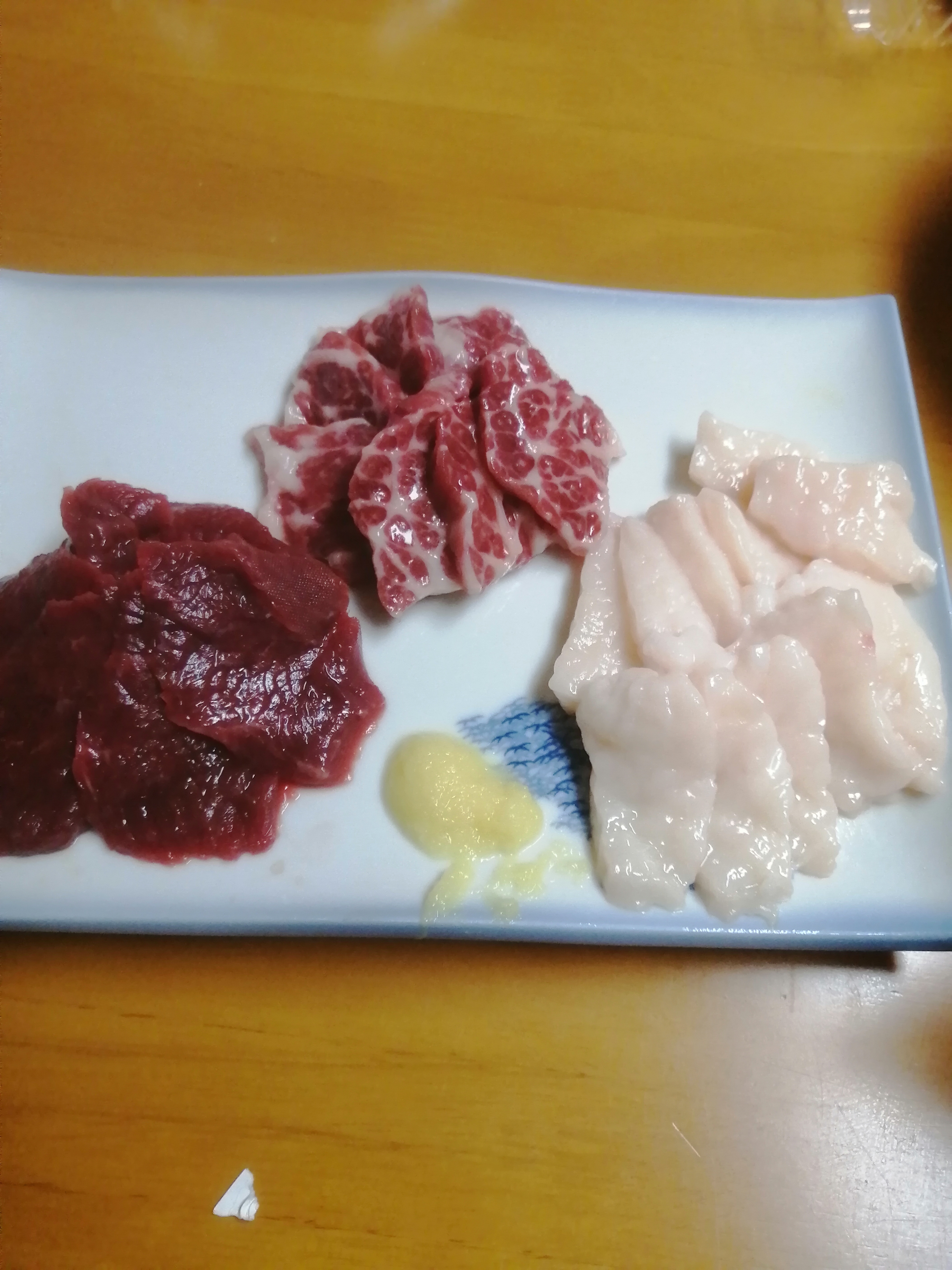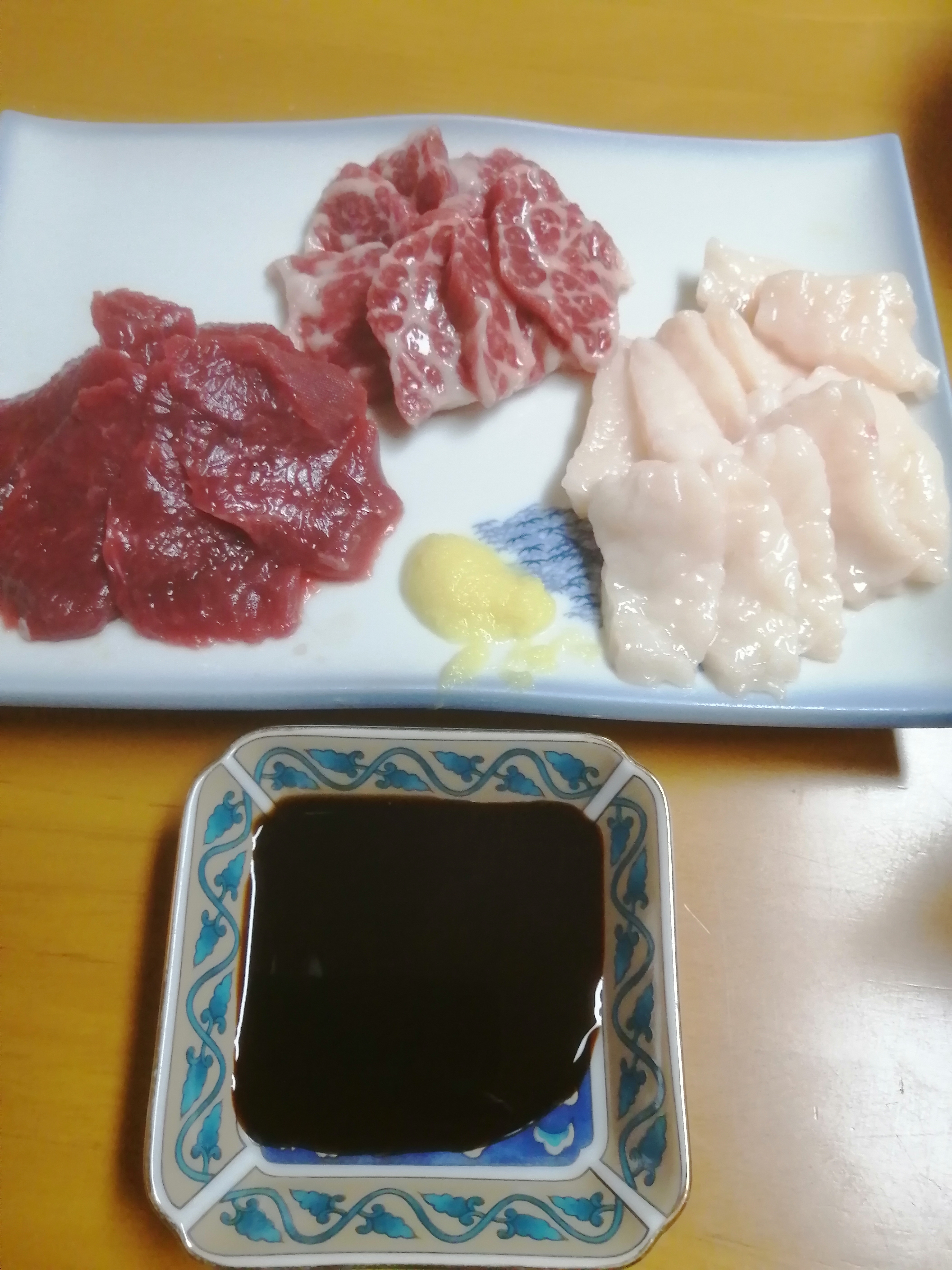 濃いめの醤油が、とても馬刺しに合います。我が家の醤油はあっさりしているので、美味しさが半減していたかもしれません。