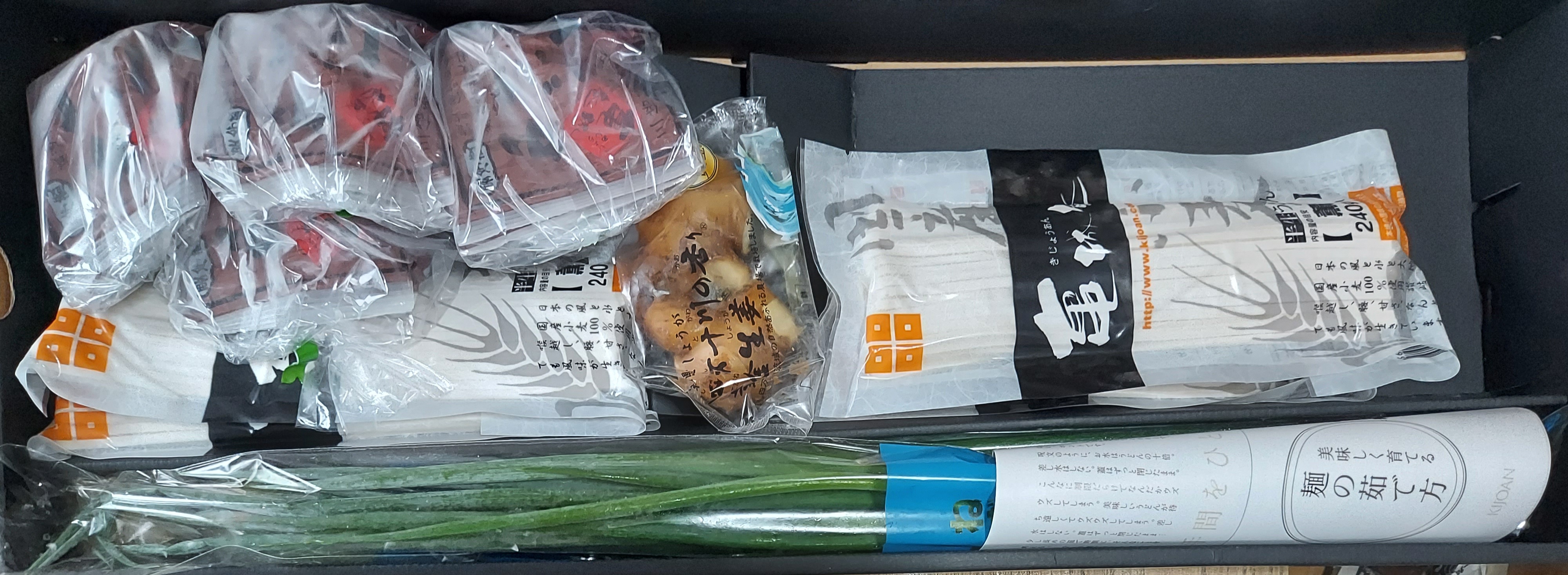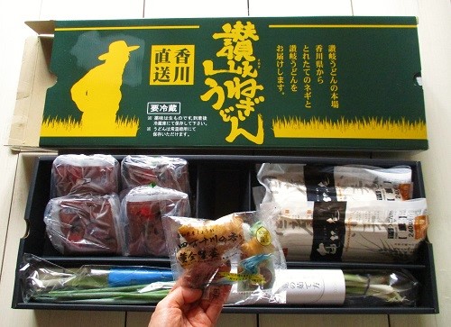 準備する必要がないですし、また入っている細ねぎも生姜もご当地の拘りのものが付いてきます。讃岐の細ネギと高知の黄金生姜もカットされたものではなく、鮮度を生かす為に細ねぎは長いまま、生姜は丸ごと付いてきます。