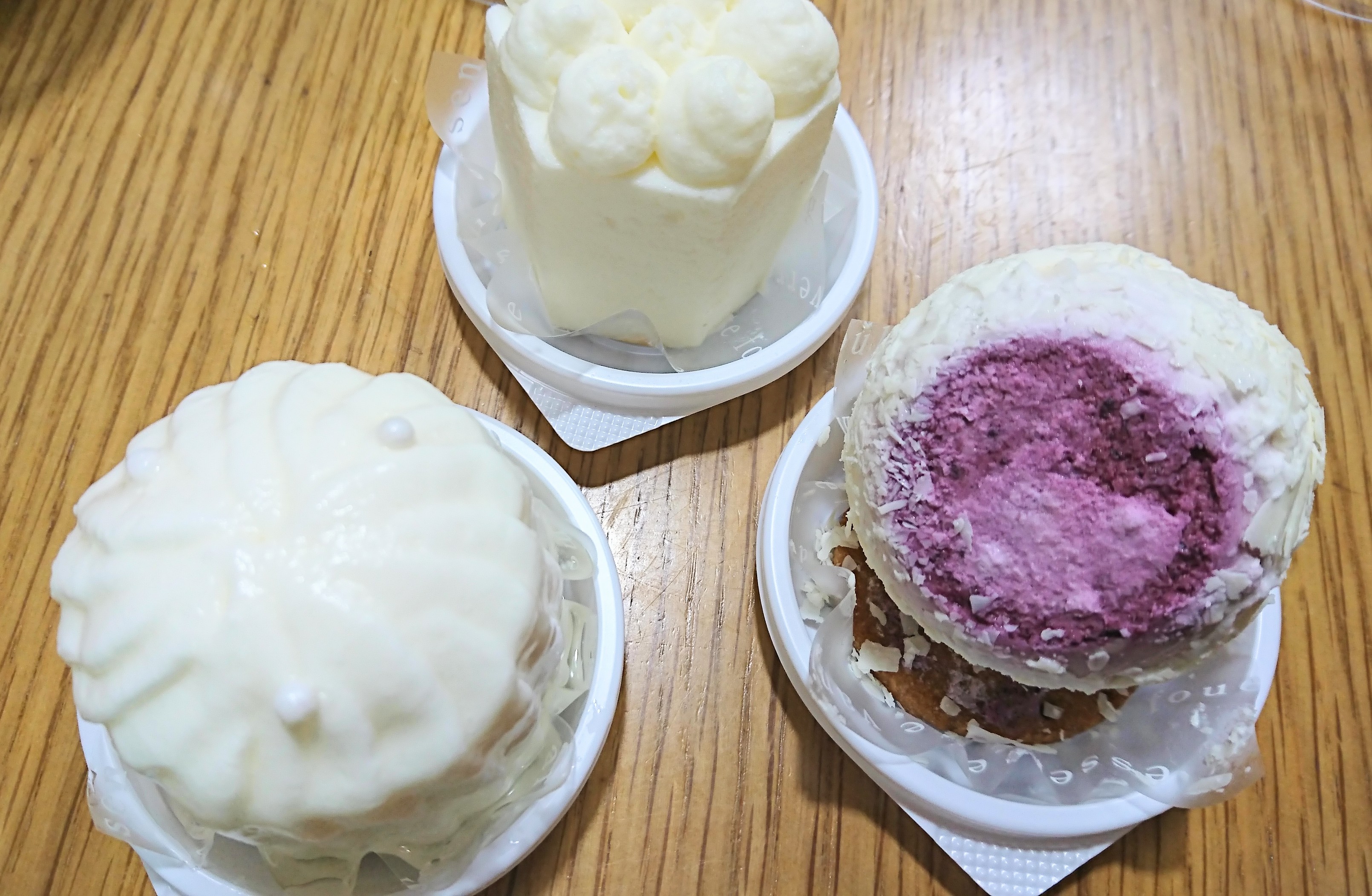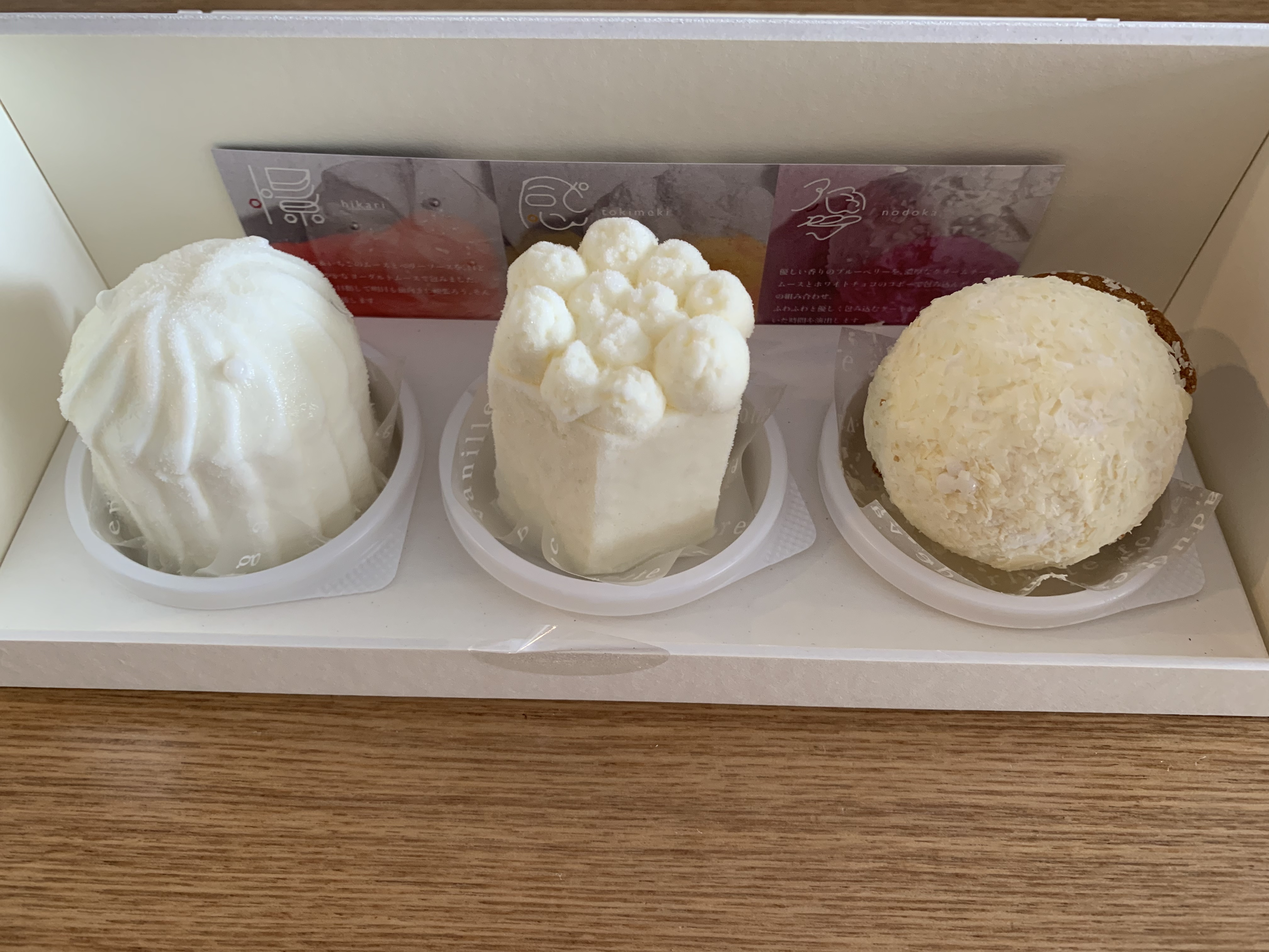 3つのケーキを楽しめるので、ひとりですべてを食べ比べるもよし、皆で食べるのもよいです。