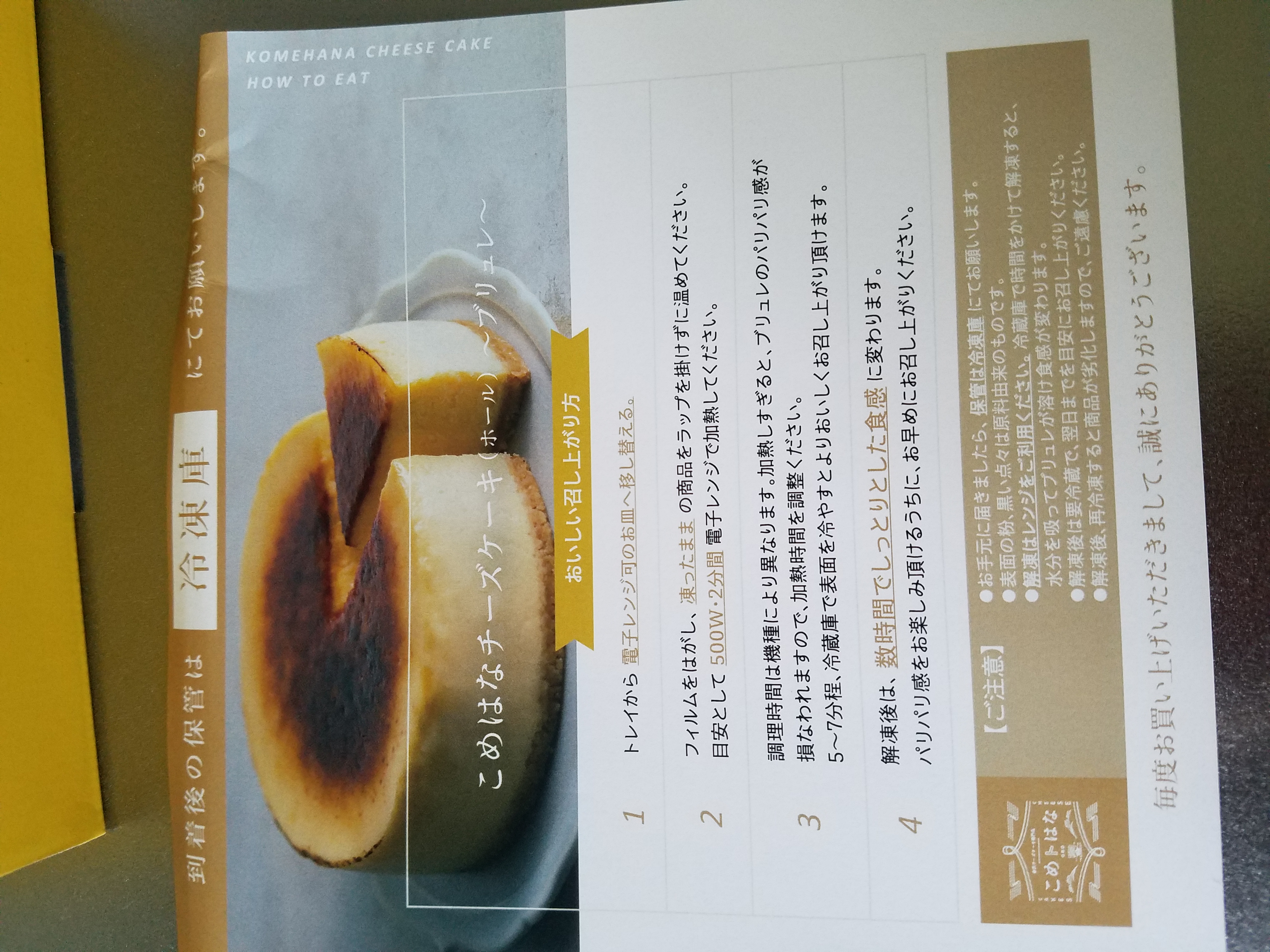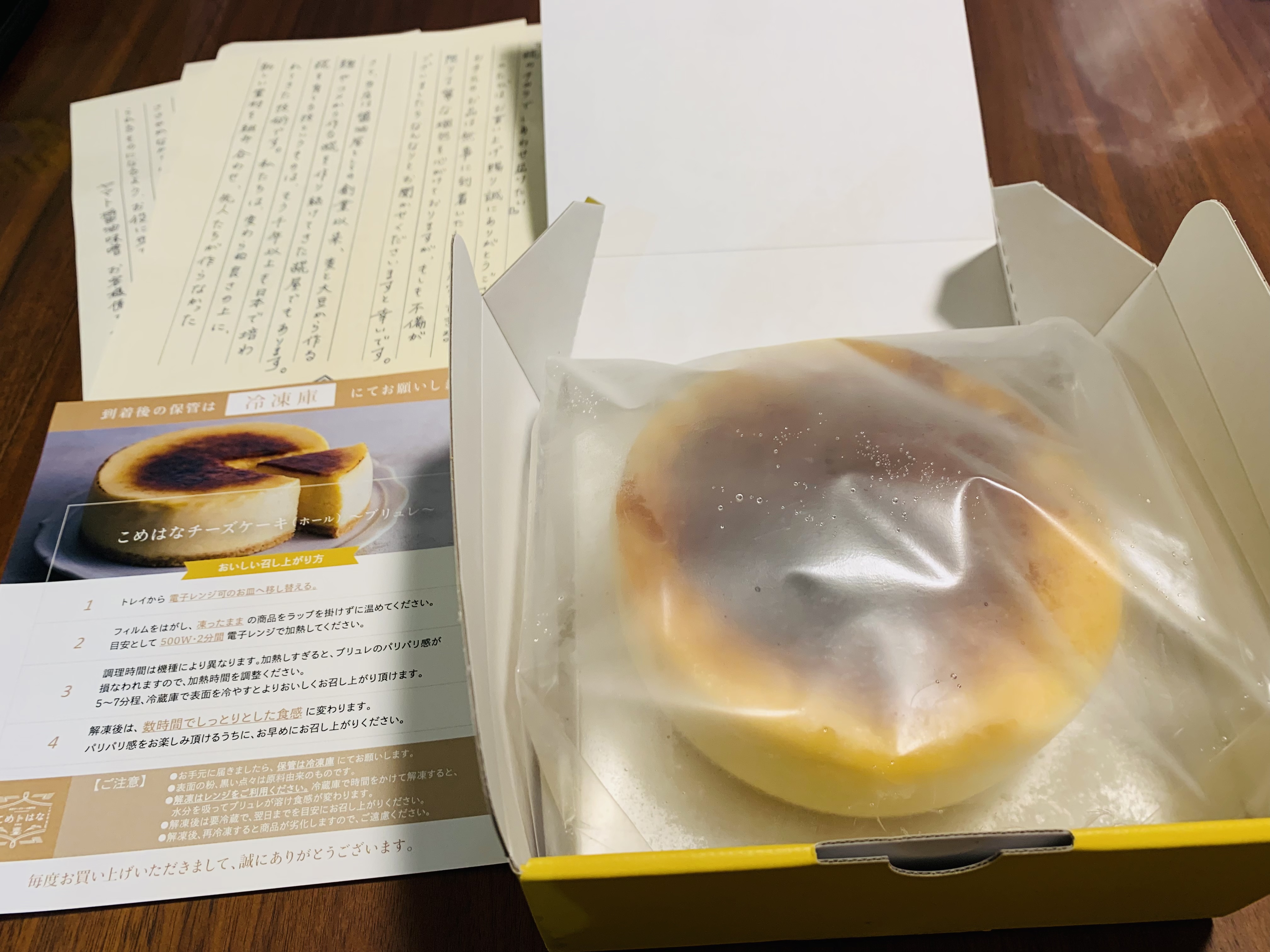商品等のパンフレットが数枚入っていましたが、召し上がり方の紙は間に挟まっていました。