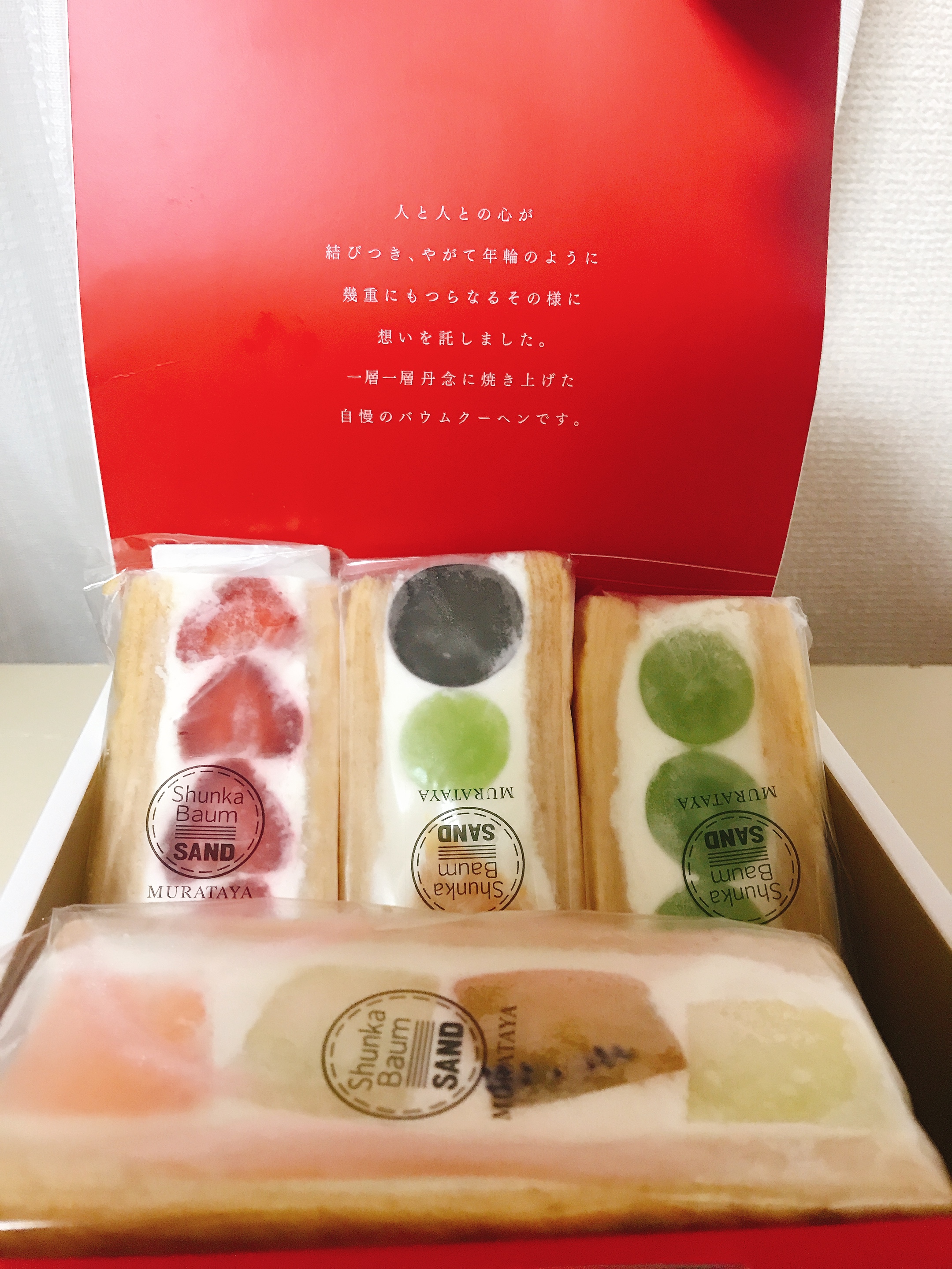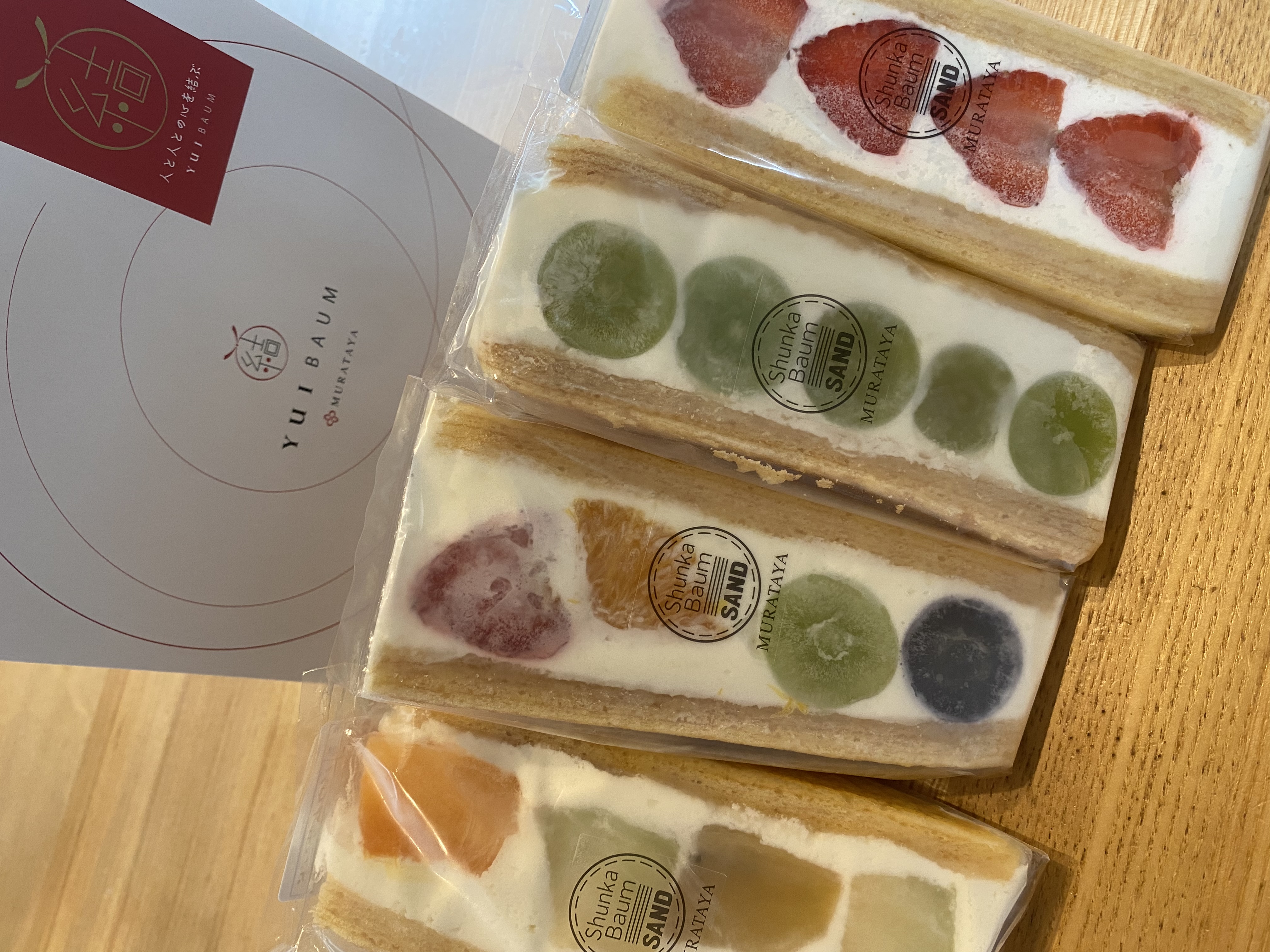 世界初の「バウムクーヘンで作った」フルーツサンドです、ぜひ召し上がりください!
