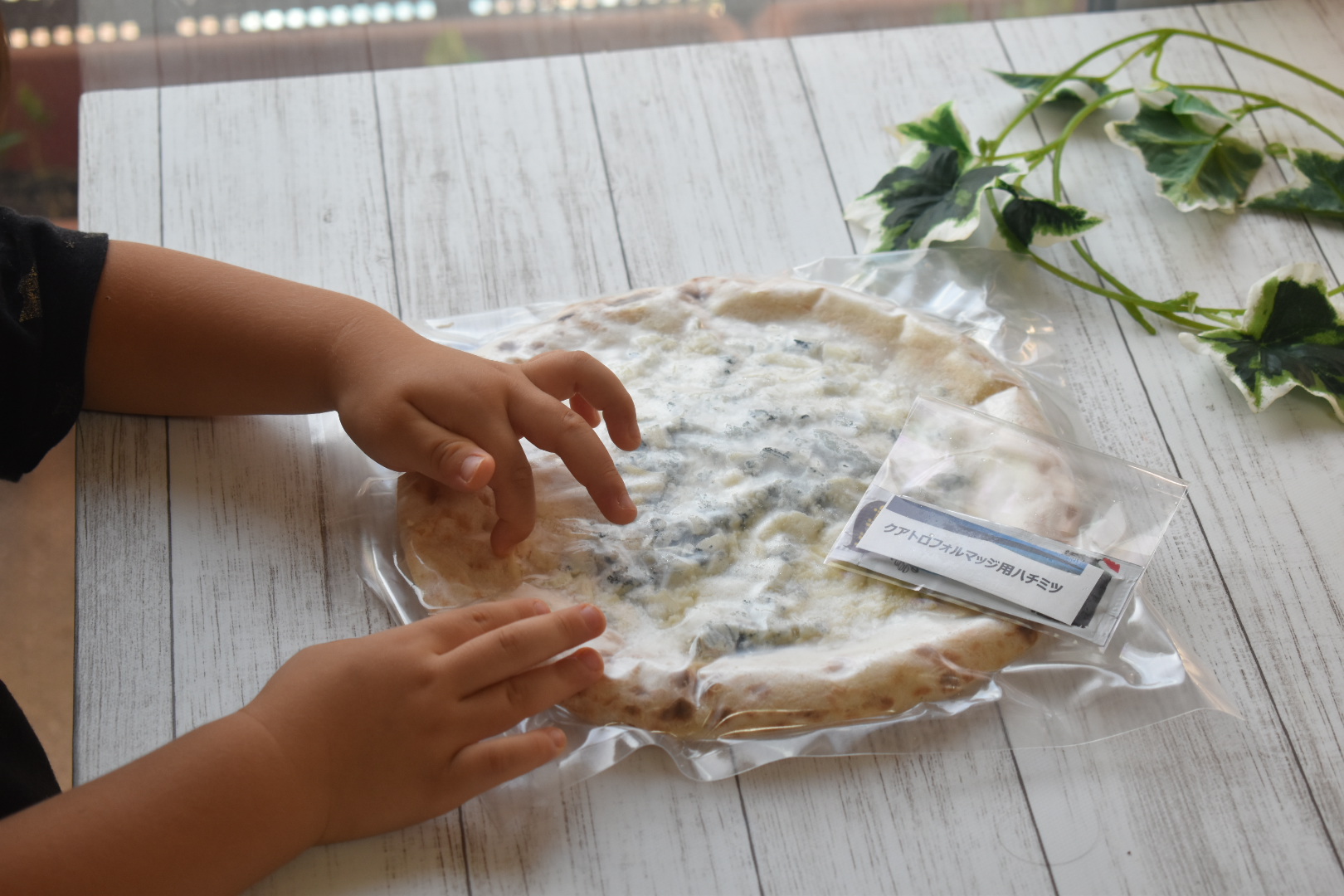 解凍後、焼き上げる前にピッツァの表面に霧吹きなどで水をかけると、美味しく焼き上げリます。