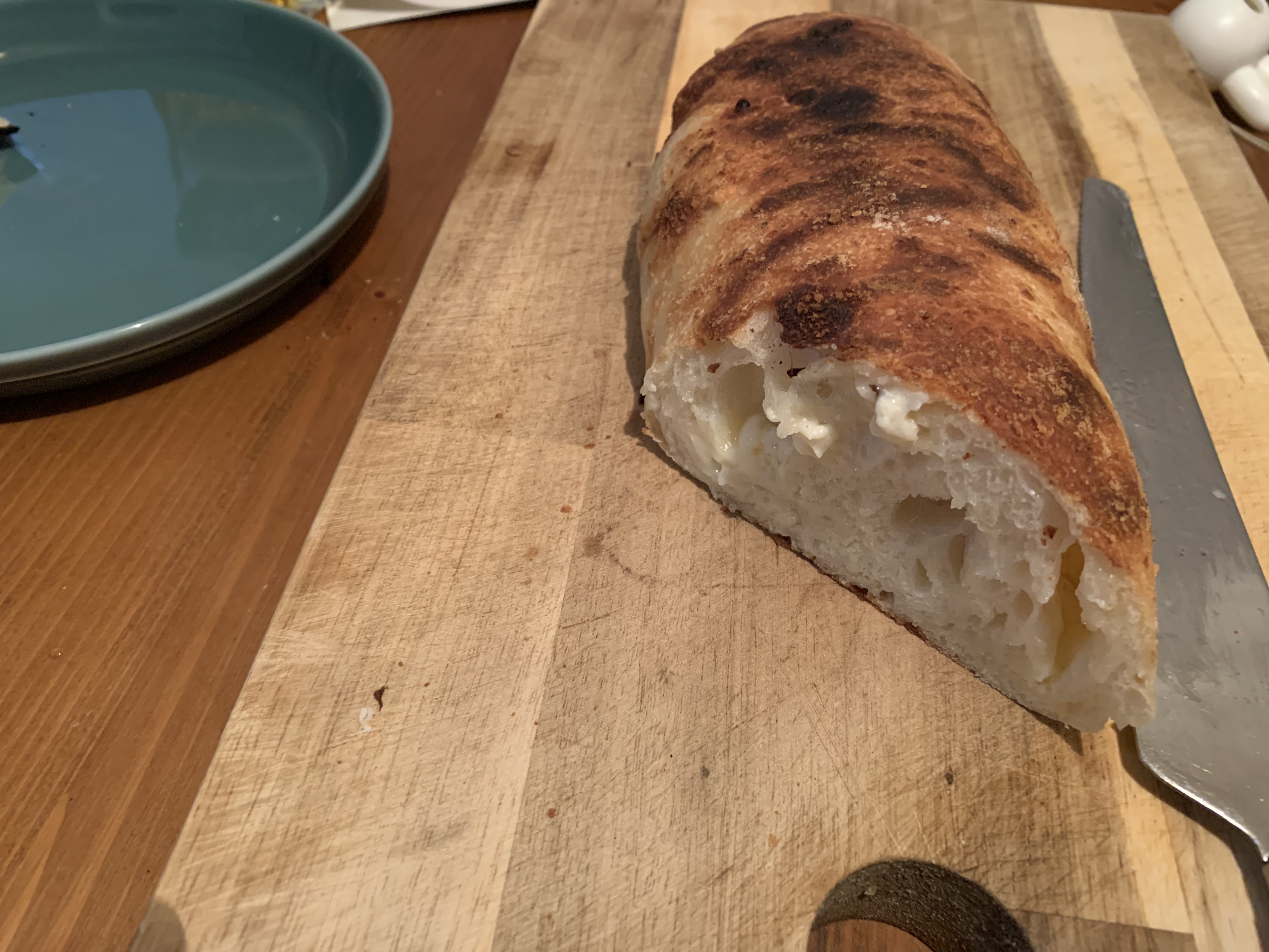 高加水な雰囲気が漂っています。中にナッツとオリーブ。