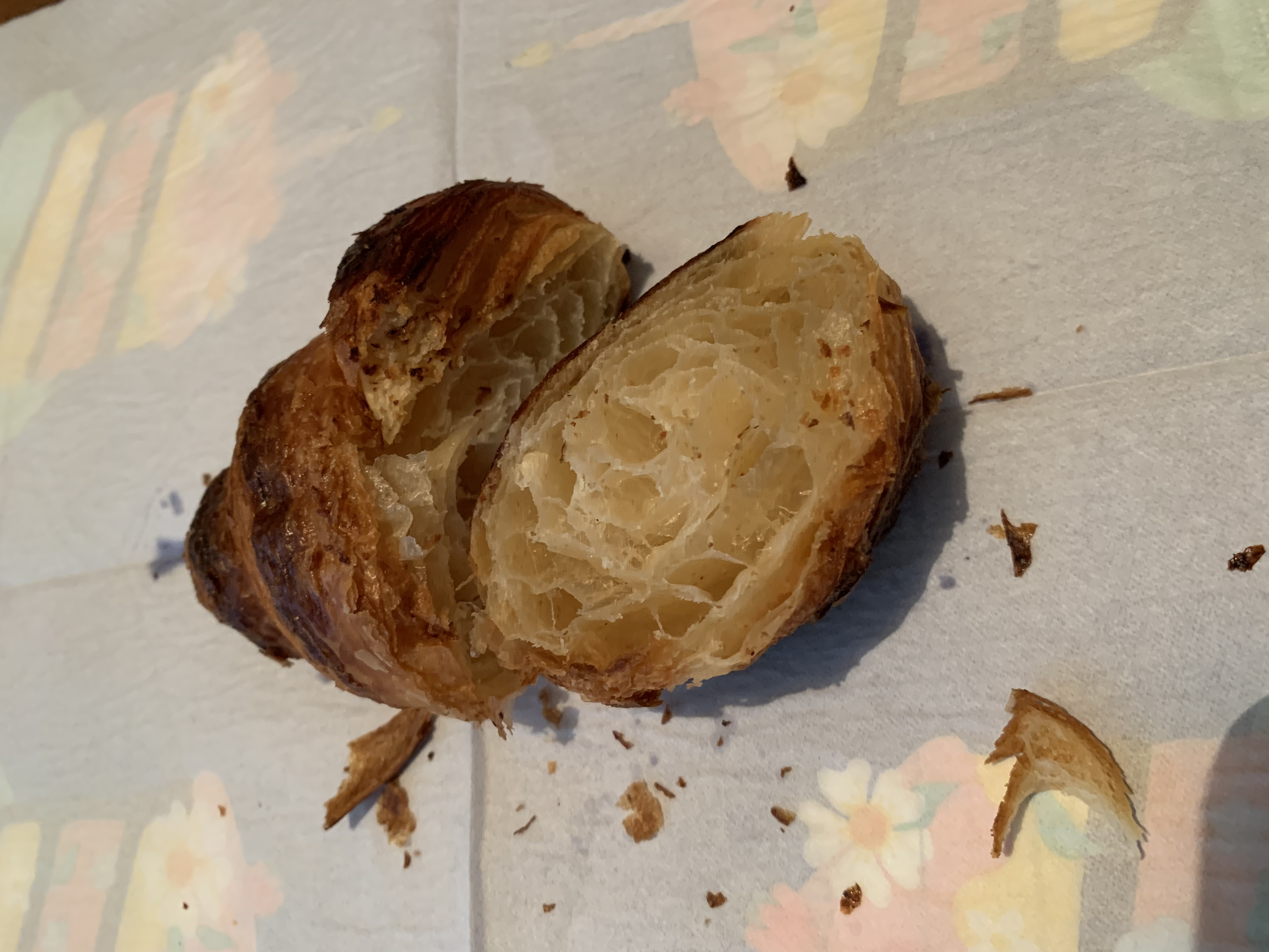 ここまで味見した時点で、ここのパンは間違いないわ、理解したので、味見で食べるをの休止し、こちらはちゃんとトースターでリベイクしてから食べました。サクサク。バター。最高…。生地の旨味感もしっかりあるクロワッサンです。