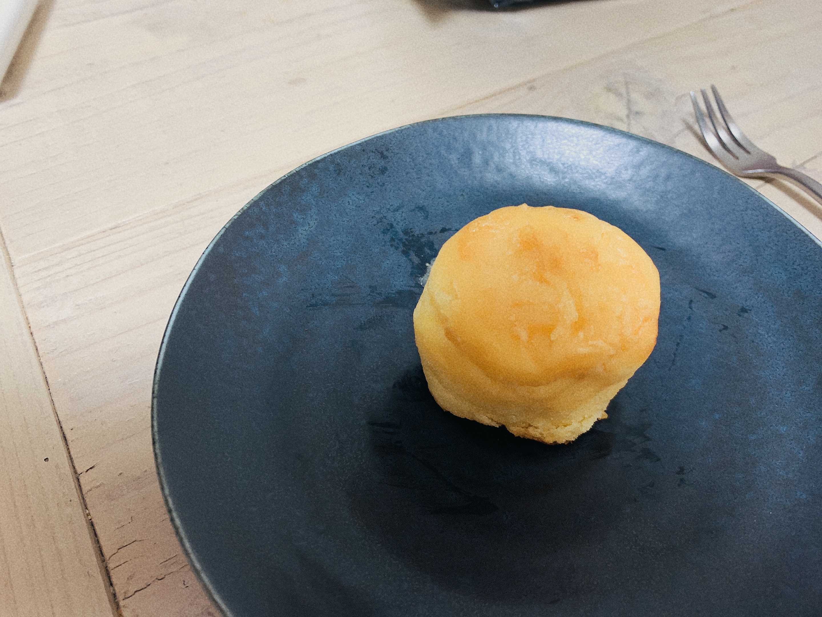 個包装を開けるとスイートポテトが一つ入っていました。スイートポテトのカップには、サイドに切れ目が入っており、綺麗にペリッと剥がしお皿に乗せることができました。