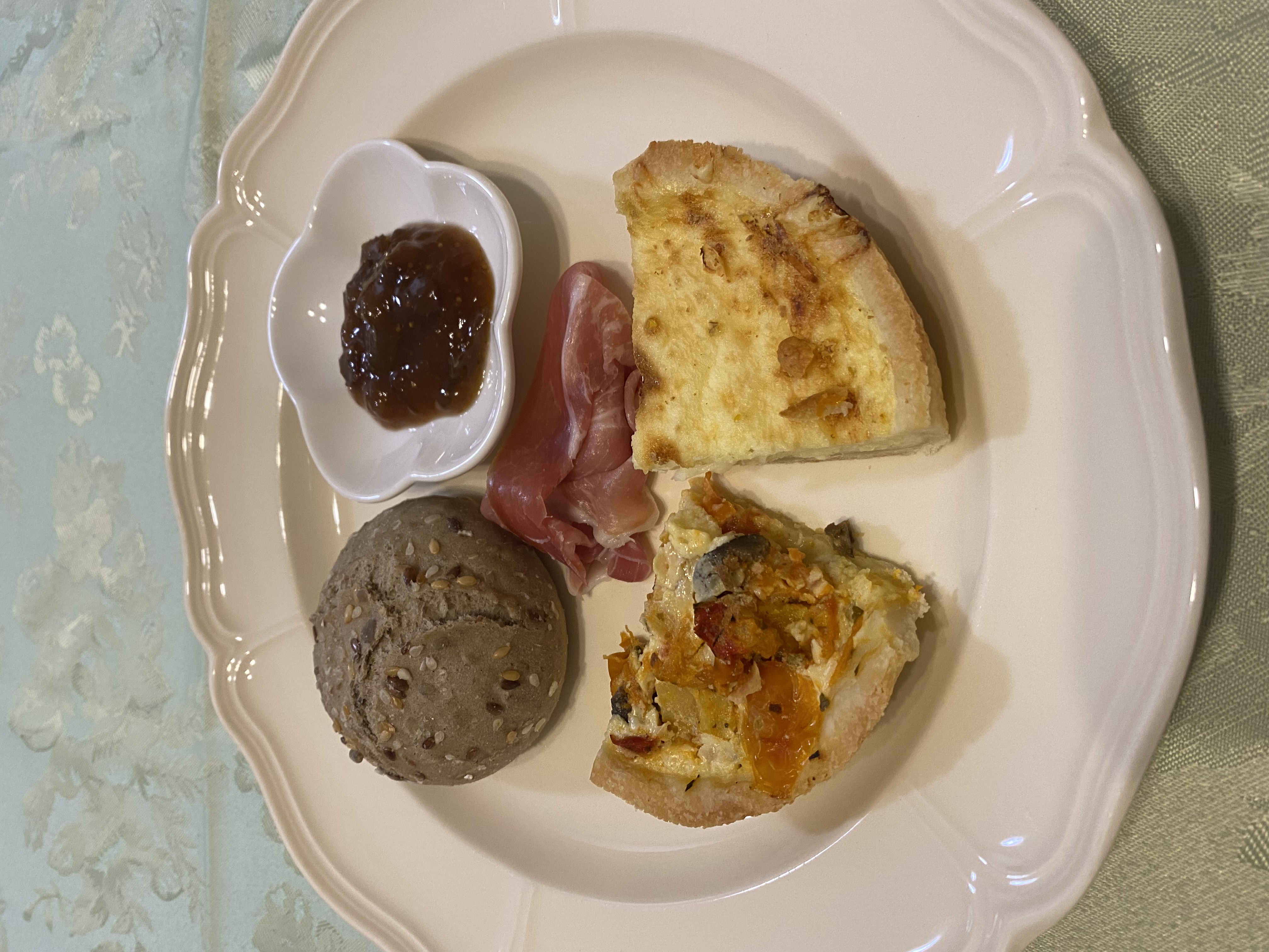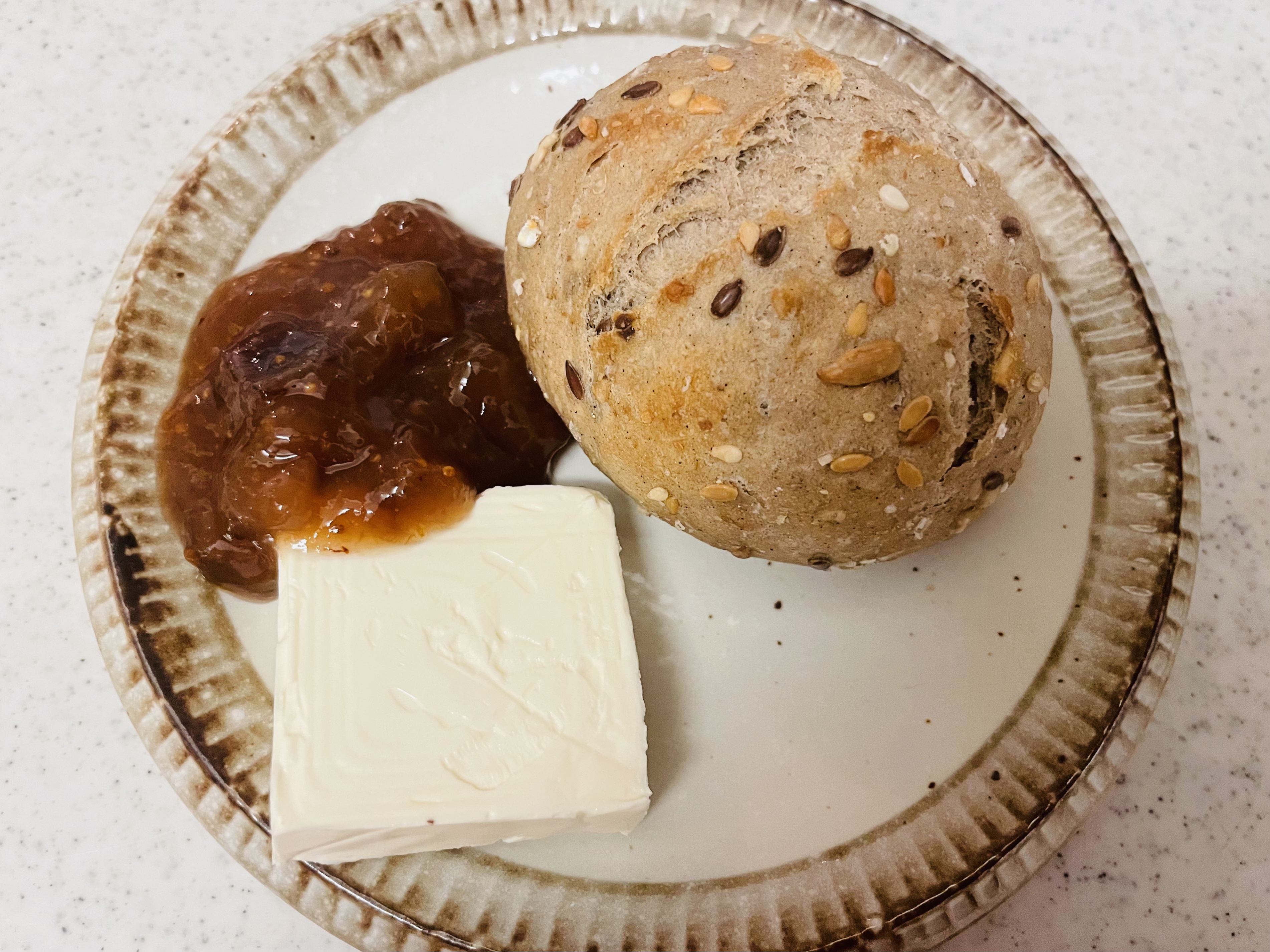 穀物入りのミニシリアルロールと紫いちじくの粒がたっぷりのジャムの組み合わせで満足度アップ。紫いちじくジャムはペッパーやにんにくを加えて、キッシュやピザのソースにアレンジするレシピもおすすめ。
