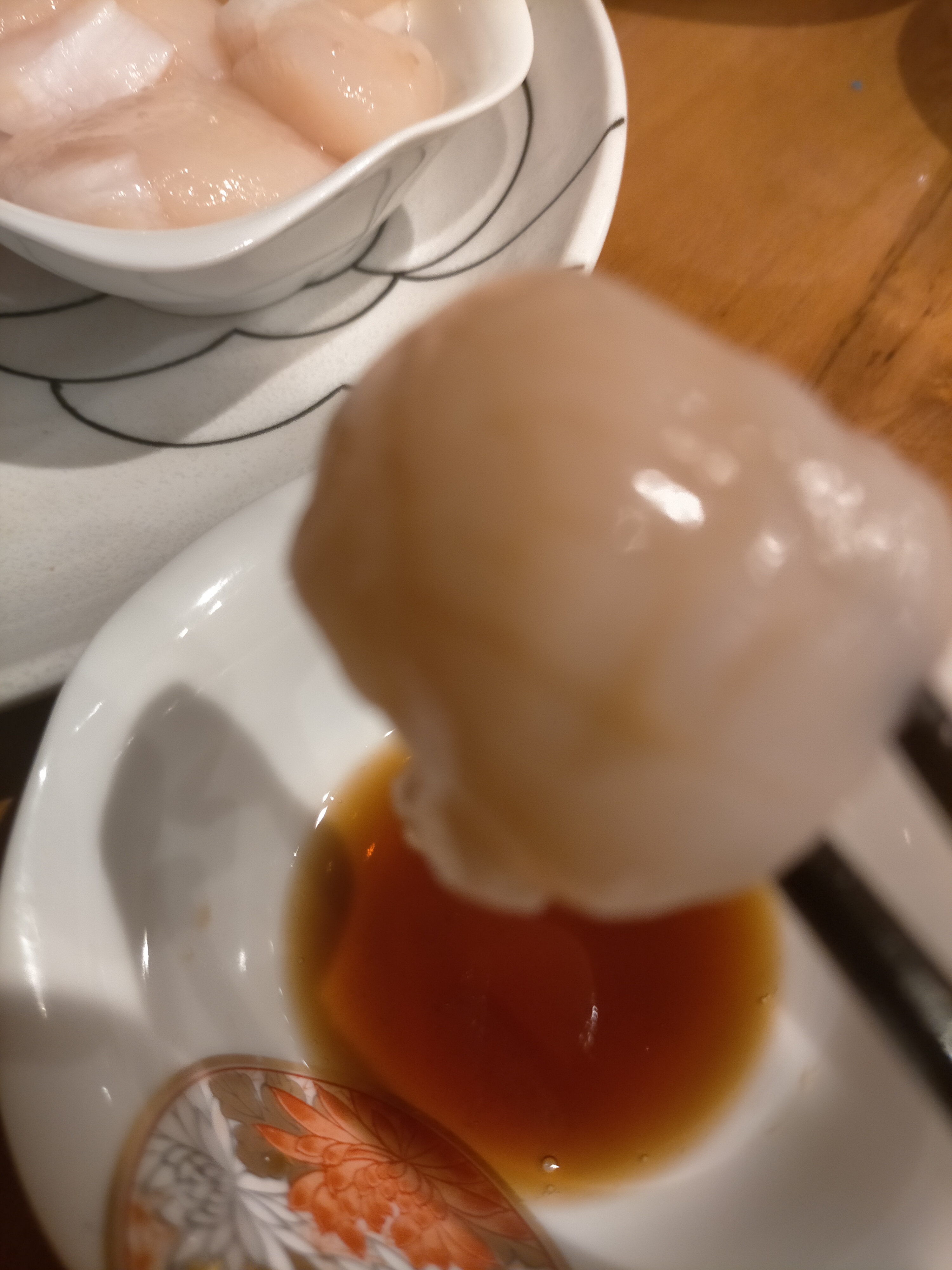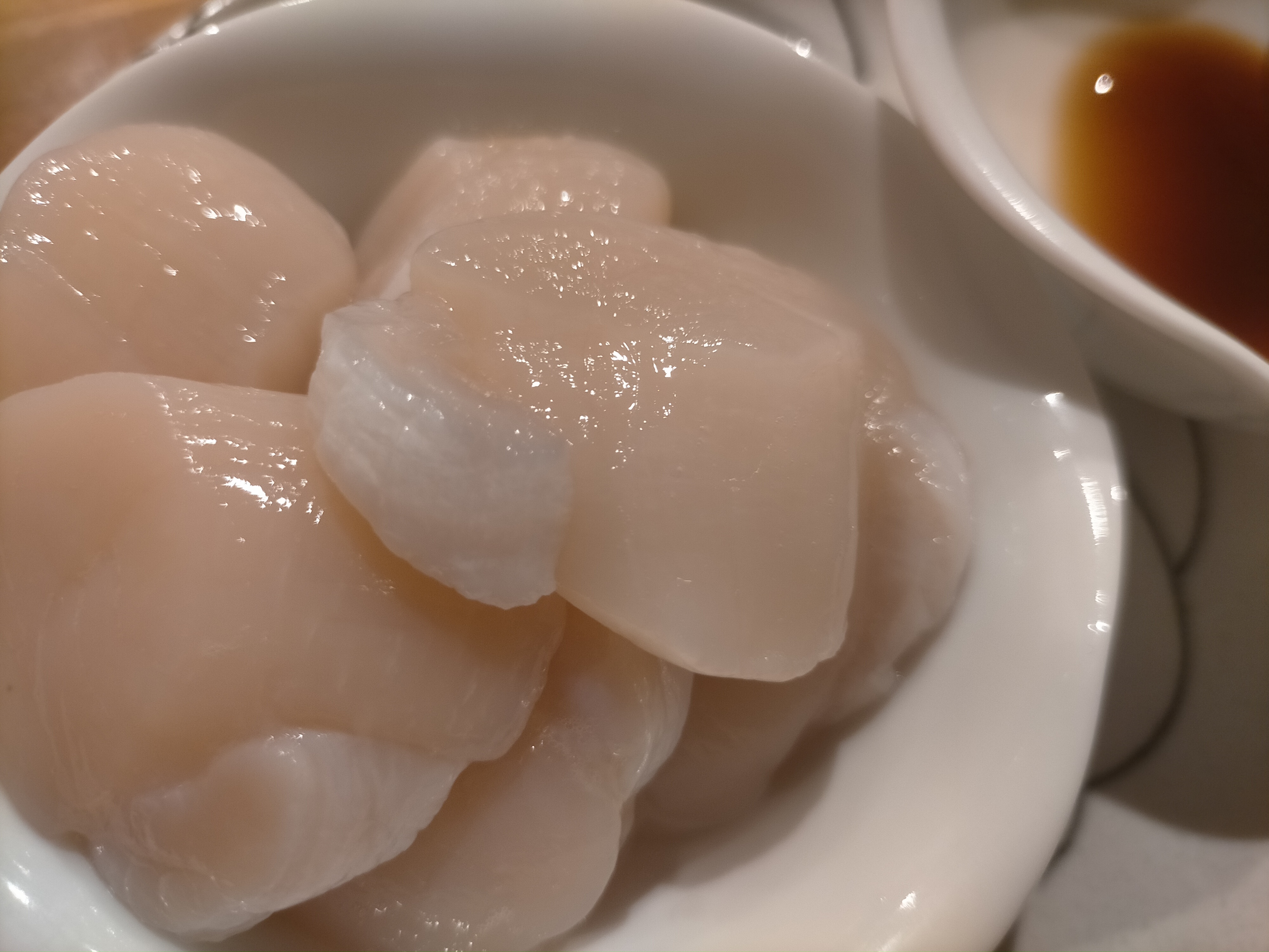 お刺身ってお醤油の味が勝ったりするのですが、こちらのホタテは甘みが勝つんです!!
