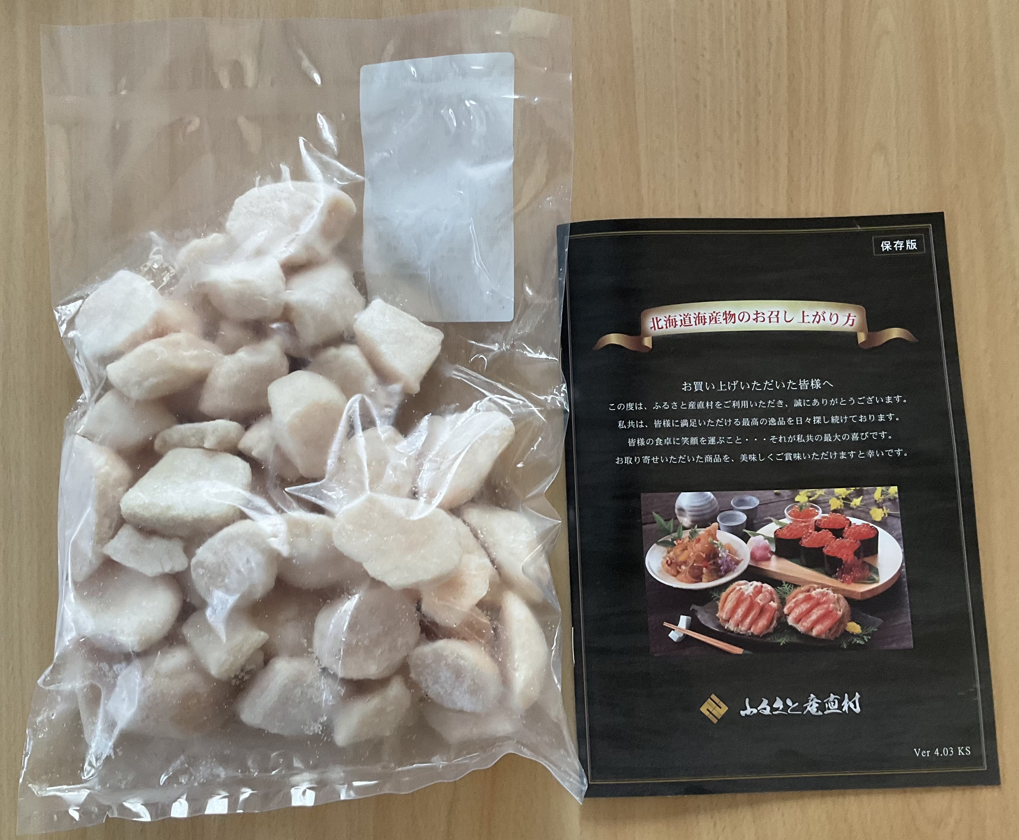 届いたホタテ貝柱を見た瞬間、その大きさと透明感のある美しさにまず驚きました。冷凍で届いたのですが、その状態でもひとつひとつがふっくらとしていて、まるで新鮮なまま海から上がってきたような存在感があり、食べる前からワクワクしました。