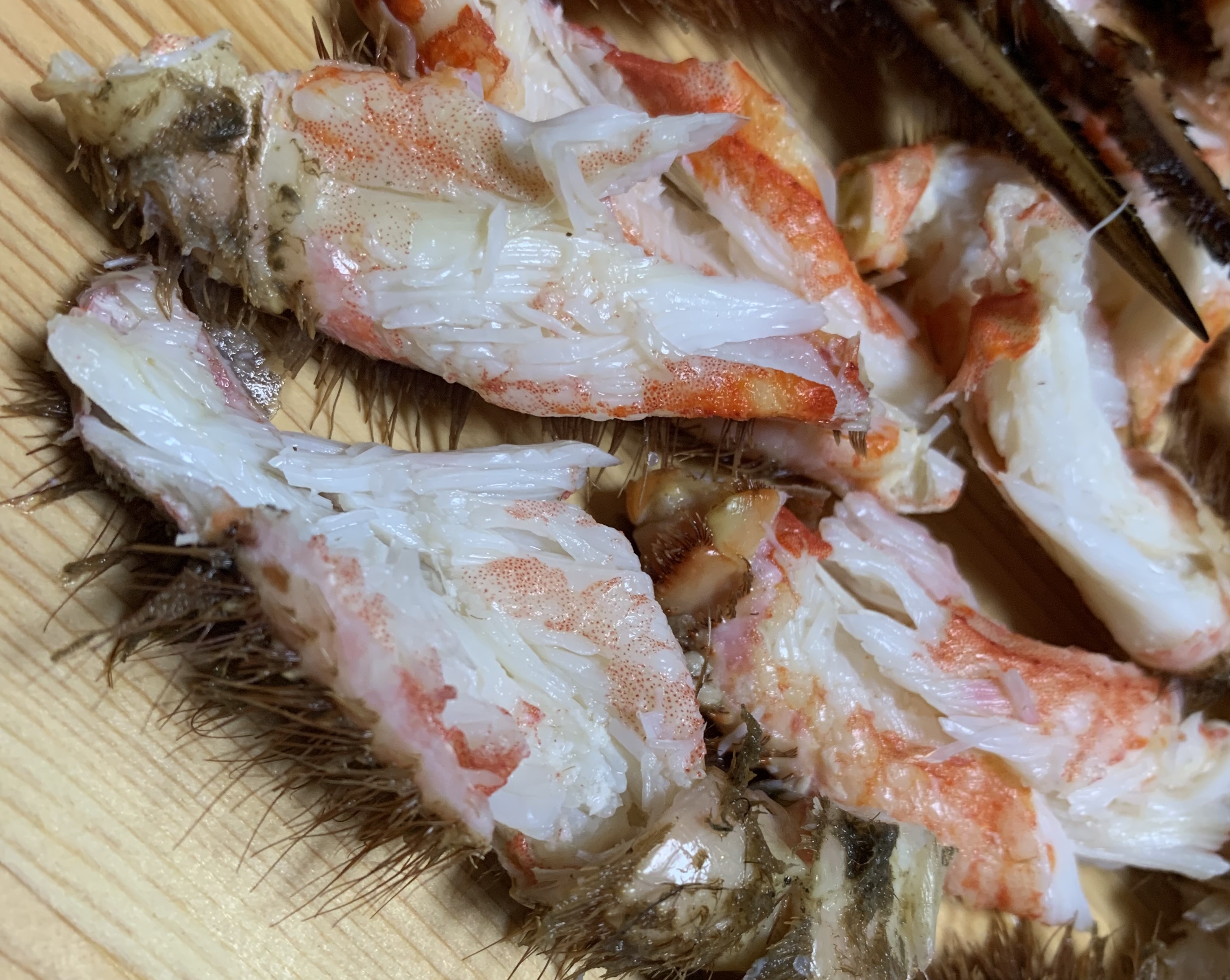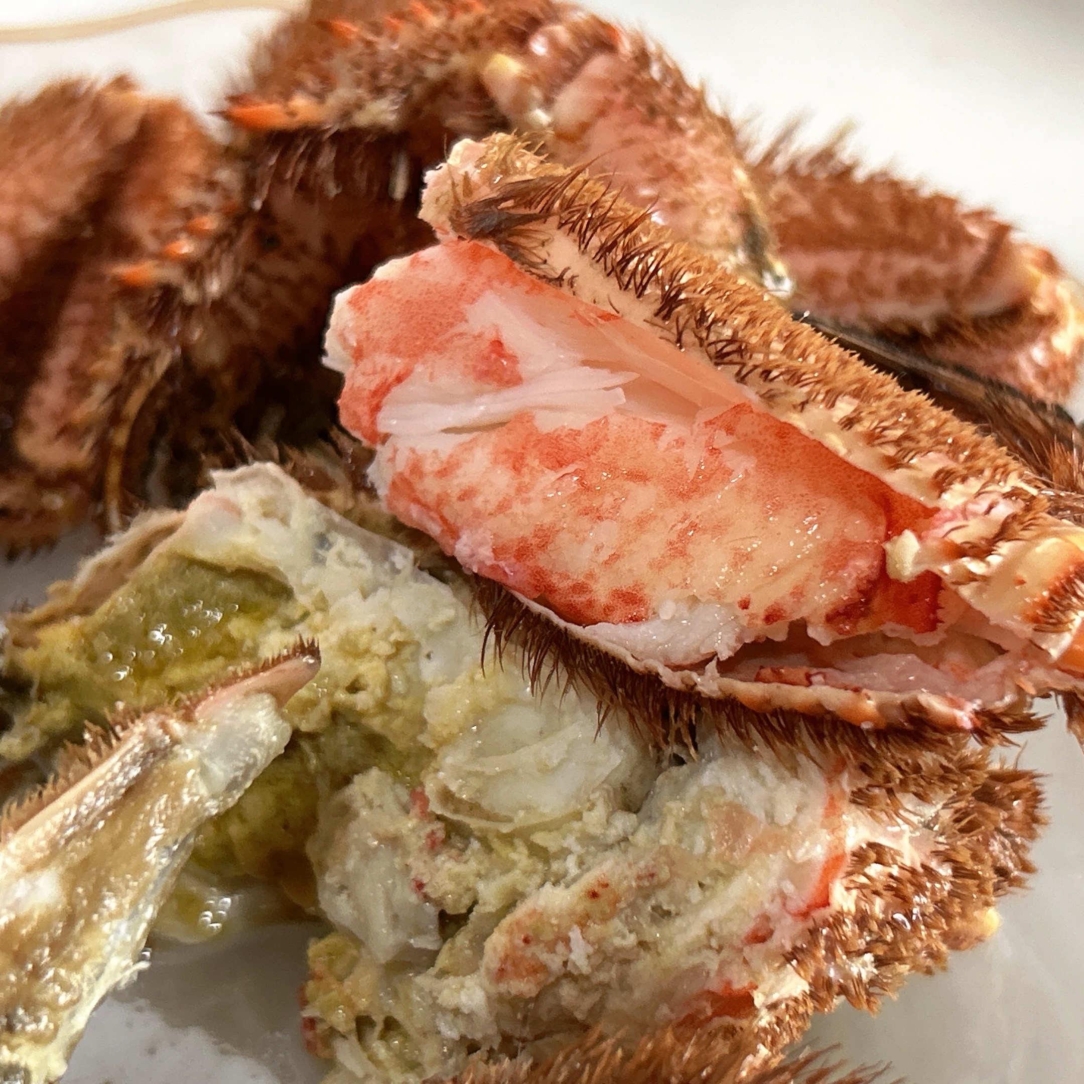 甲羅を外すと、カニミソが思った以上にたっぷり入っていてビックリ!全ての足に、身もぎっしり詰まっていました。