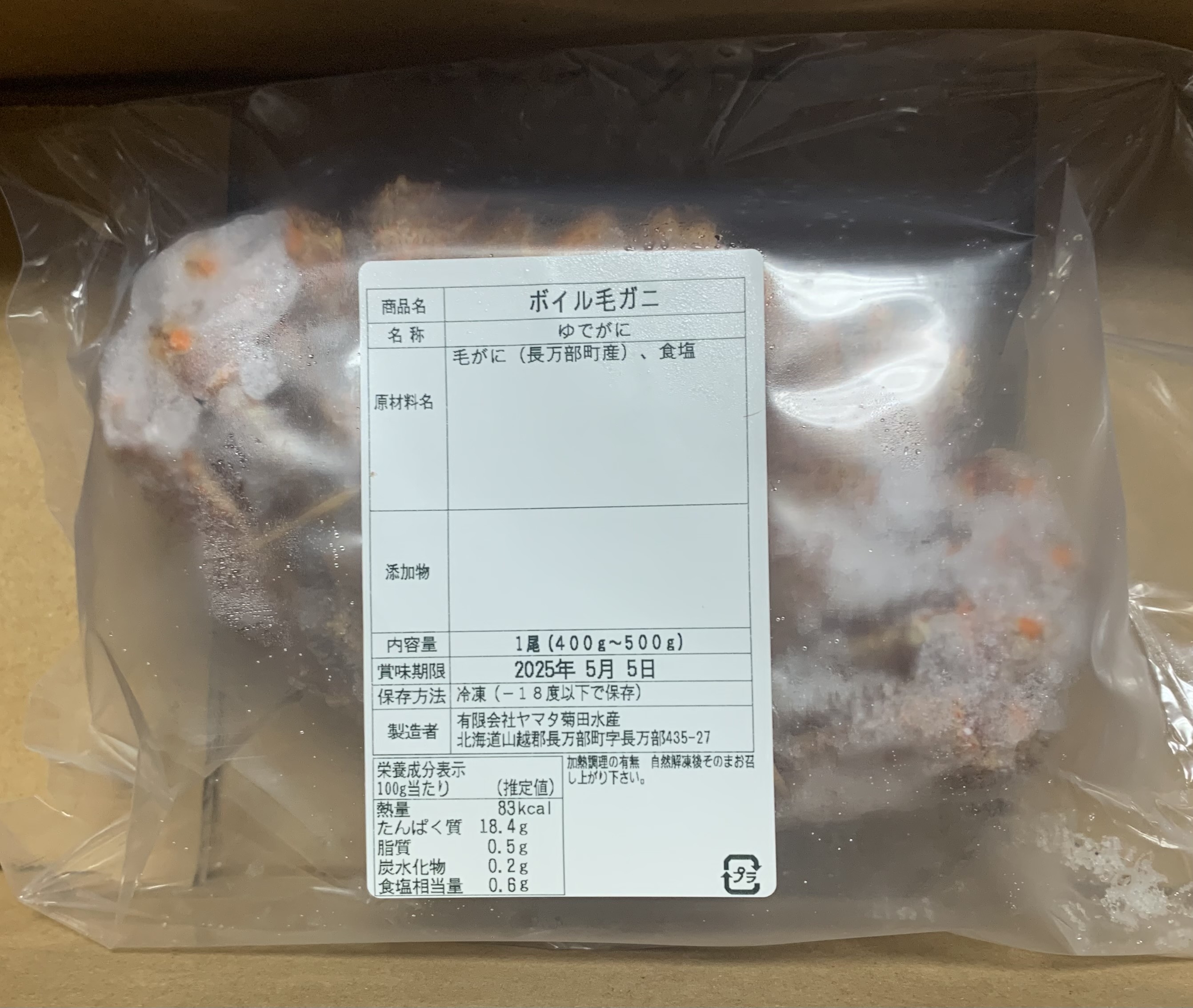 北海道噴火湾産 浜茹で黄金毛ガニ400~500g(1尾)
