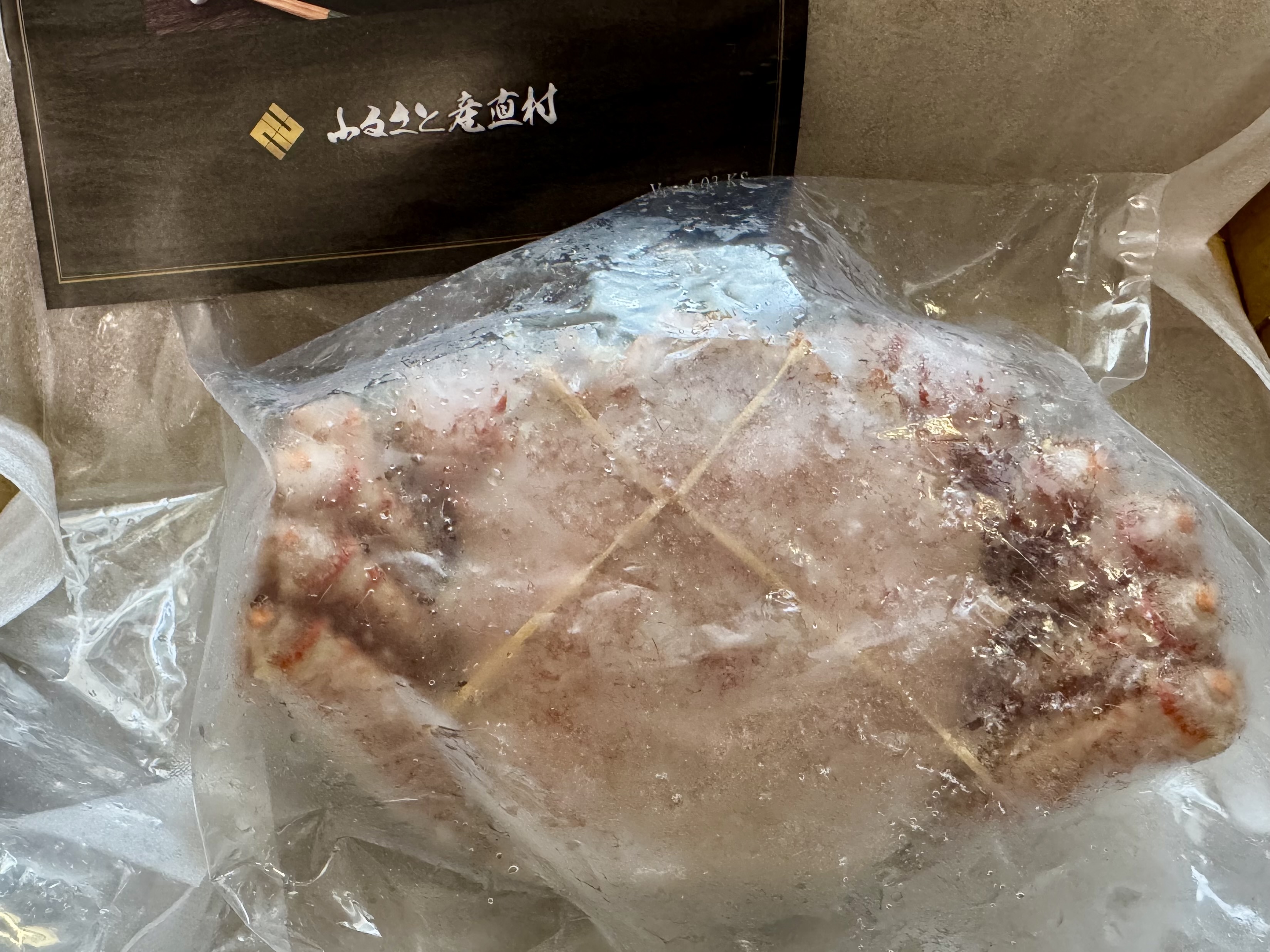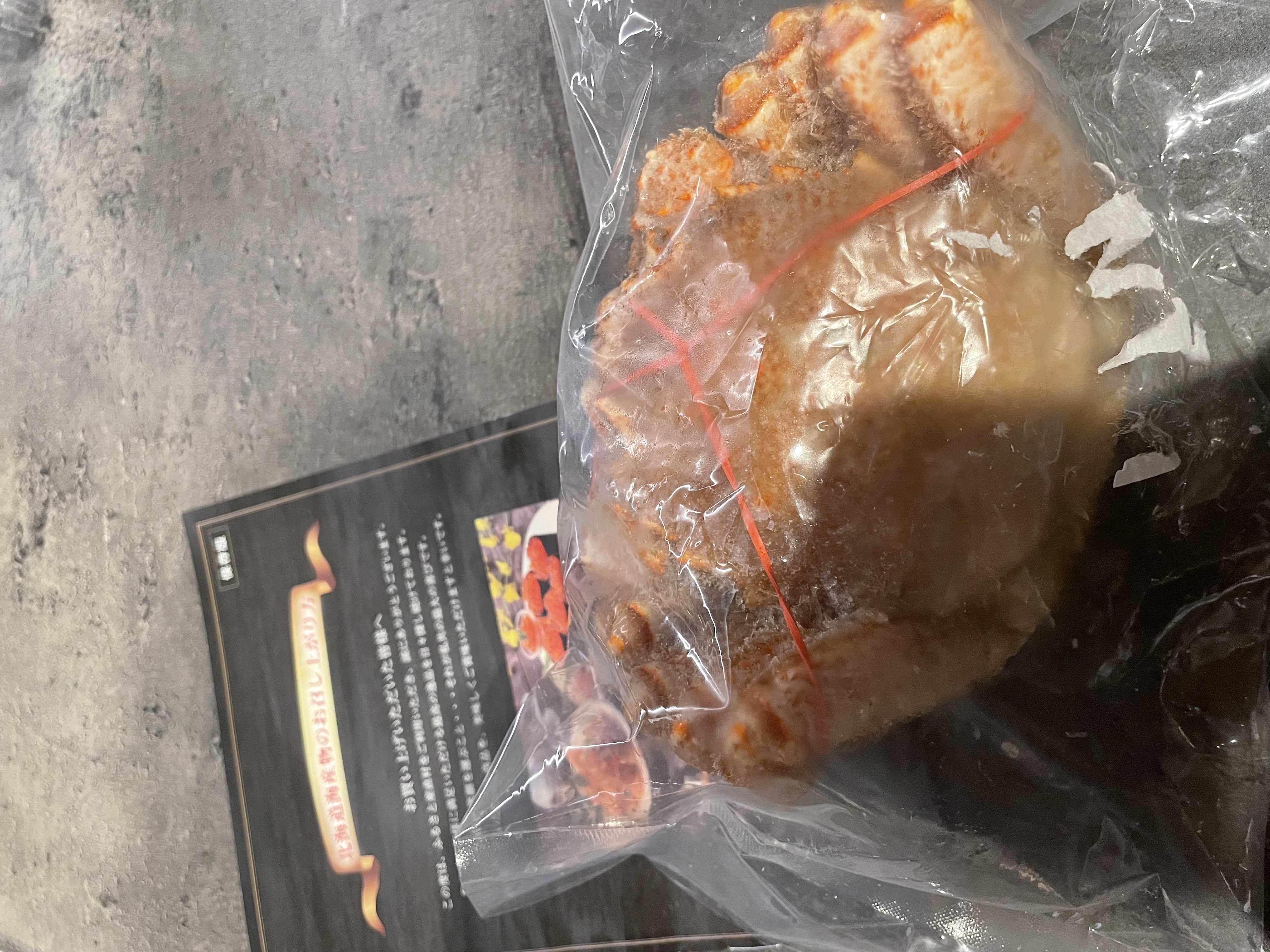 蟹は厚手のキッチンペーパーで包み、甲羅を下にして冷蔵庫で解凍。我が家の冷蔵庫では、1日では溶けなかったので、1日半かけて解凍しました。
