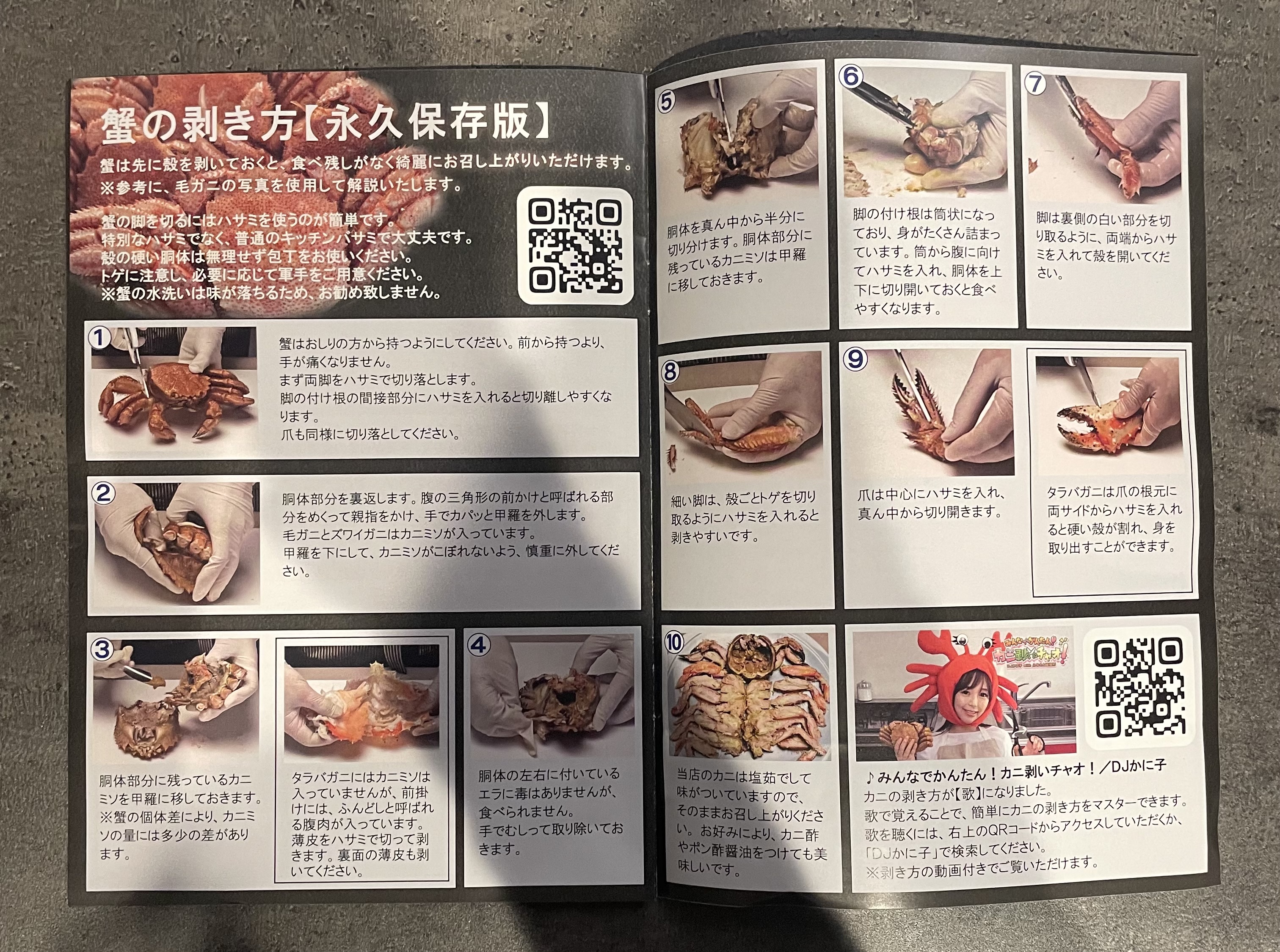 人生で、まるごとの蟹を捌いたことがなく、不安もあったのですが、写真付きの蟹の剥き方が載っている冊子が同封されていたのでわかりやすかったです。