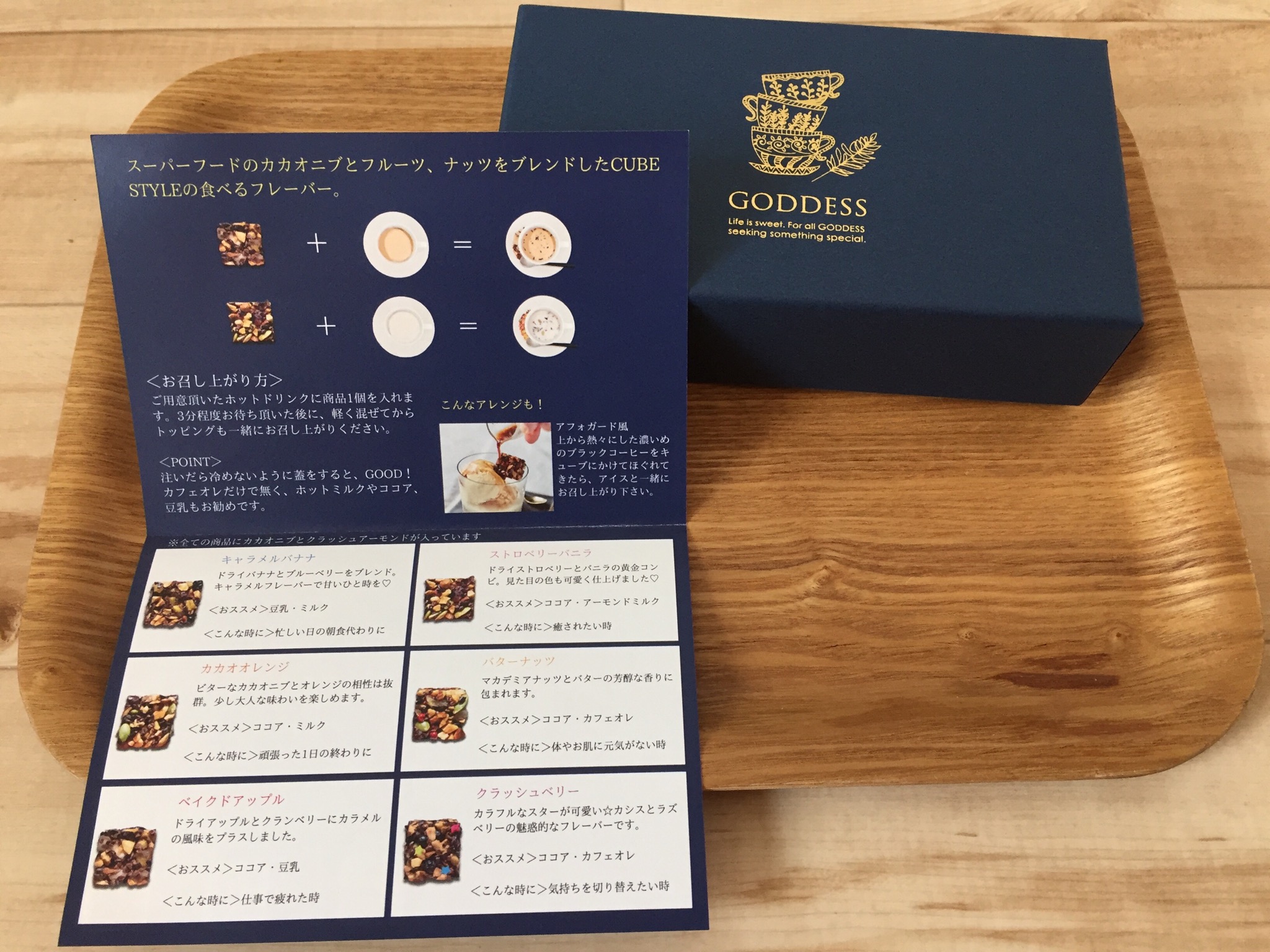 1種類ずつ袋づめされているので、飲みたい時にキューブが入っている袋を開封してカップに入れるだけで高級感のある飲み物に様変わりです。