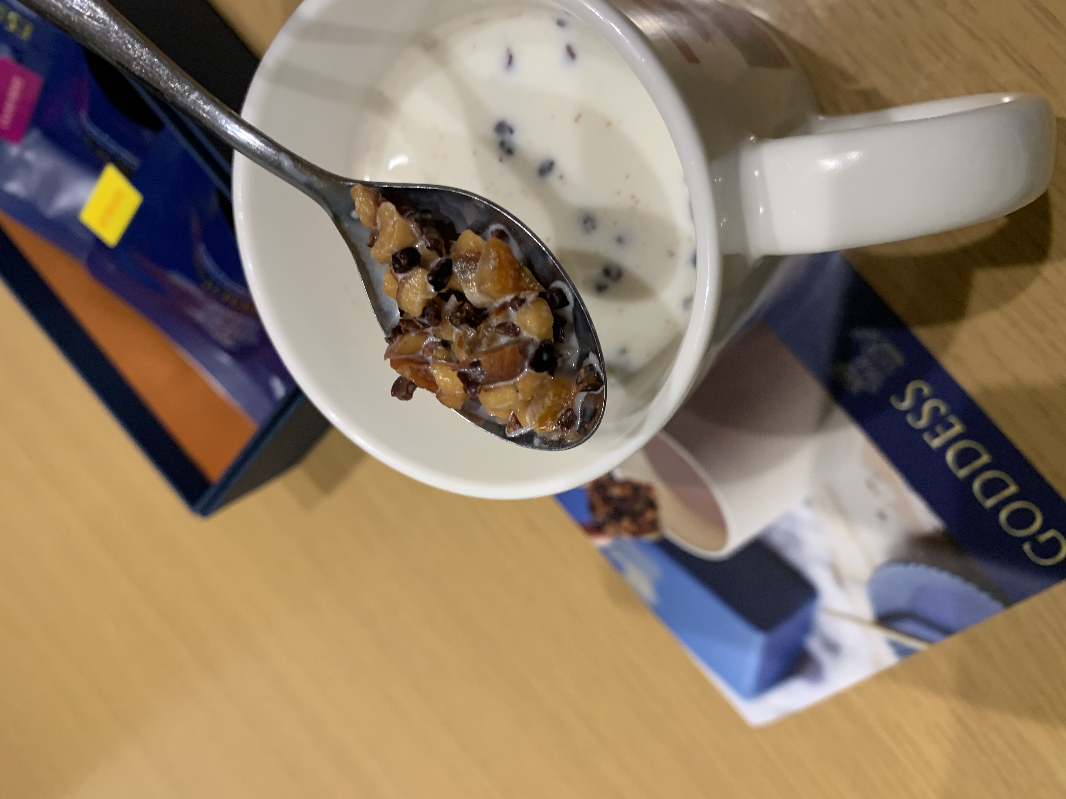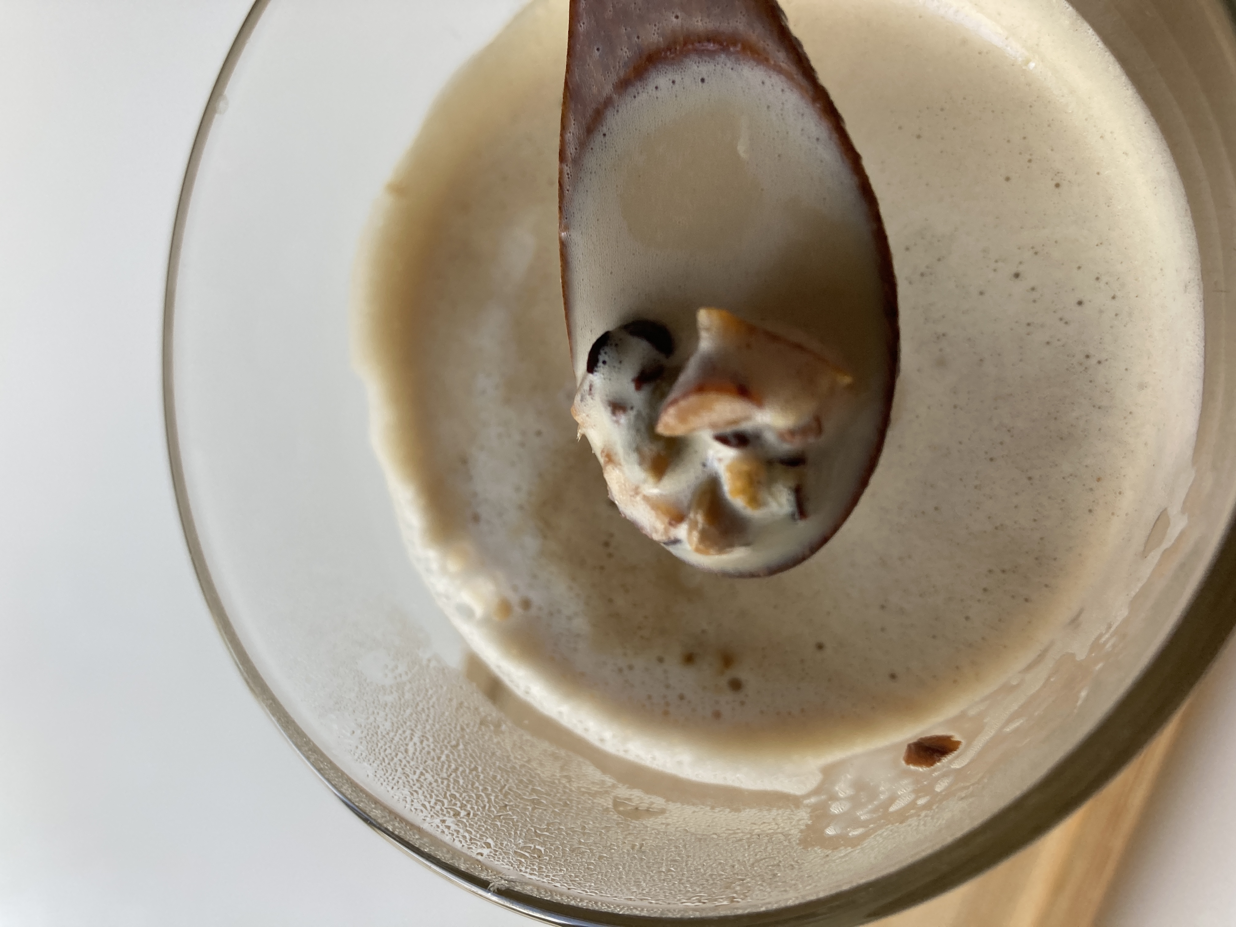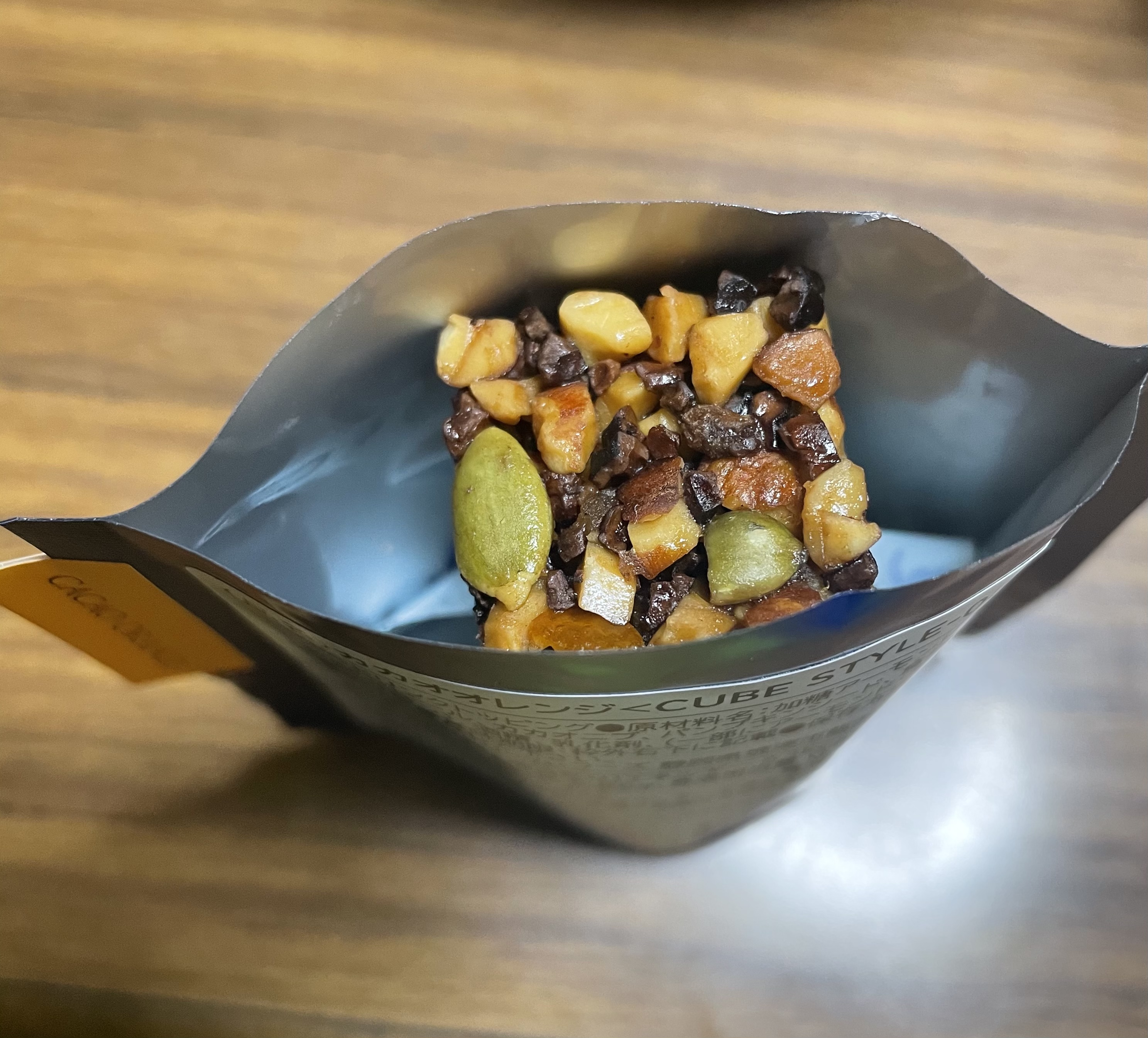 3分間待っている間にほんのりオレンジの香りがしてきて、キューブをゆっくりほぐしながら食べてみましたが、カフェオレの味わいの中にアーモンドの食感があって今までのカフェオレでは味わえない風味とアーモンドが楽しめると思います。