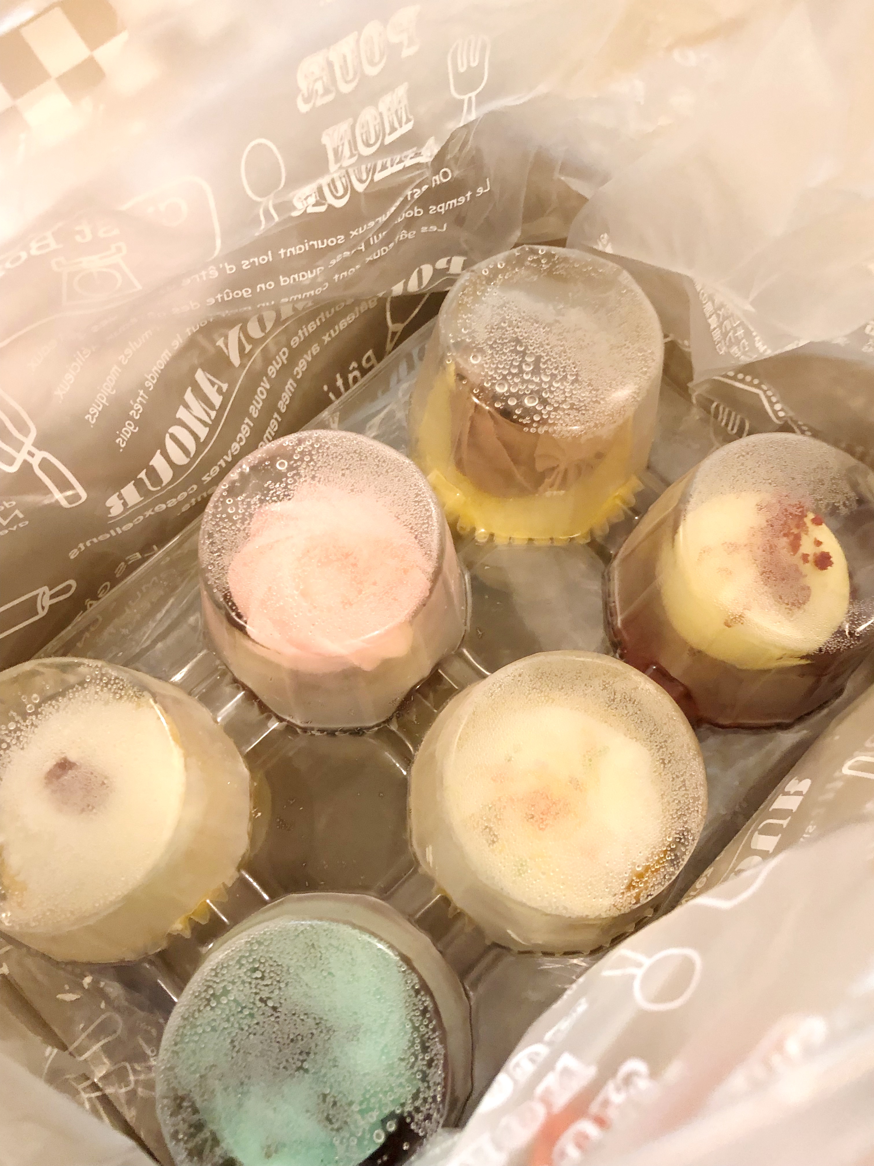 形が崩れないように透明のプラスチックのケースに入っています。6個ずつ2ケースで入っていました。商品説明のパンフレットのデザインも可愛かったです。原材料などの説明書は日本語と英語でそれぞれ書かれてれていて、丁寧だと感じました。
