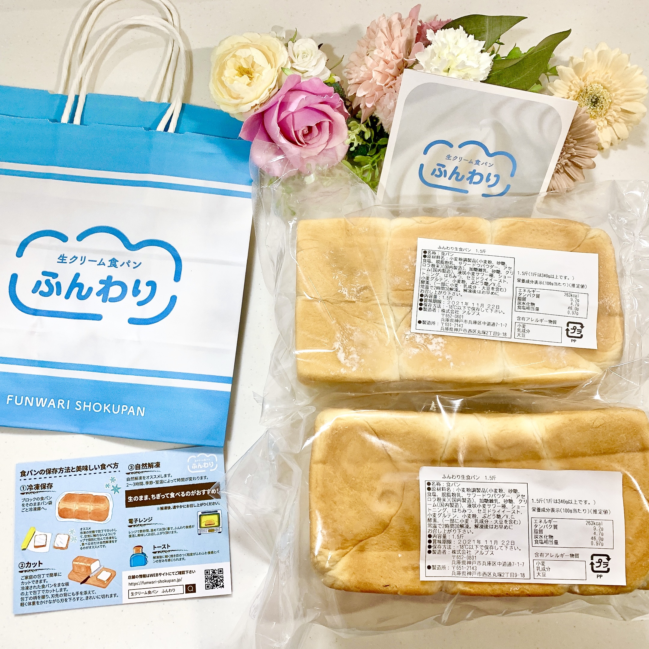 店名でもある「ふんわり」食感を極限まで追求した「生食パン」です。食パンの生地には、北海道生クリーム、国産練乳、純粋蜂蜜を使用。北海道生クリームは乳脂肪分47%のものを使用することで、通常の生クリームよりも、豊かなコクと芳醇な乳製品の旨味を引き立ています。乳化剤、香料、着色料、保存料が不使用なので、老若男女問わす楽しめます。食パンが2本も届くので、満足感の高い商品です。