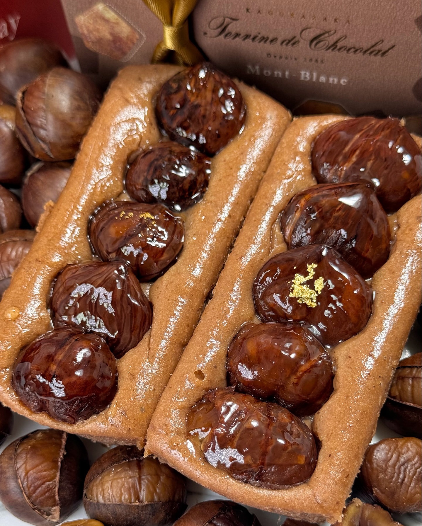トップに添えられた栗や金粉が特別感を引き立て、ボトム層にはごろごろとした栗が散りばめられ、満足感も抜群です