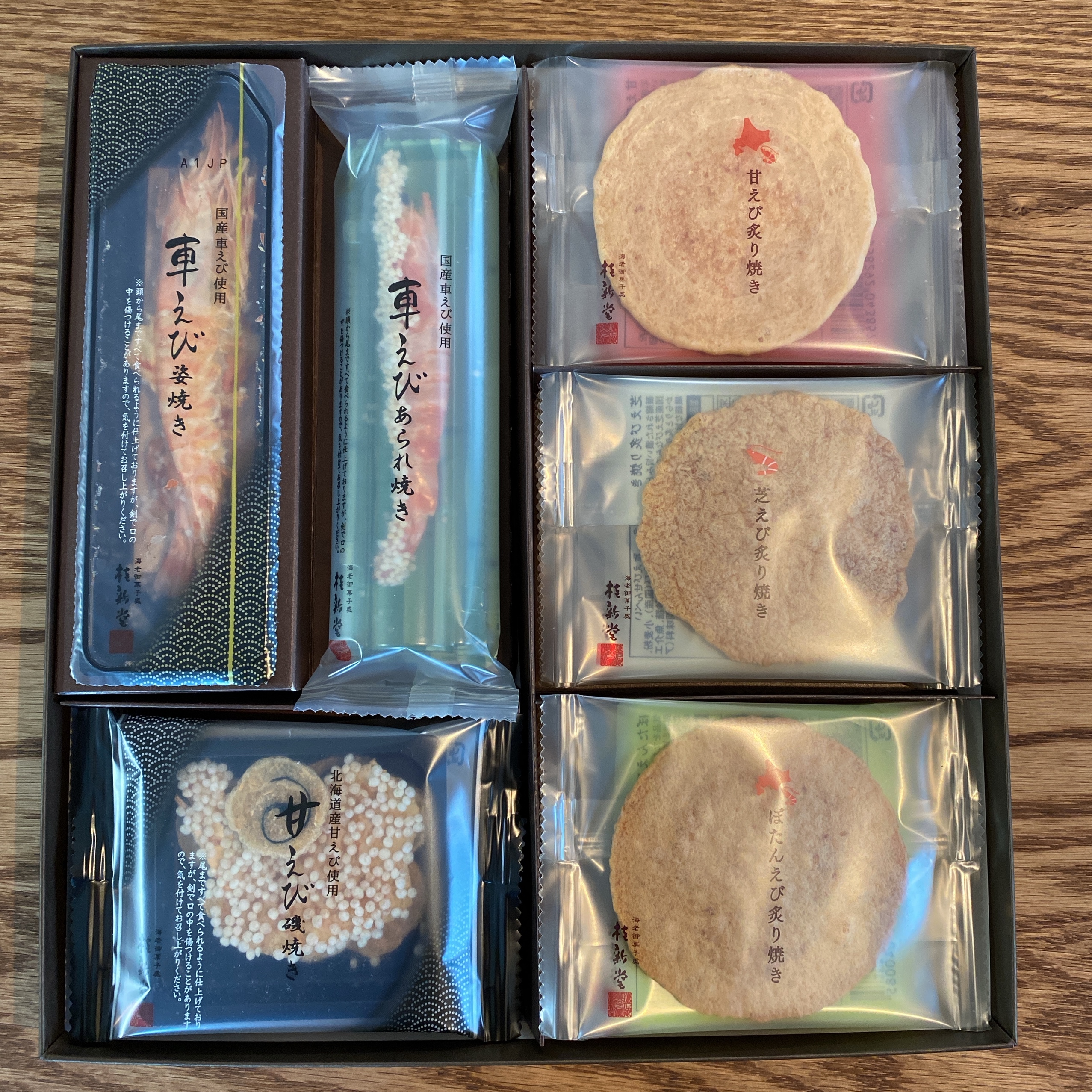 国産の車えびや芝えび、赤えび、北海道産の甘えび、ぼたんえびの5種類のえびをそれぞれの特徴を引き出し、独自の製法で焼き上げた「海老せんべい」のセットです。その名の通り、えびの姿そのままに焼き上げた「車えび姿焼き」や一尾まるごとの「車えびあられ焼き」、新製法によりこれまでよりもえびの濃厚な旨みが楽しめる「炙り焼き」など7種類詰合せです。大切な人や特別な日の贈り物にもおすすめです。
