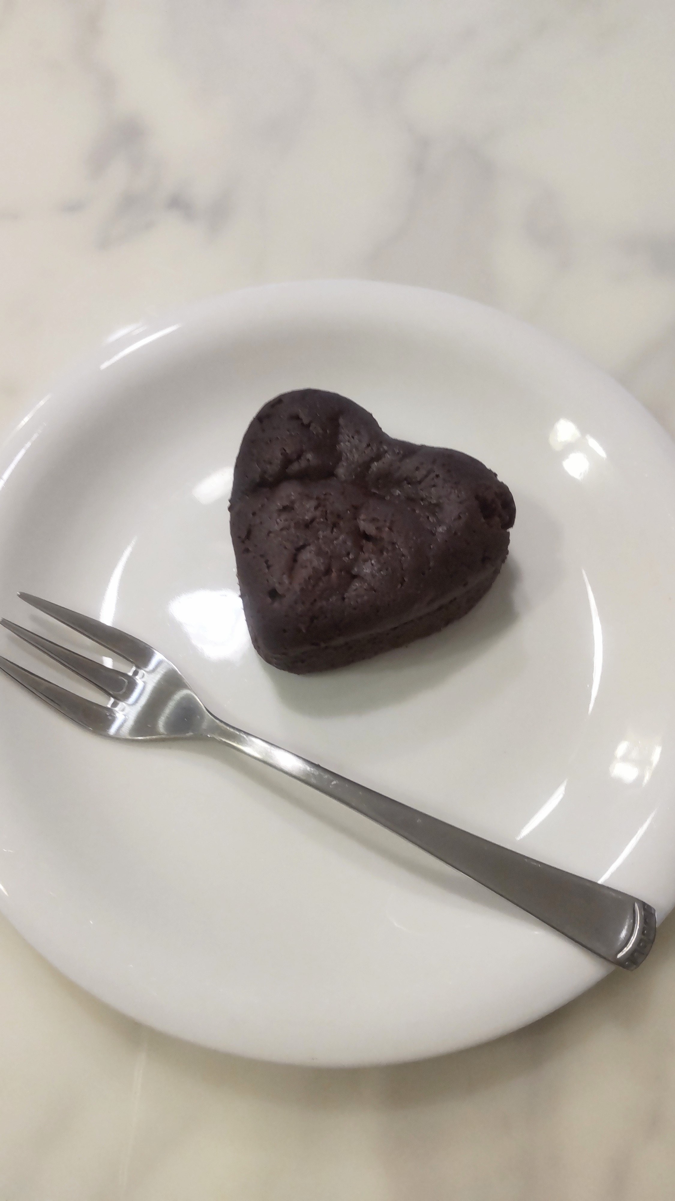 それはそれは、「濃厚」で「本物の」チョコレートのまんまのガトーショコラ、、。甘さと言い、あと引く美味しさといい、子供たちとかわいいハート型をなくなく半分にして(一つは贅沢!)いただきました。本当に一口ずつ小さいお口にいれていましたが、本当にほっぺたおちちゃうよー、、ママがまた食べるんでしょ、、ずるーい、もっとちょうだーい、などなど、本当に幸せなおいしいひと時になりました!大感動!