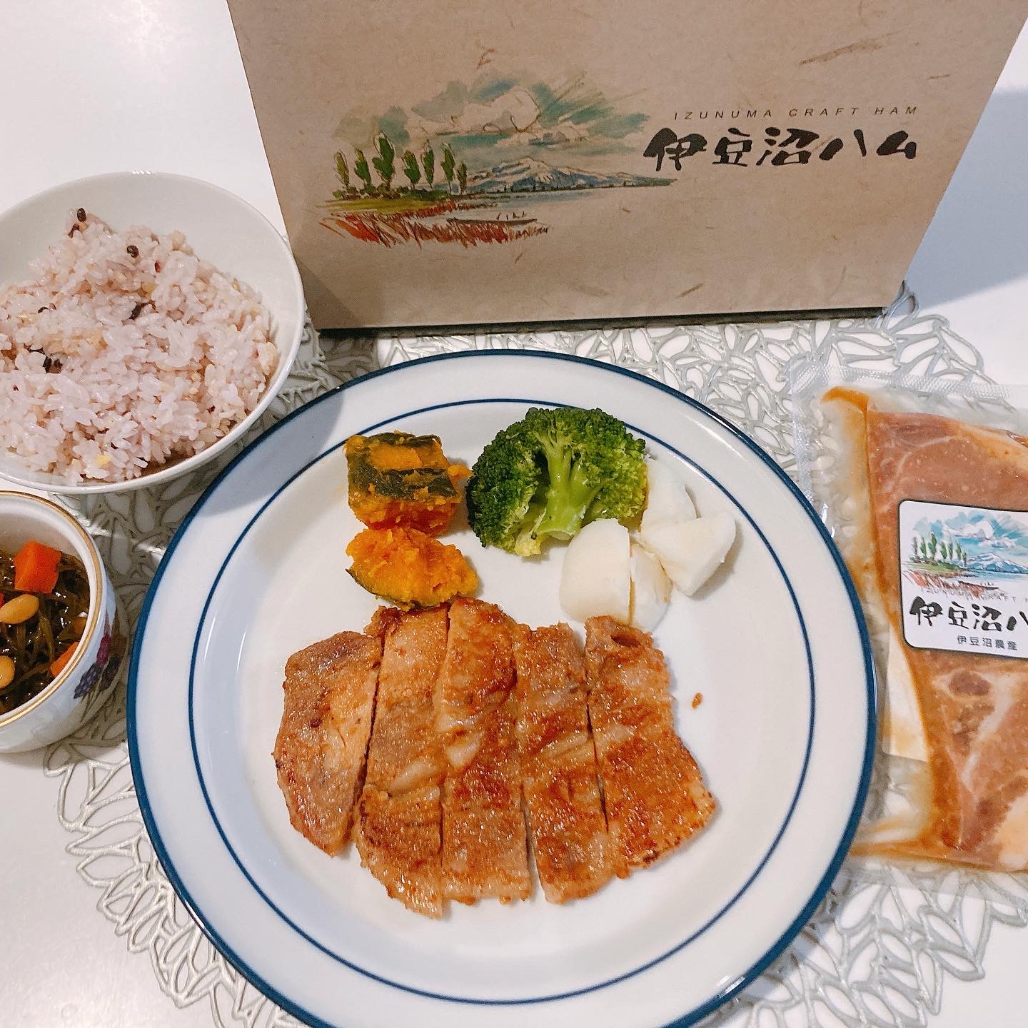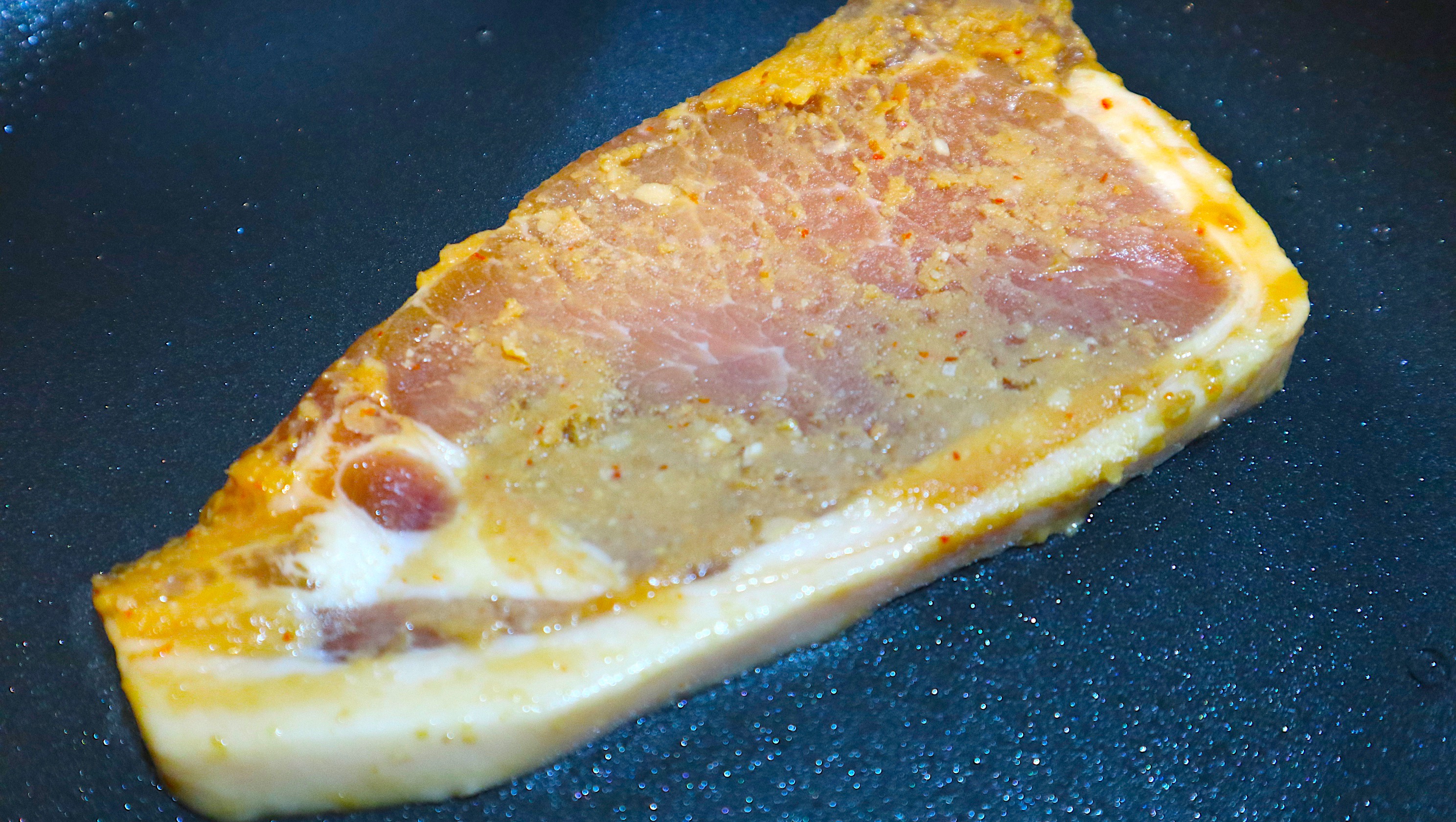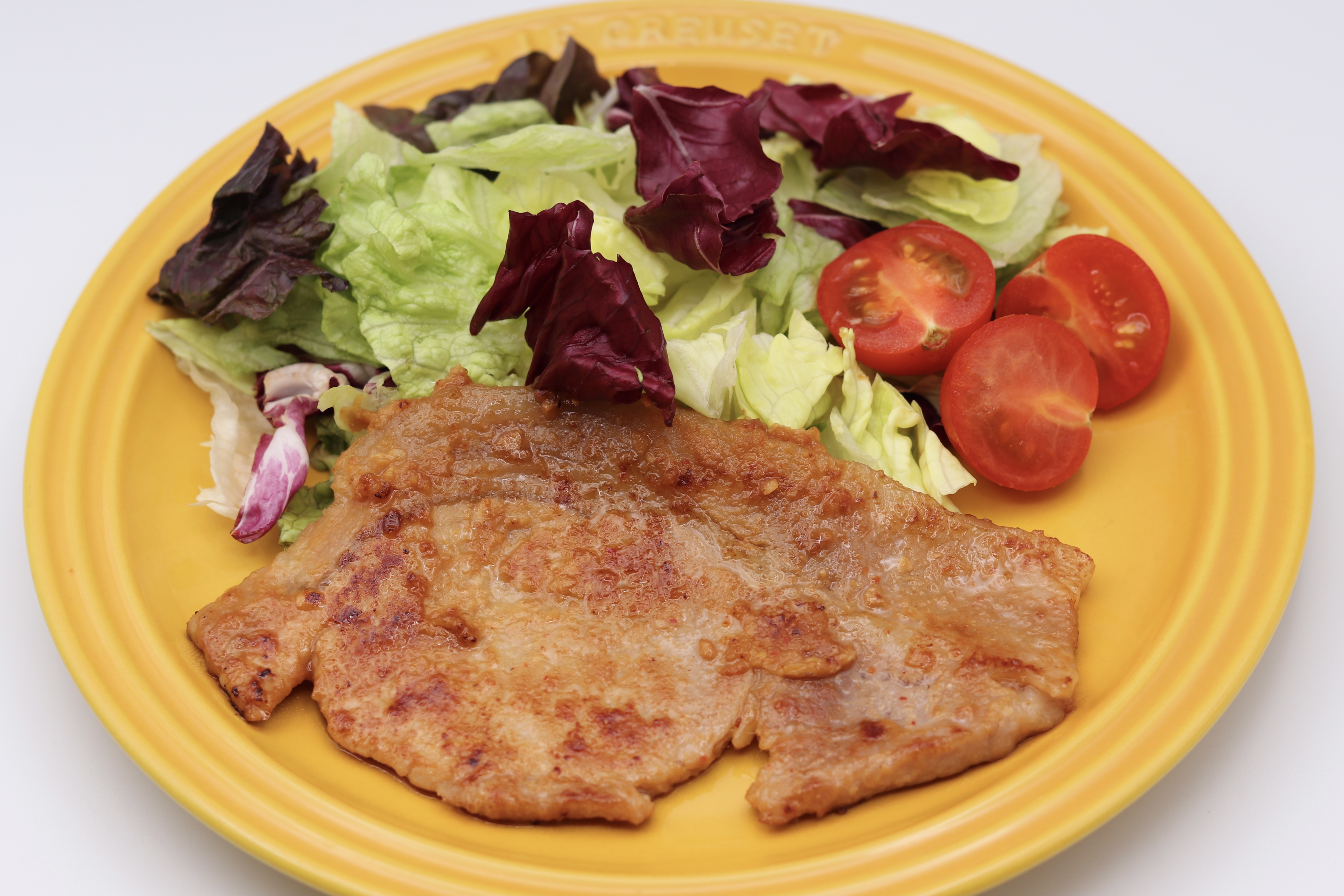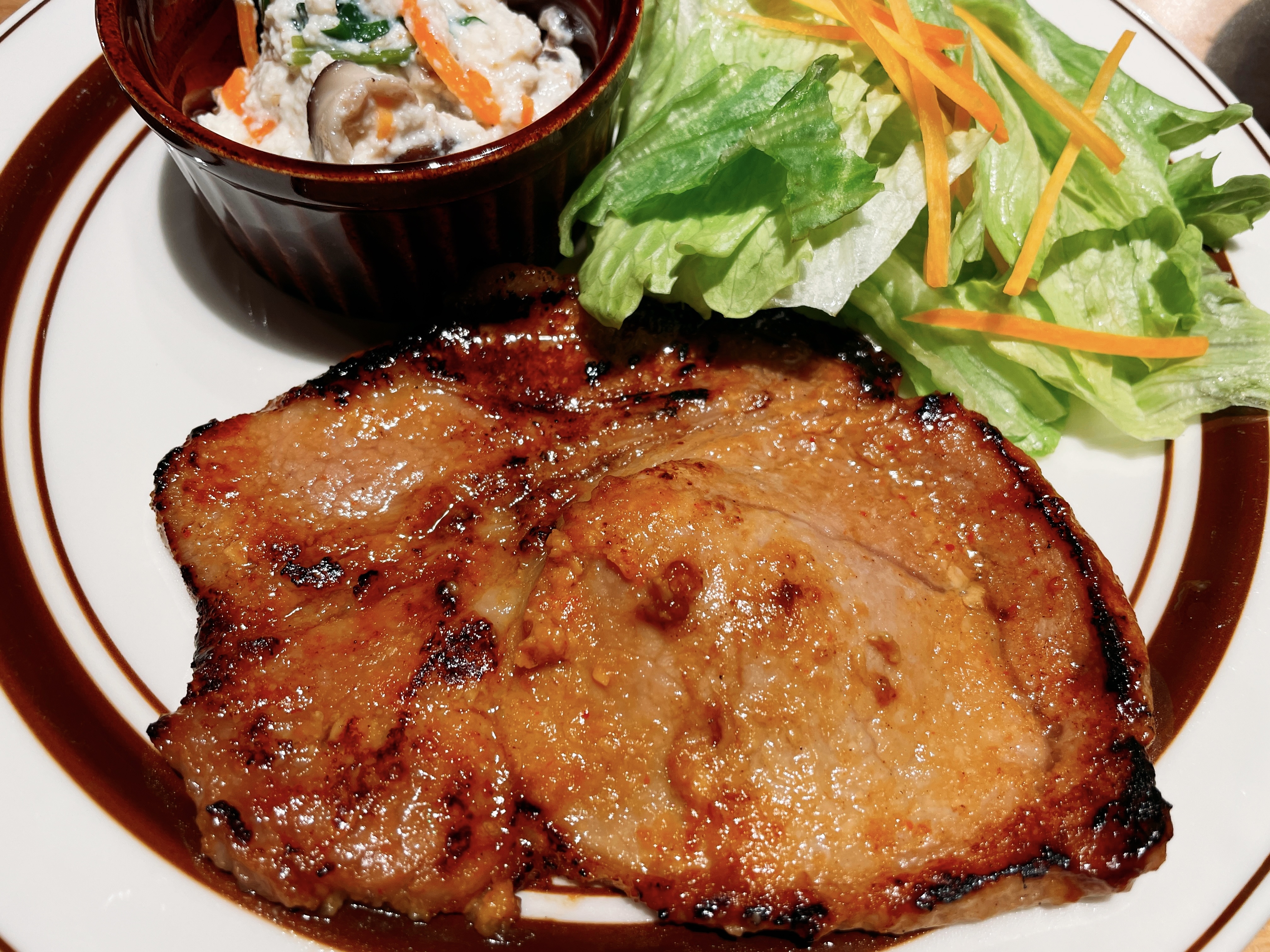 最初は「一人2枚かしら?」なんて思っていましたが、焼いても存在感がある大きなロース。1枚でお皿にピッタリおさまって、美しい…♪軽く焦げた味噌が美味しそう~♪