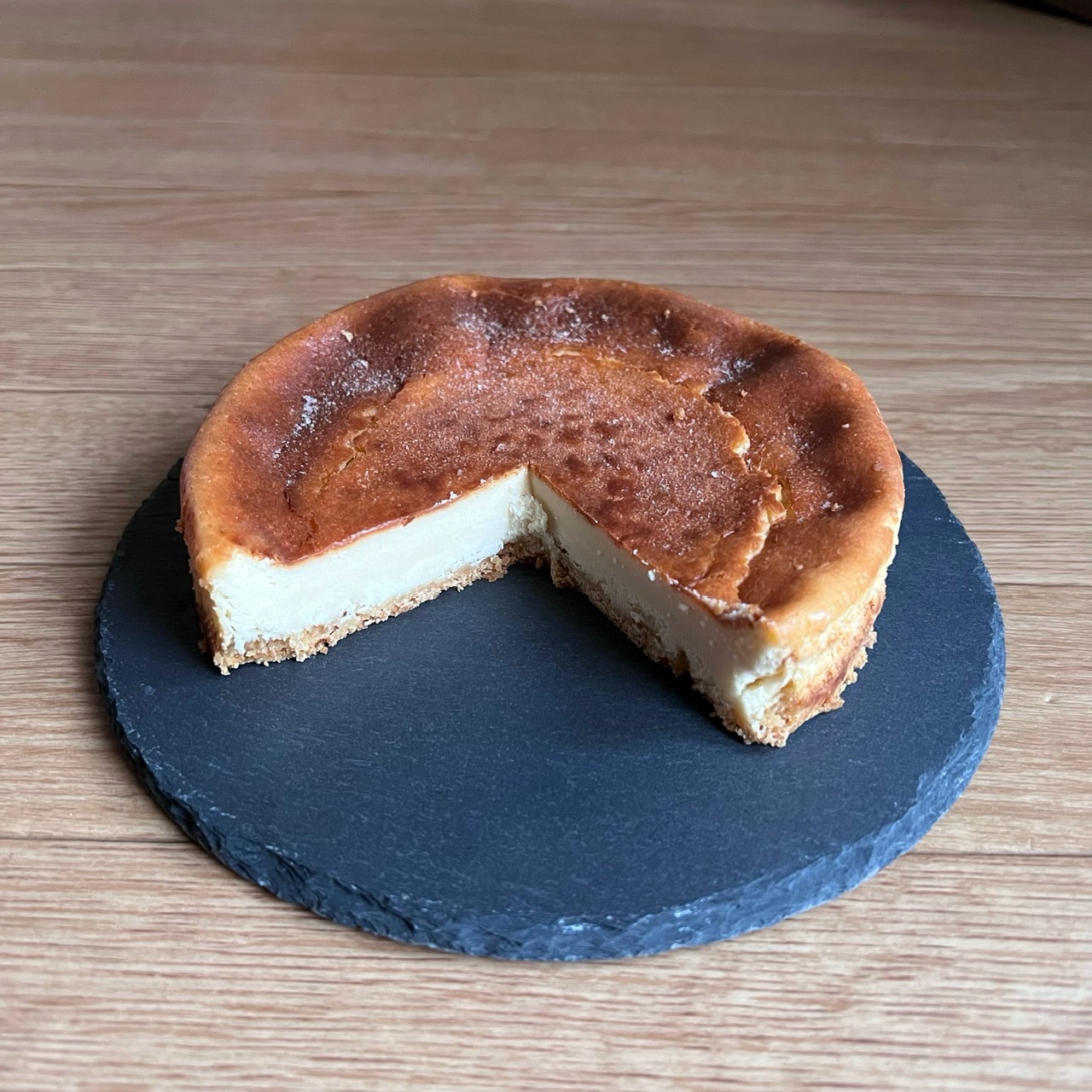 高温の石窯で焼き上げた「ベイクドチーズケーキ」です。素材・製法にとことんこだわったシンプルな味わいが特長です。石窯焼きにすることでチーズの味わいを引き出し、濃厚なのに後味はすっきり。ザクザクとしたほろ苦いクッキー生地は、高温の石窯でないと出せない特別な食感です。とろけるフィリングとザクのクッキー生地のマリアージュを楽しめます。専用ボックスに入って届くので、手土産スイーツとしてもおすすめです。