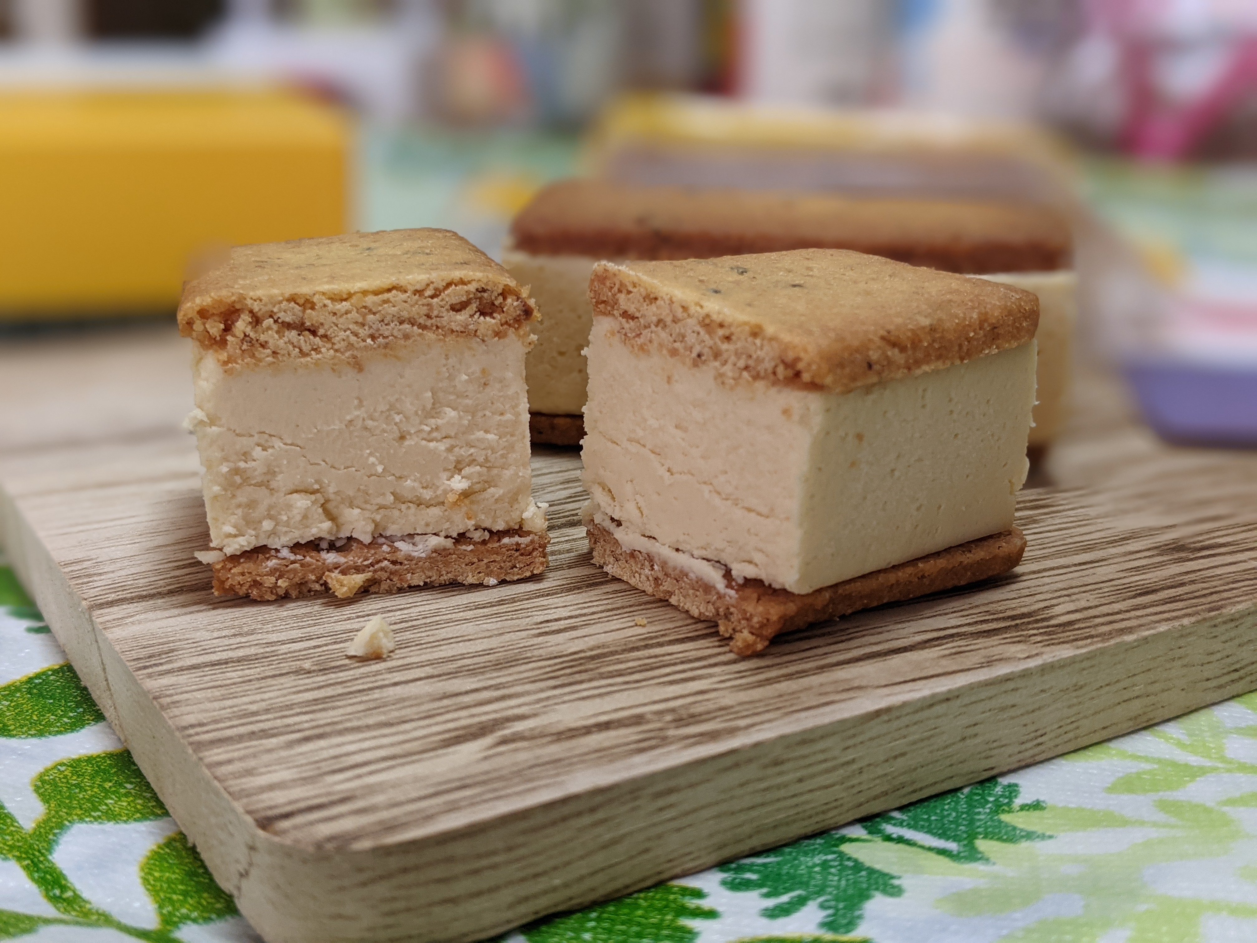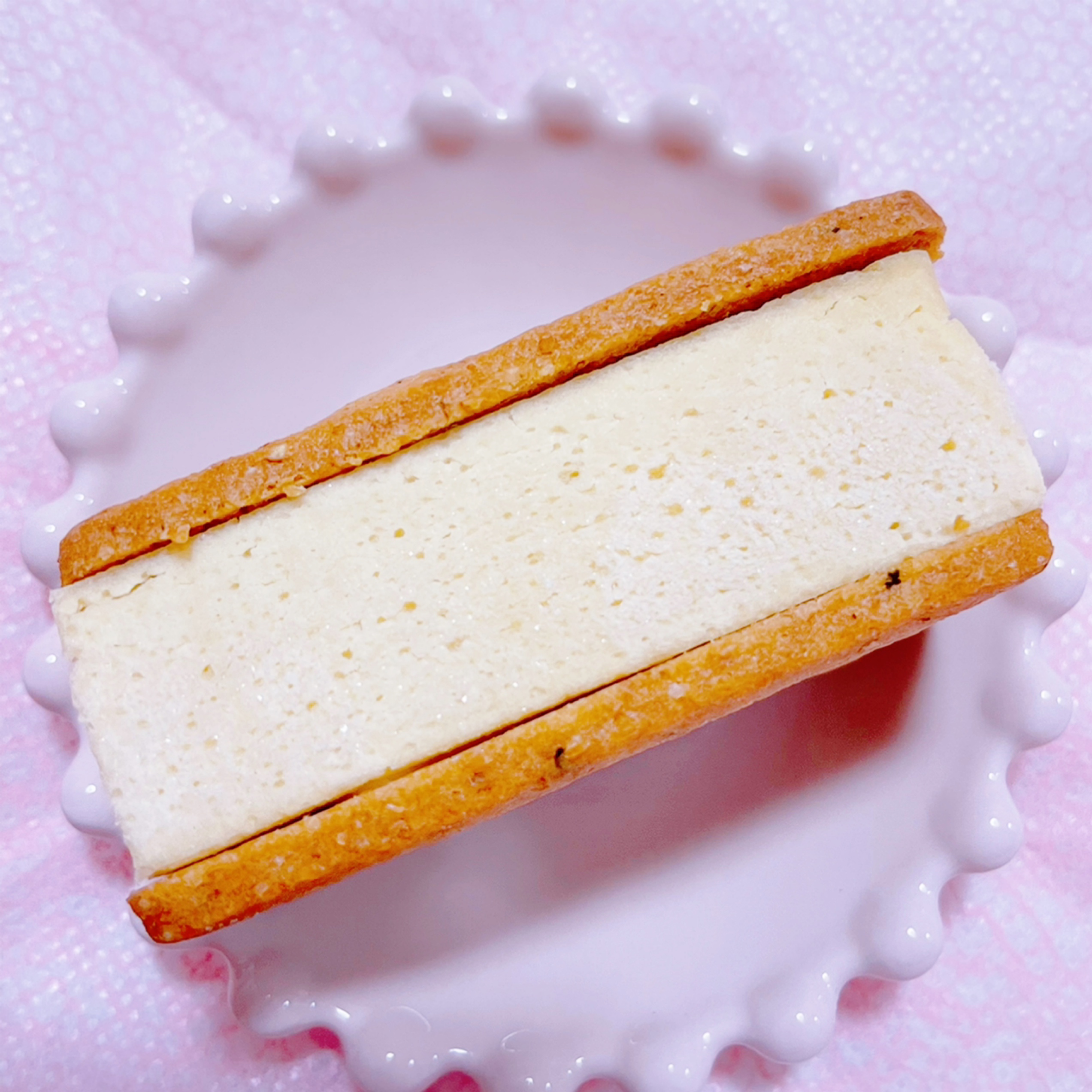見た目はグラハムクッキーでサンドされたバニラアイスクリームみたいで美味しそうです♡