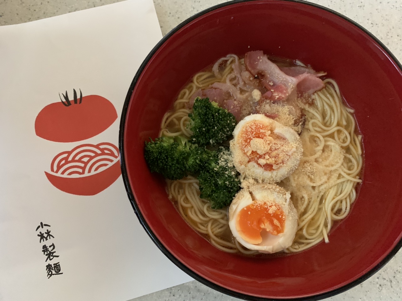 トマトのスープが印象的で、まるでパスタのような「イタリアンラーメン」です。ブランドトマト「JAにじの桃太郎」は、酸味と甘みのバランスが良いのが特徴。旨味たっぷりの鶏ガラスープを合わせ、爽やかな酸味の中に旨味を感じる極上のスープに仕上げました。ラーメン専用小麦の「福岡県産ラー麦」を使用しコシのある麺を合わせています。トマトの味わいを感じられるので、残ったスープにご飯を入れてリゾット風に楽しむのもおすすめ。テレビでも紹介された新感覚ラーメンです。