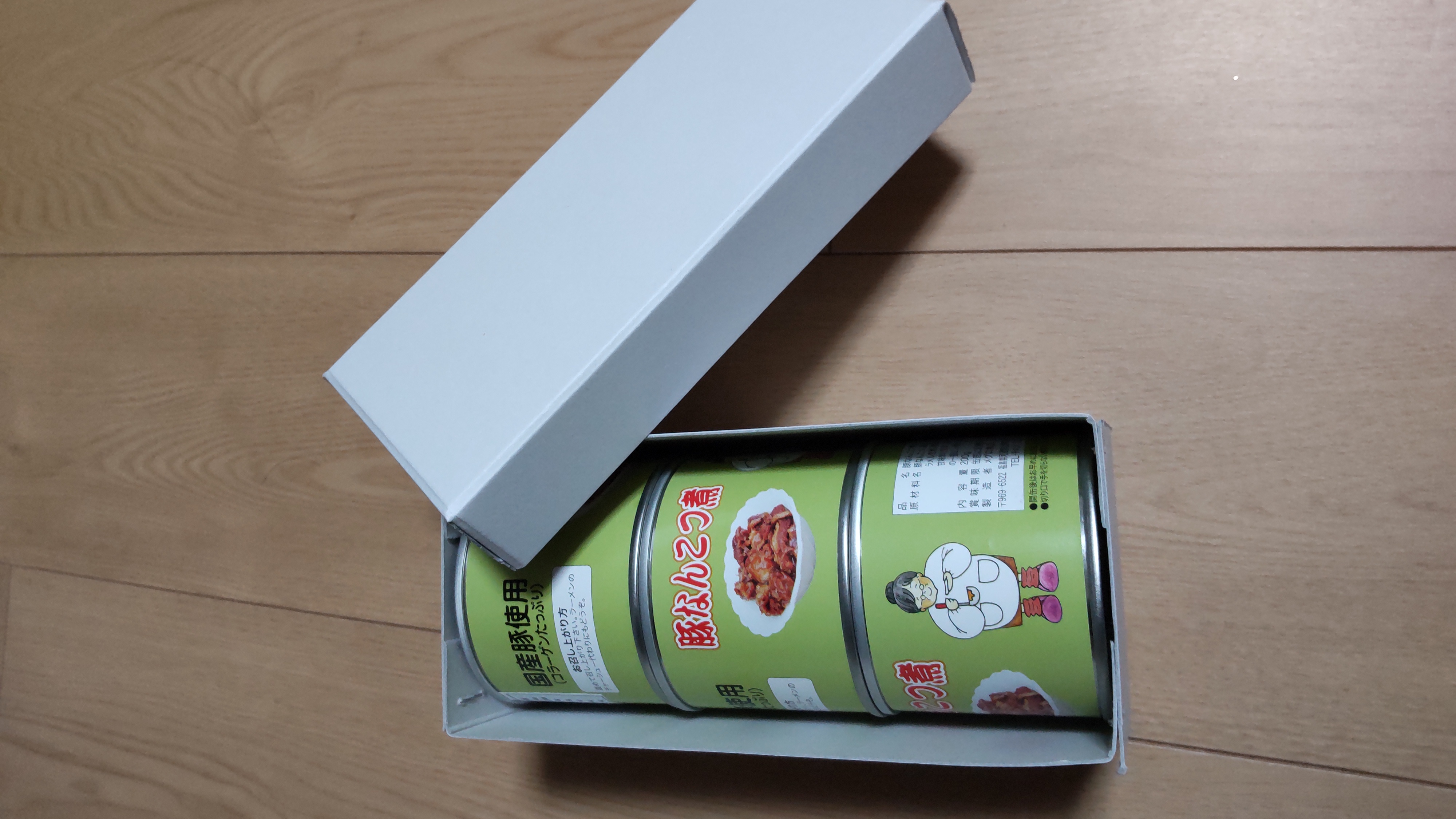 ずっしりと重みのある箱の中には、3缶の豚なんこつ煮。まず、1缶目は缶詰を開けてそのままいただきました!味がしっかり染み込んでおり、お酒のおつまみにもぴったり!「軟骨」と言えばコリコリと少し硬めなイメージがあったのですが、こちらの豚なんこつ煮は「トロトロ」と形容するのがしっくり来る食感のやわらかさで、とっても食べやすくて美味しかったです。