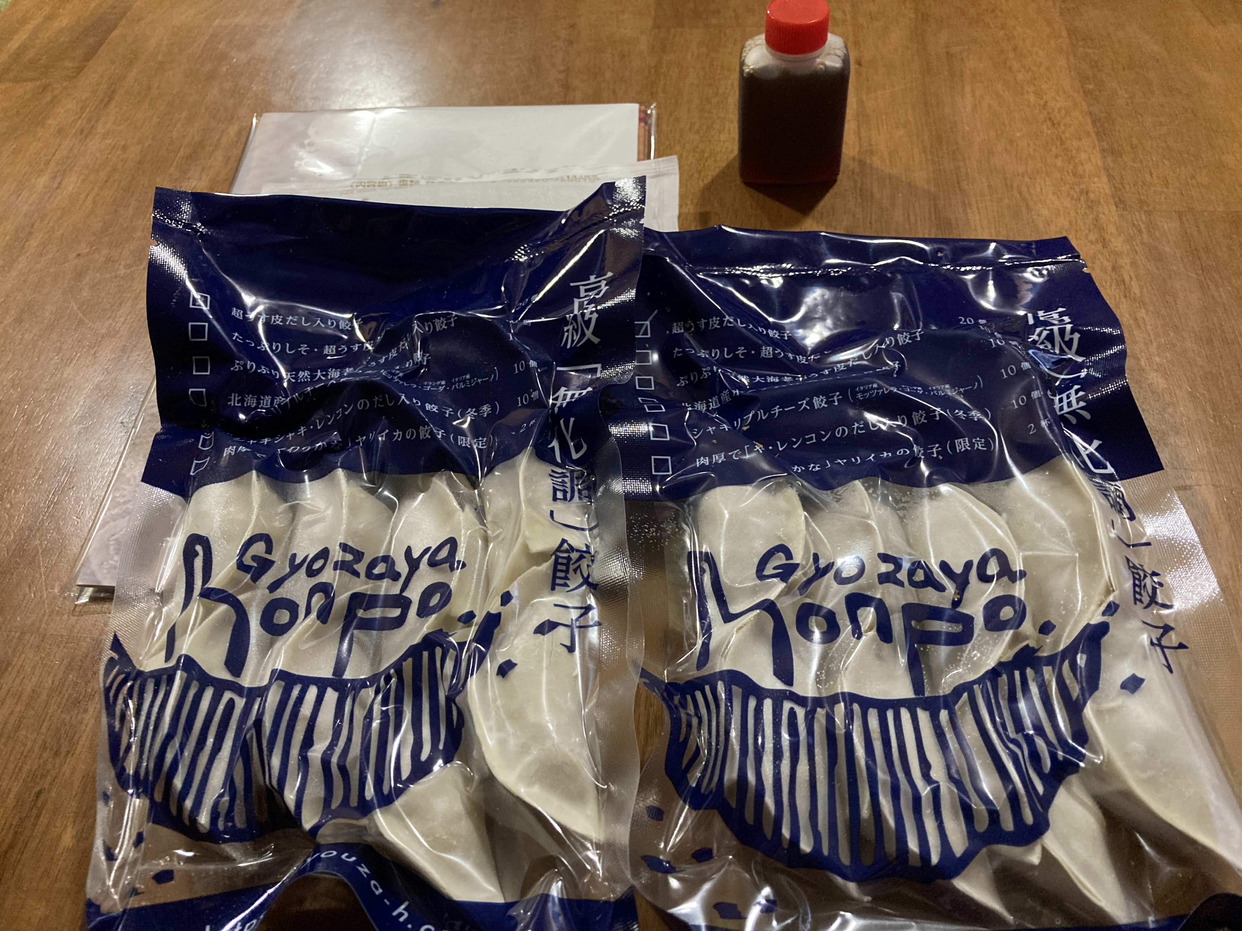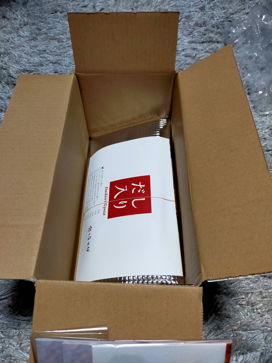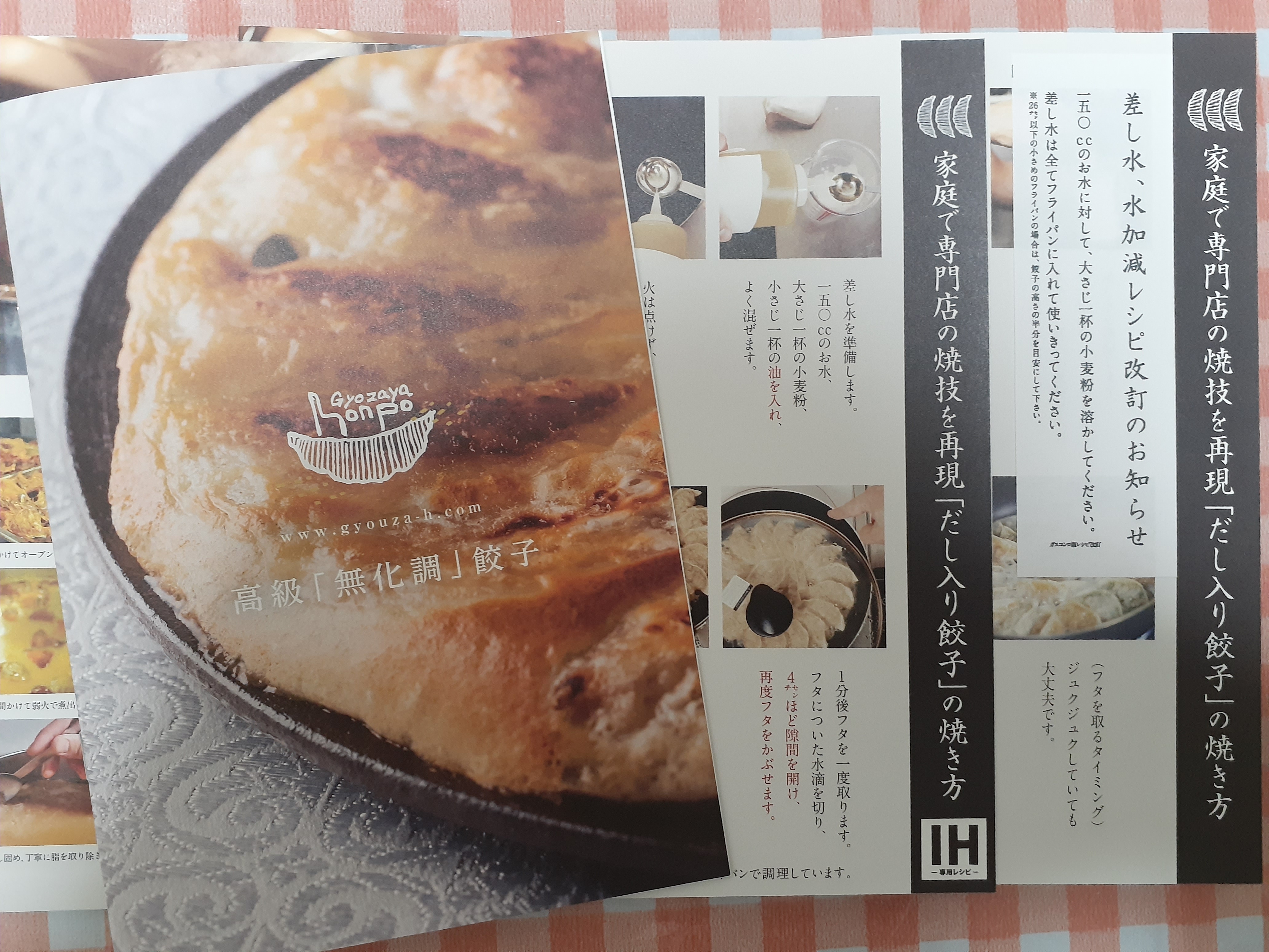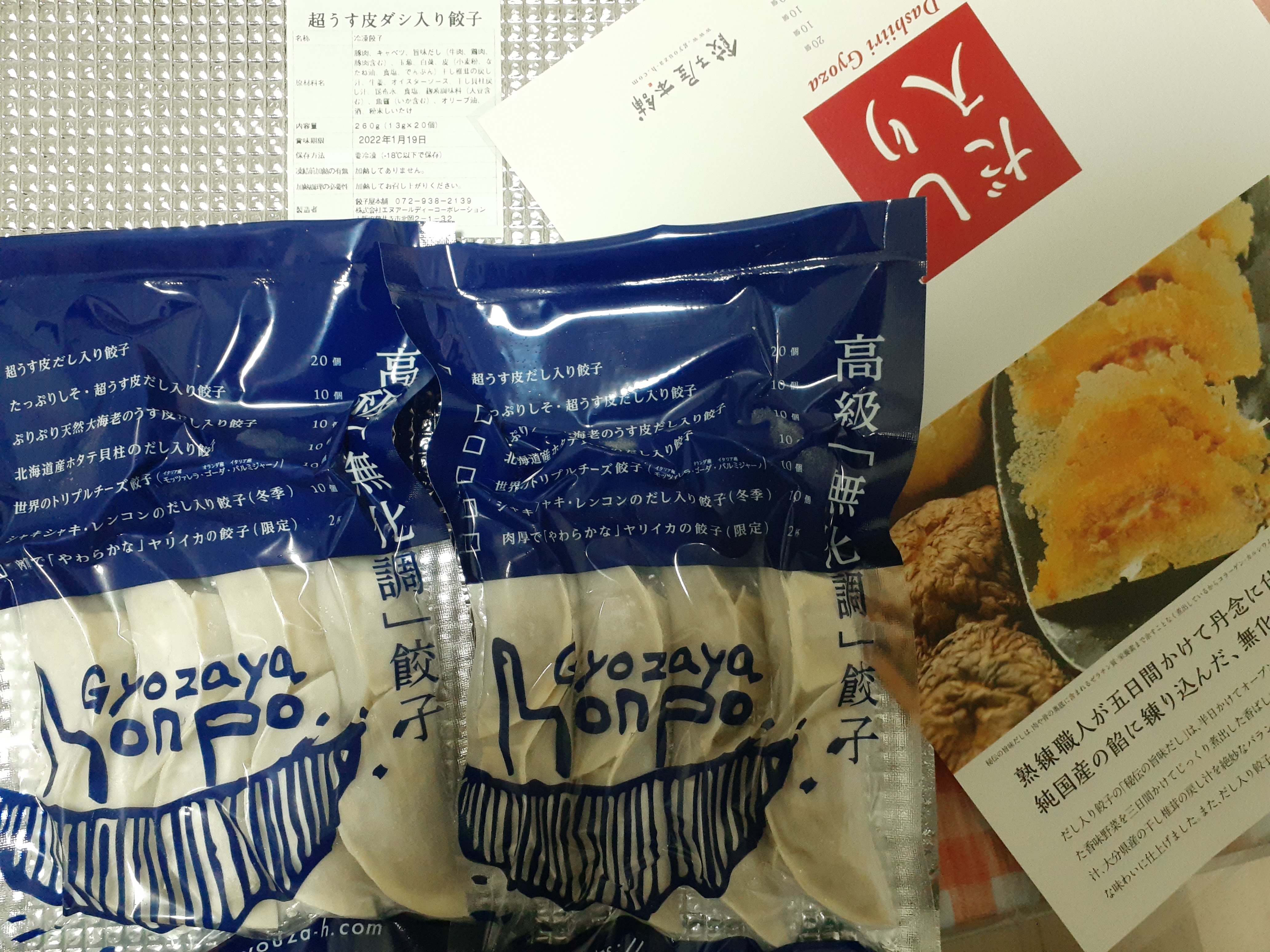 箱を開けると、しっかりとしたアルミ保冷袋の中に真空パッケージの餃子が入っており、手土産などちょっと持ち歩くときも安心感があります。餃子が10個入り×2袋に分かれている点も重宝しますね。焼き方の説明書もガス用とIH用の2種類同梱されており、行き届いているなぁという印象です。