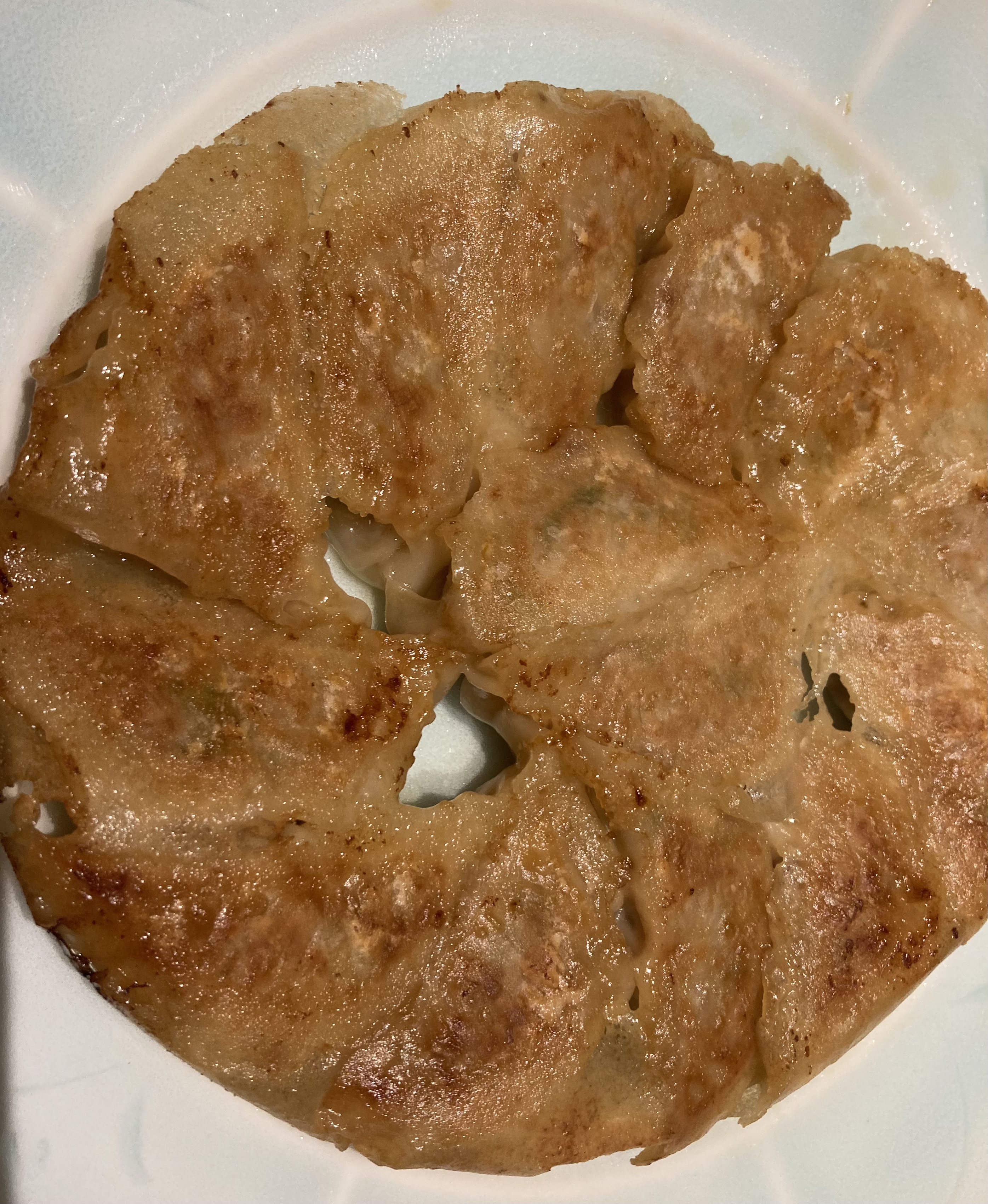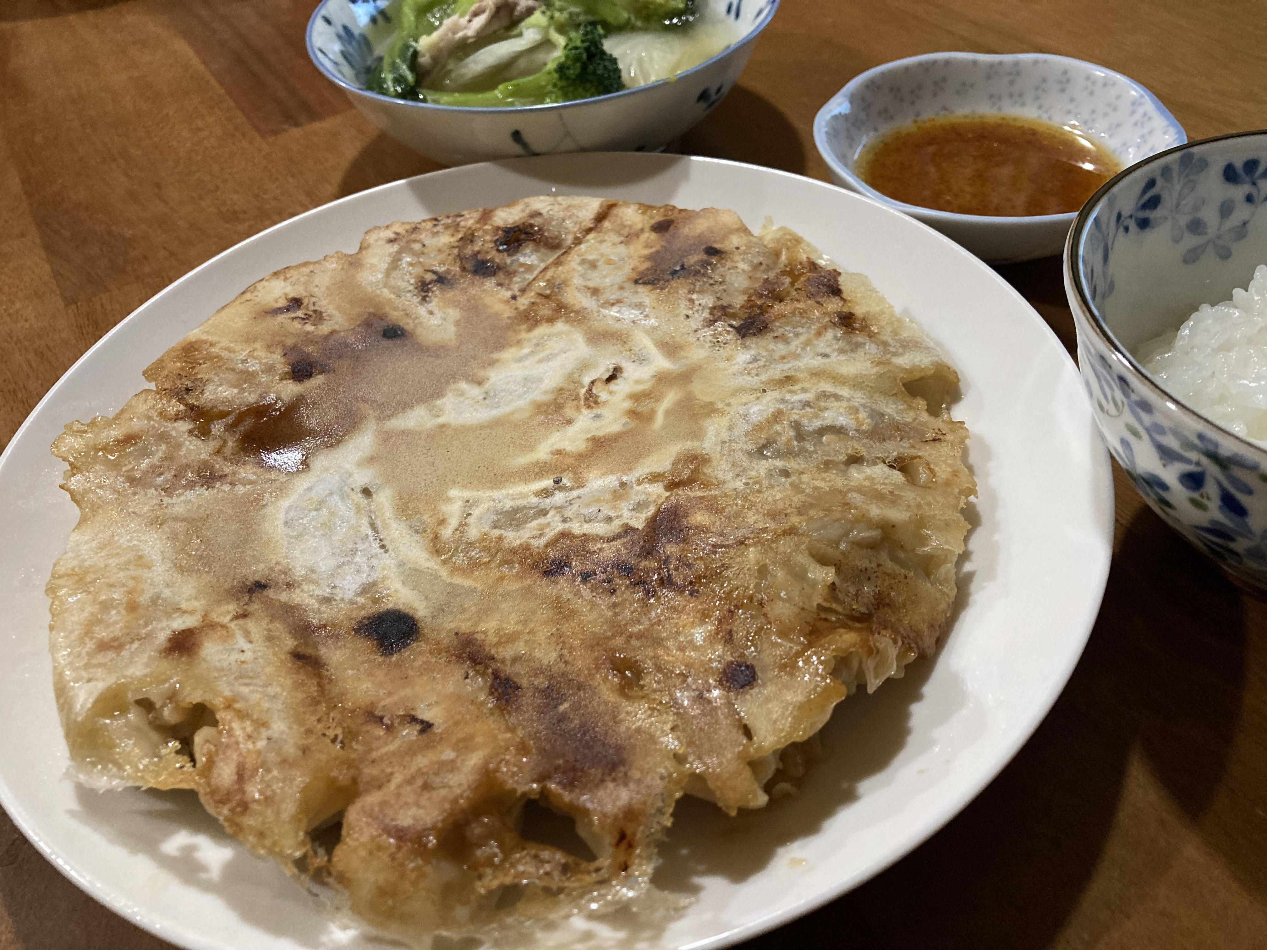 IH用の説明書を見ながら、早速調理開始です。いつものフライパンに油を敷き、冷凍のままの餃子の底面に油を馴染ませながらドーナツ状に並べ、強めの中火で焼きます。途中で餃子の向きを回転させながら反対側も焼き、均等に焼き目がついたらドーナツ状の真ん中にも餃子を並べ、予め準備しておいた差し水を注ぎ蒸し焼きに。鍋を揺すりながら水分を飛ばし、こんがり焼けたらあっという間に羽根付き餃子の完成です!普段餃子を焼く時、フライパンに皮が焦げ付いて失敗することがありますが、説明書にIHの火力レベルが記載してあるので、その通り焼くだけで綺麗なきつね色に焼き上がり心強いですね。