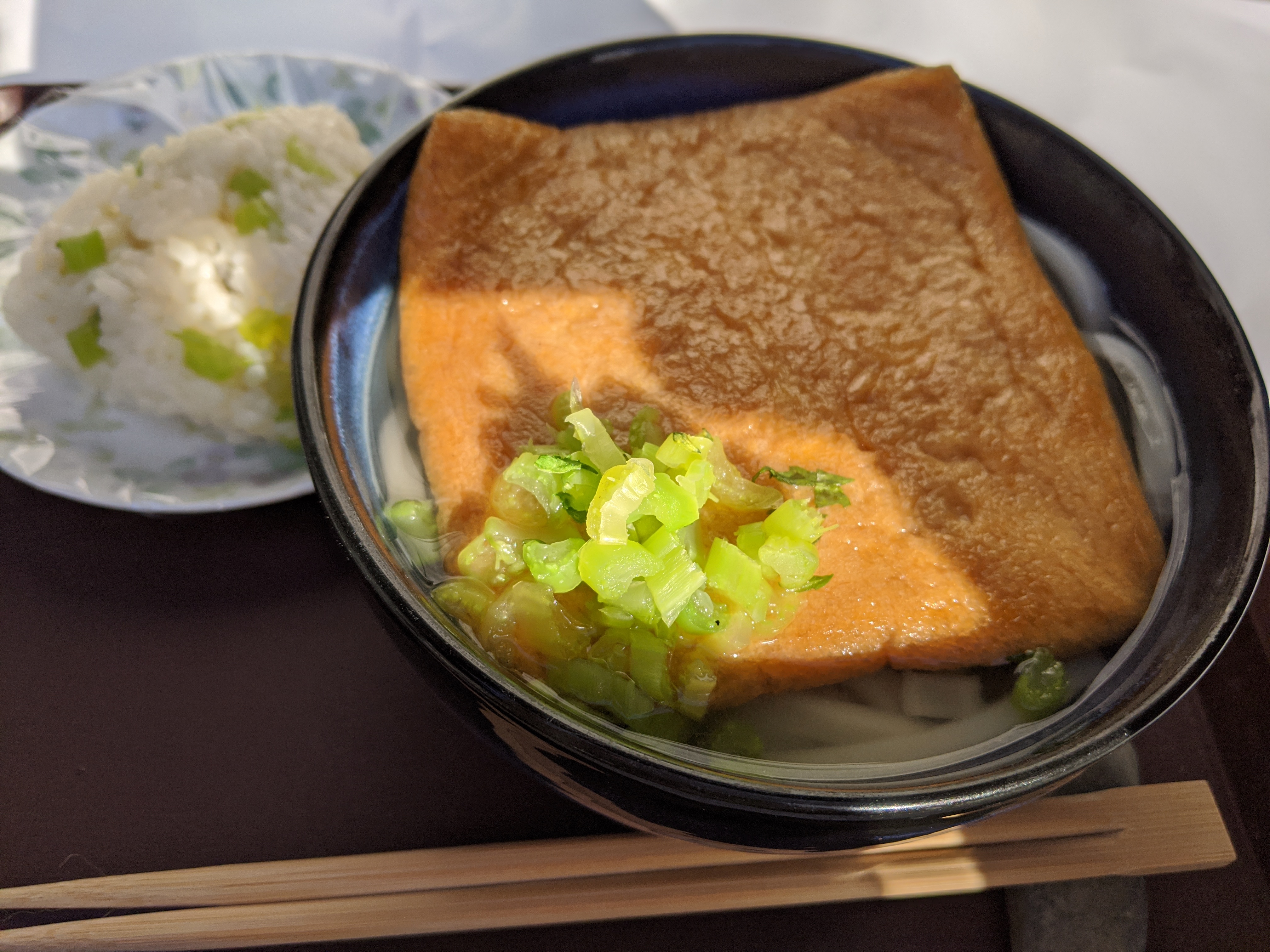 味も薄味のお出汁がお揚げの甘辛い味付けを引き立てていて、とても美味しかったです。