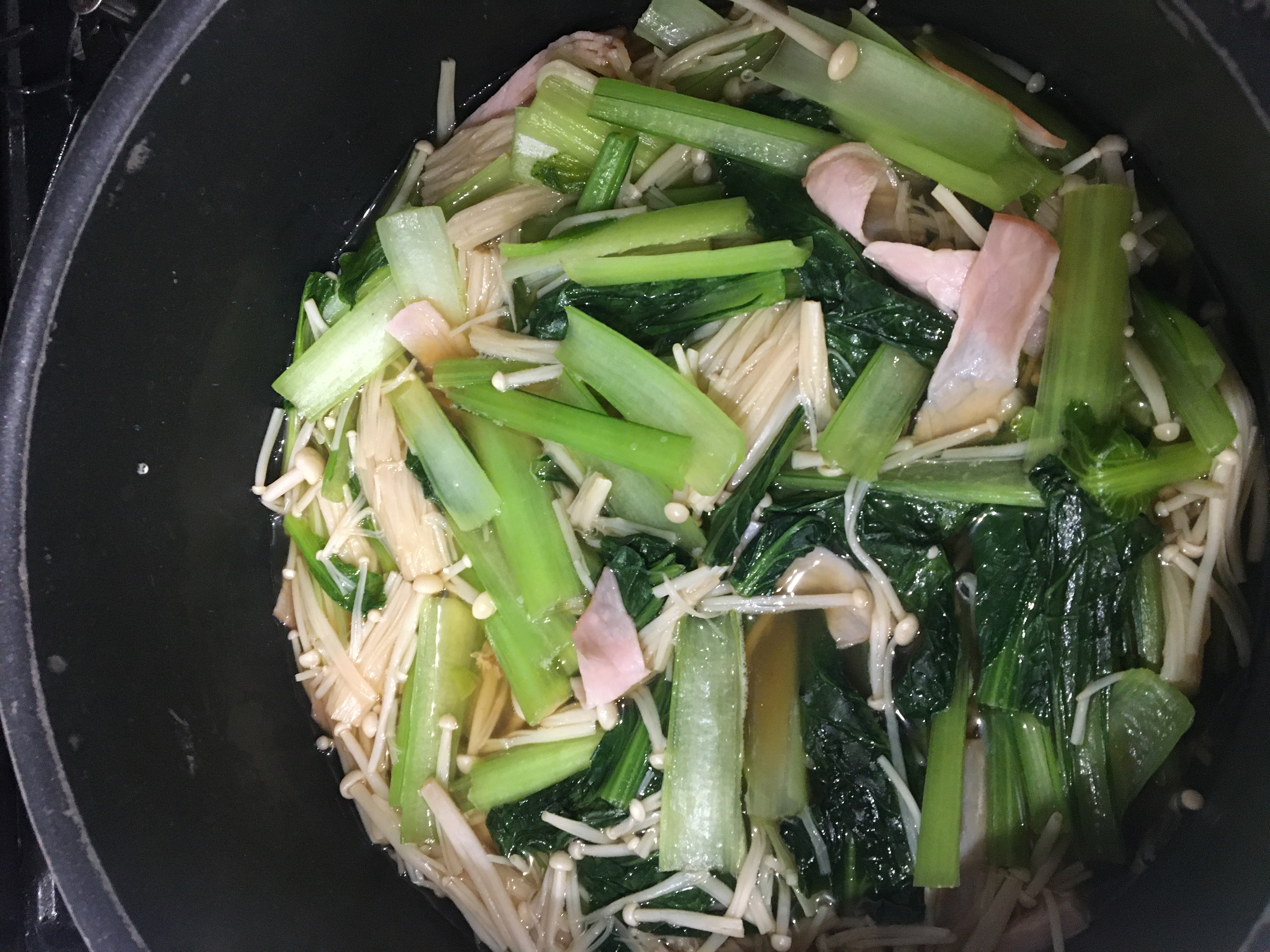 小松菜としめじ、ハムの煮浸しを作ってみました。