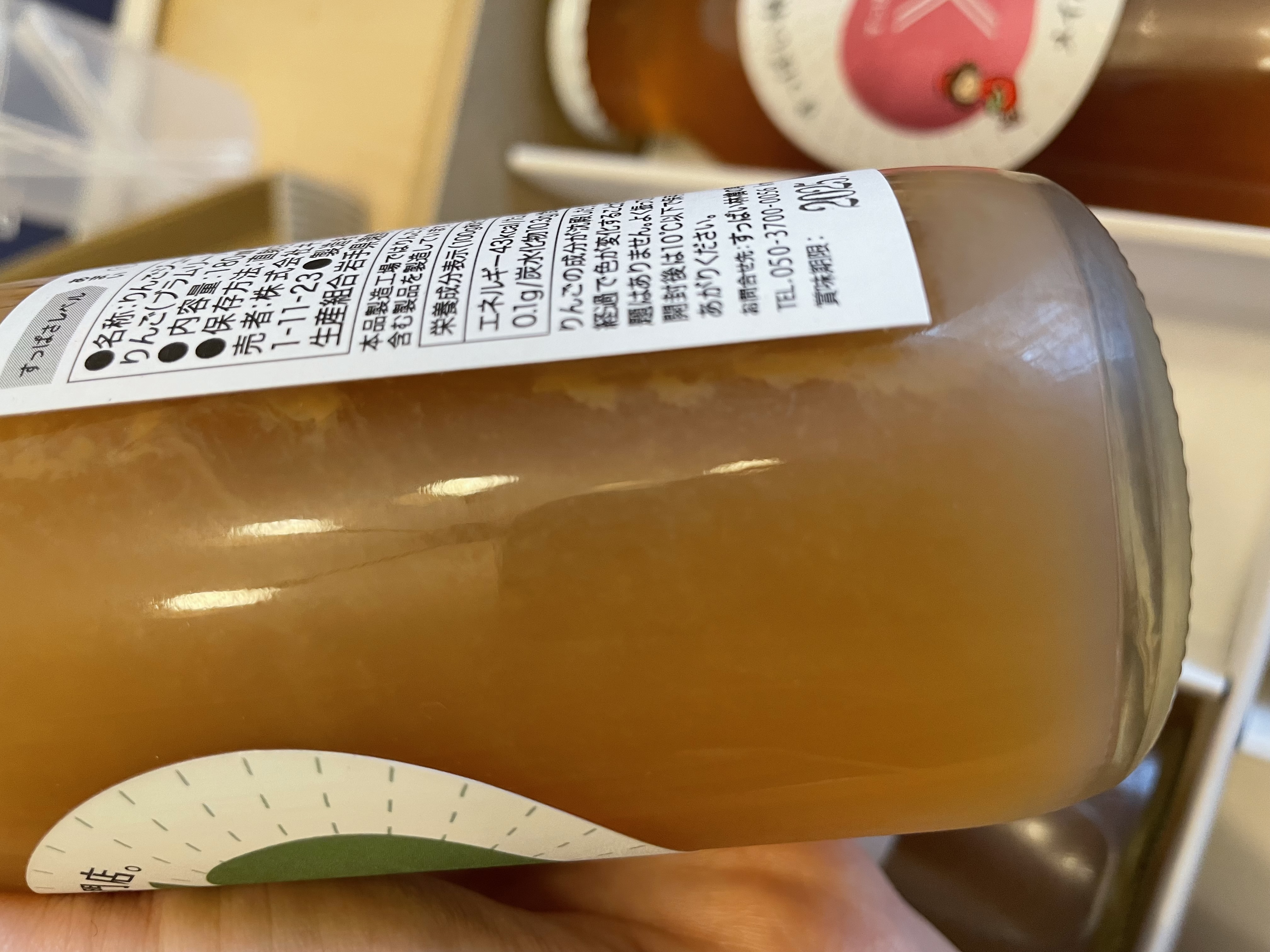 限りなくレモンに近い酸味ですが、最初の一口目は一瞬「あれ?」と拍子抜け。遅れて酸味が追っかけてくるという不思議なりんごジュースです。