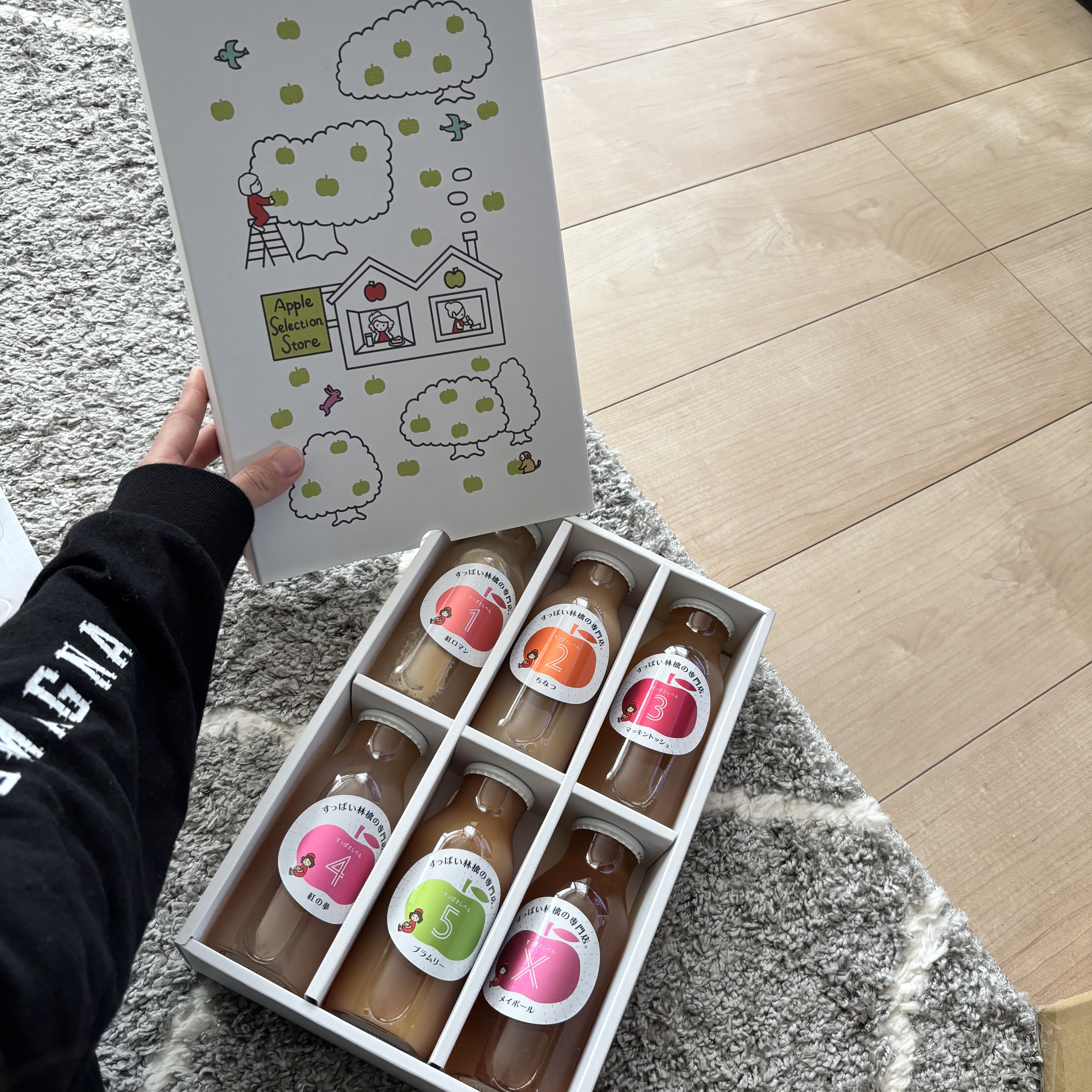 果汁以外は何も加えていないストレート果汁100%の「りんごジュース」です。「ブラムリー」や「紅の夢」など、りんごの品種別に搾られた6種類がセットになっています。それぞれに「すっぱさレベル」と呼ばれる、酸味の程度を表した数字がつけられていて、甘いものから酸っぱいものまであるので、「りんご(ジュース)ってこんなに違うの?」と新しい発見ができ、ひとりでも家族でも、飲み比べが楽しいセットです。180mlの飲みきりサイズで、可愛らしいラベルの付いた瓶に入って届きます。季節によってセット内容が変わるので、自宅用だけでなくギフトにもおすすめです。