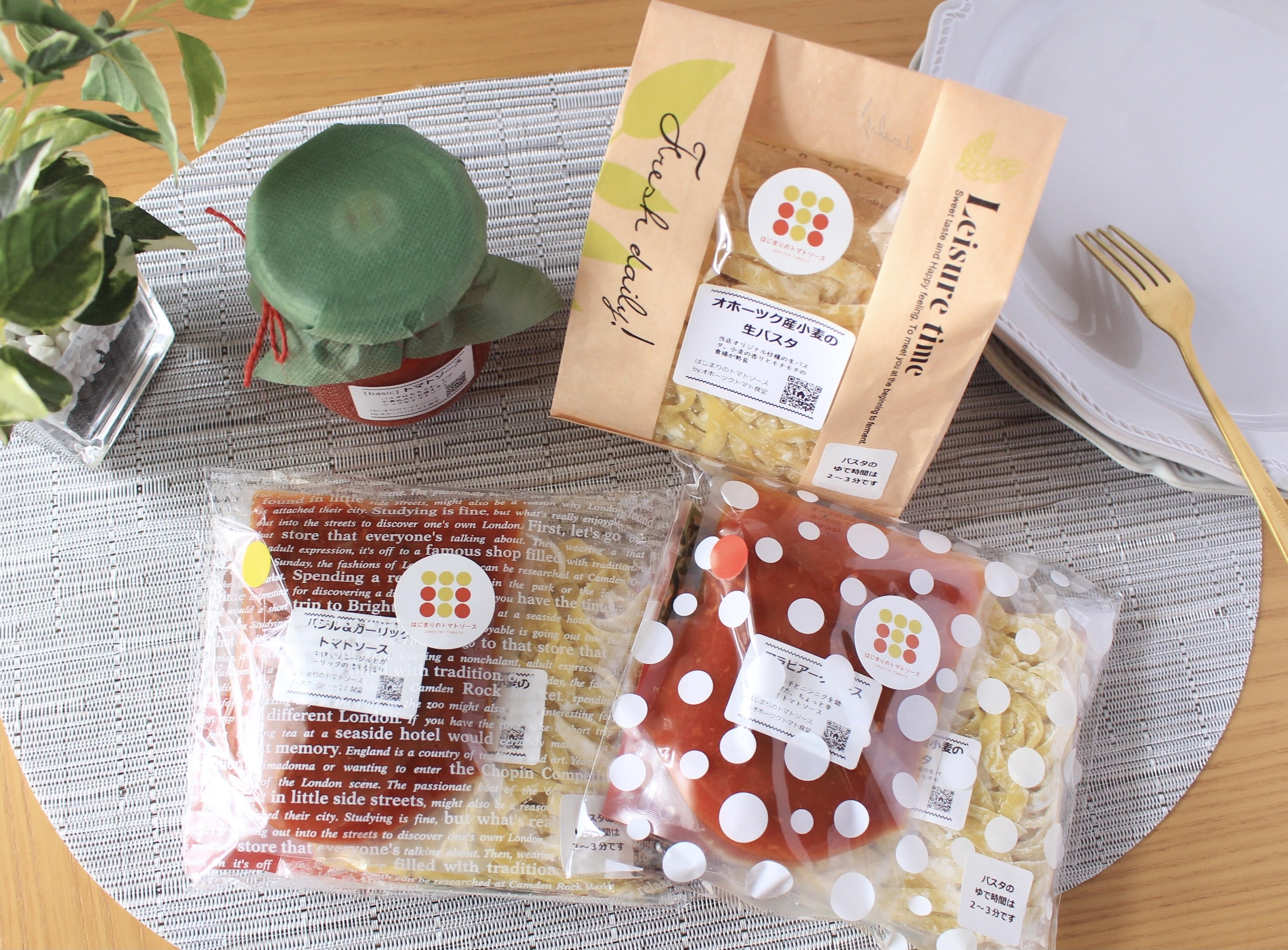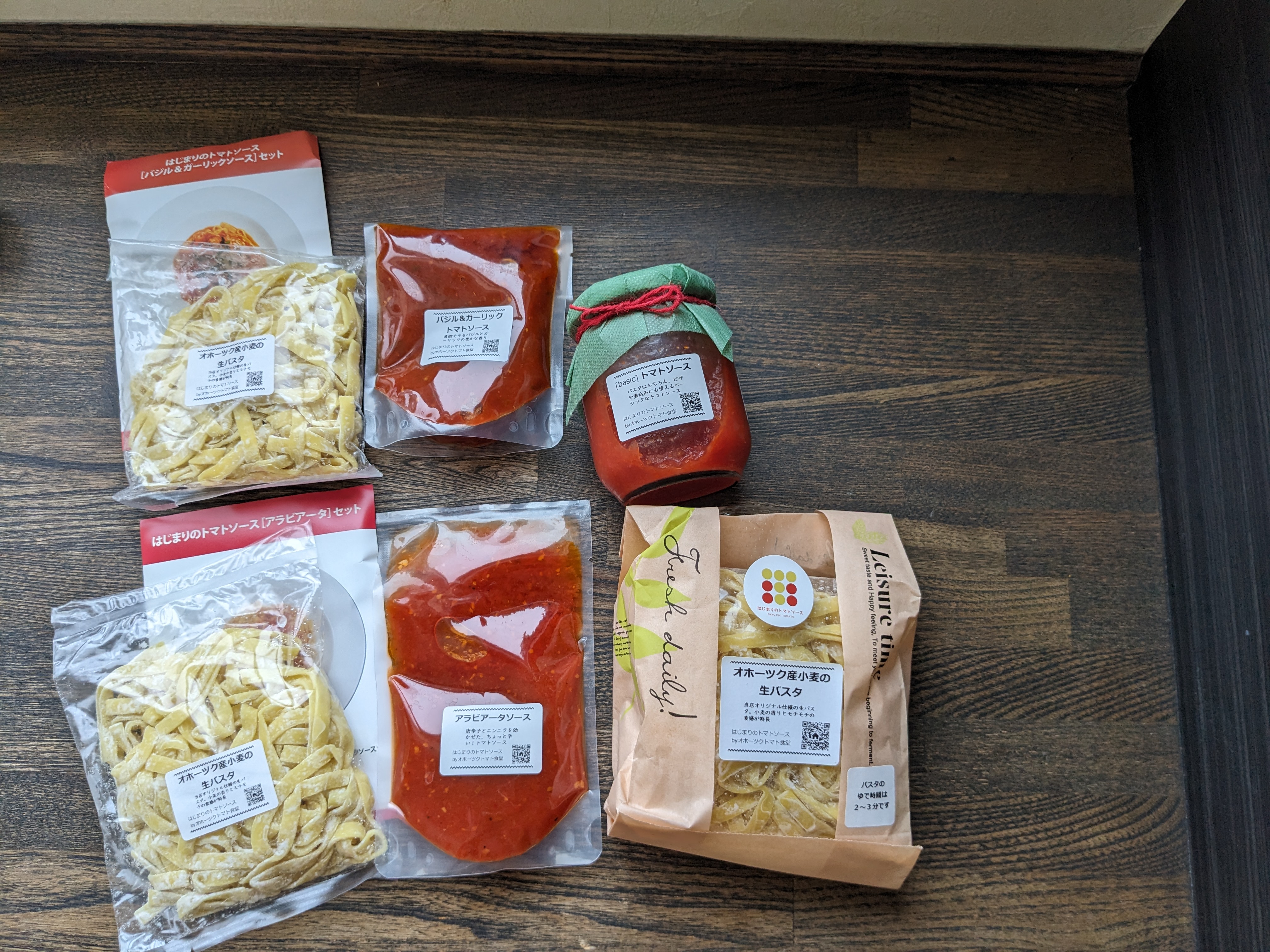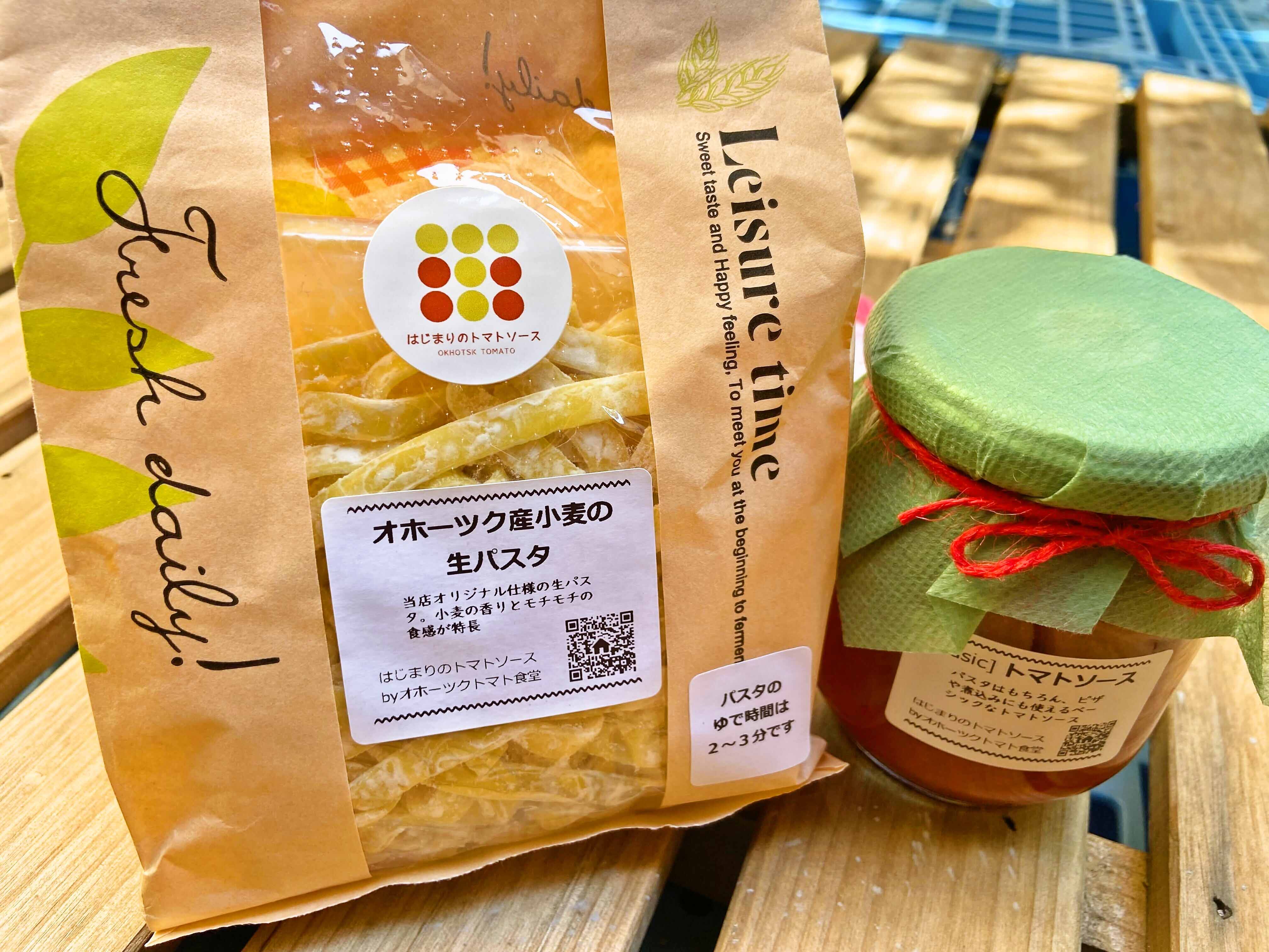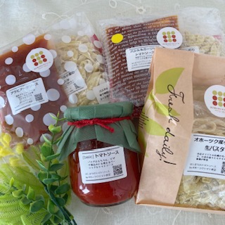北海道オホーツク産クッキングトマト「なつのしゅん」を使用した「トマトソースと生パスタ」のセットです。「なつのしゅん」は、鮮やかな赤色とさわやかな酸味と豊かな香り、適度な甘みをもち、トマトソースやジュースなどの加工にピッタリな品種。合わせる「生パスタ」は、北海道オホーツク産小麦(ゆめちから・きたほなみ)を使った、トマトソース専用生パスタ。パスタの旨みによって引き立てられるソースは、シンプルな「トマトソース」、バジルとガーリックの香り漂う「バジル&ガーリックトマトソース」、ピリ辛な「アラビアータソース」の3種。道産トマトソースの味わい深さを堪能できます。
