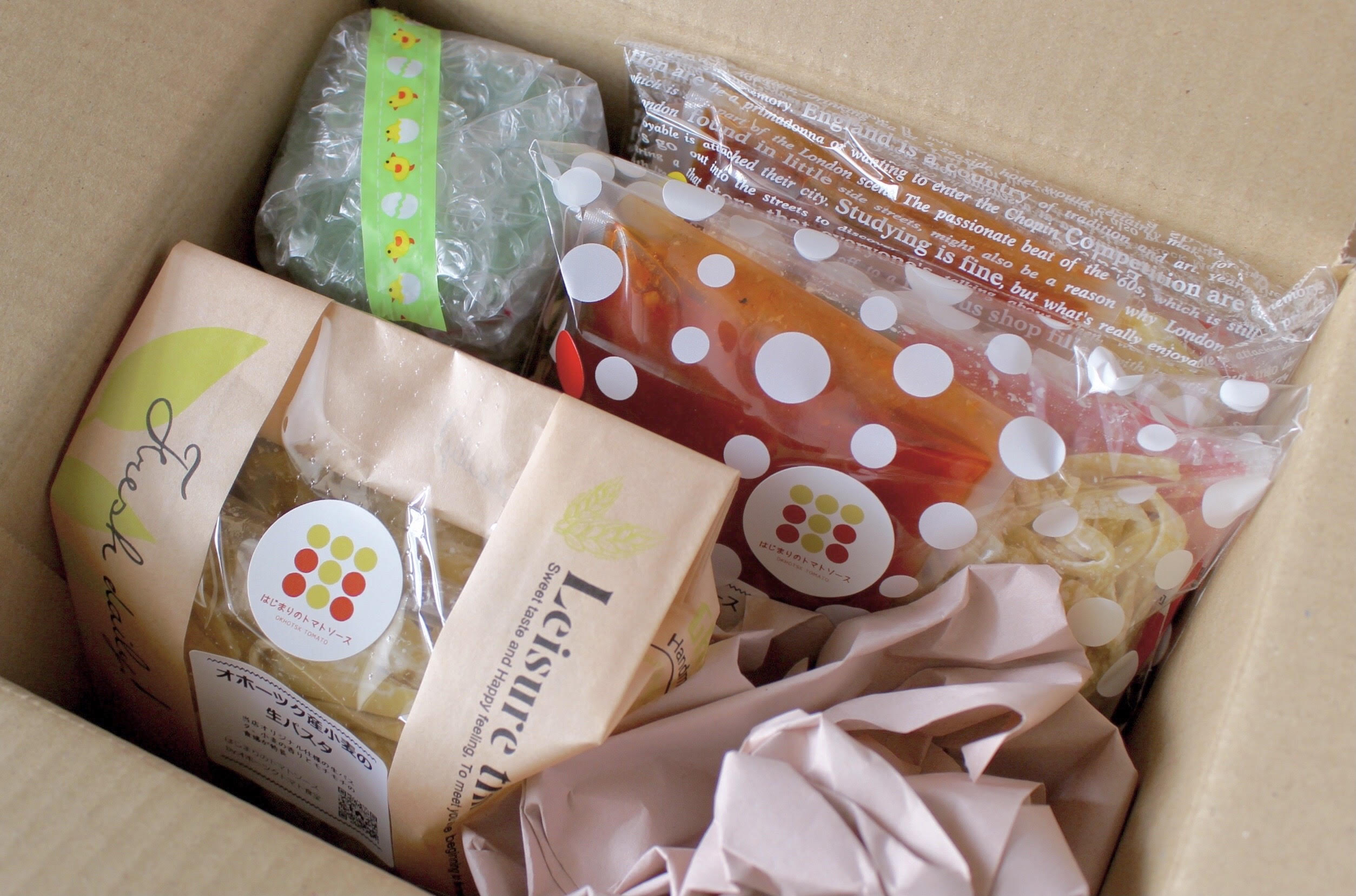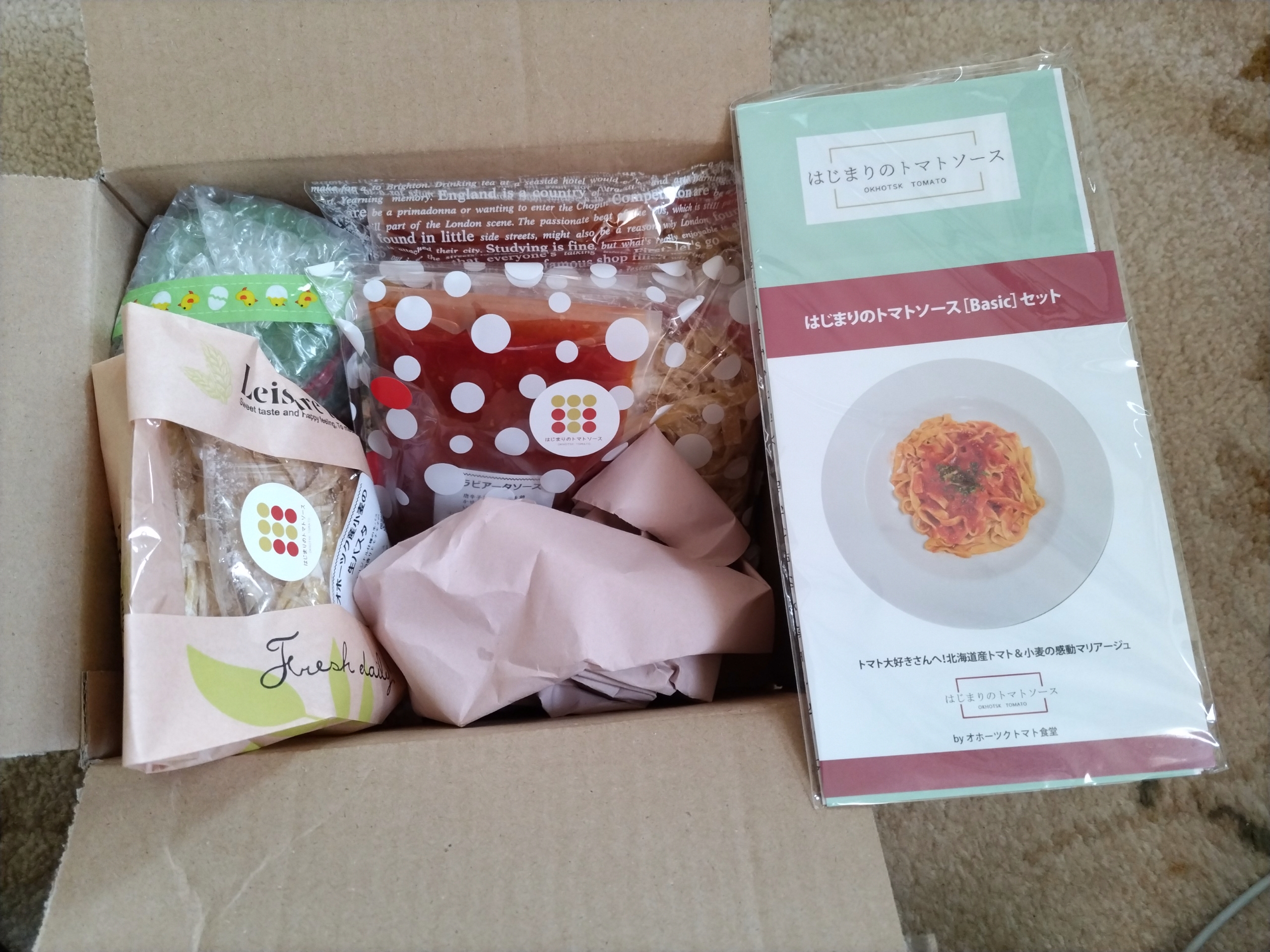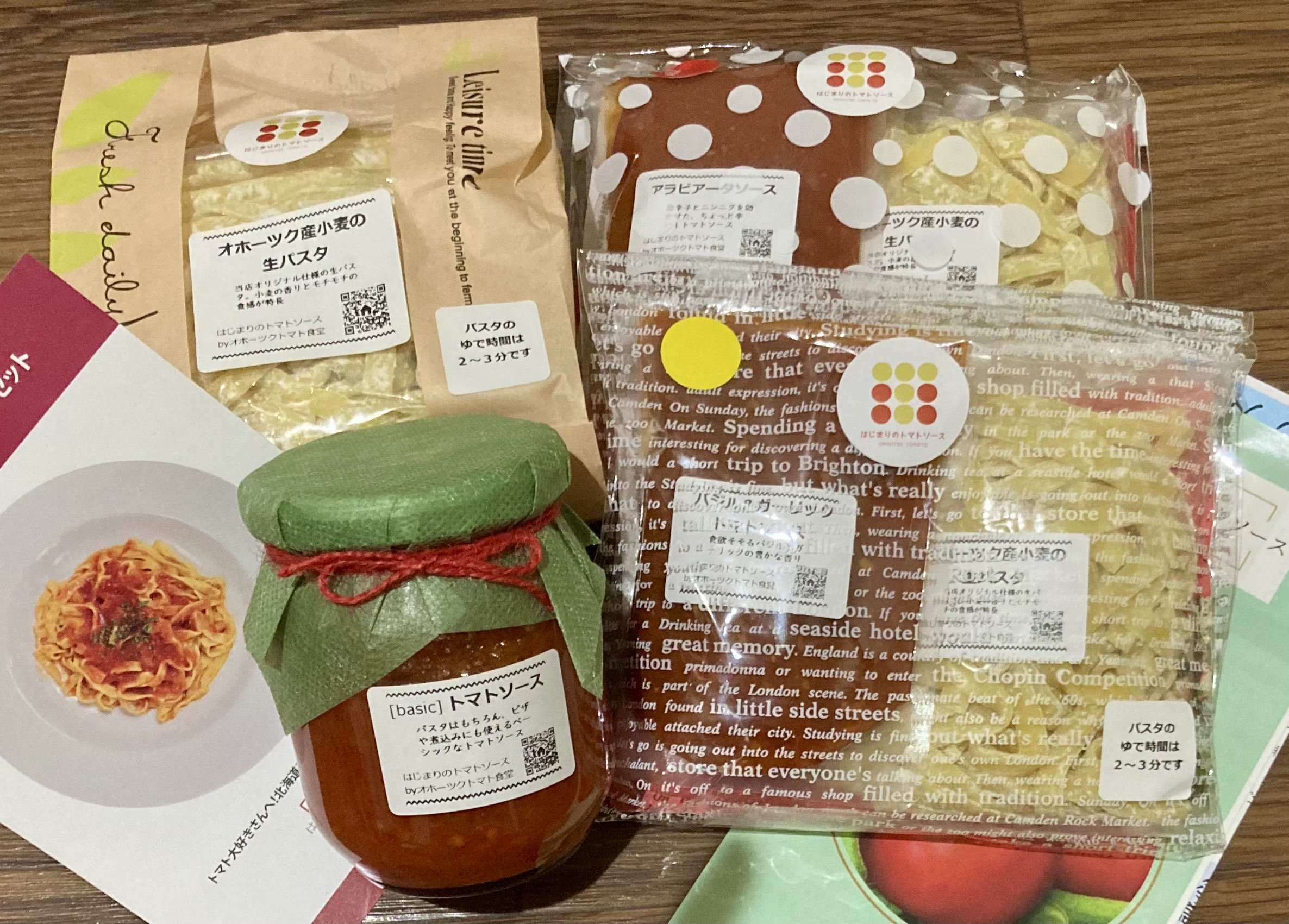 北海道オホーツク産クッキングトマト「なつのしゅん」を使用した「トマトソースと生パスタ」のセットです。「なつのしゅん」は、鮮やかな赤色とさわやかな酸味と豊かな香り、適度な甘みをもち、トマトソースやジュースなどの加工にピッタリな品種。合わせる「生パスタ」は、北海道オホーツク産小麦(ゆめちから・きたほなみ)を使った、トマトソース専用生パスタ。パスタの旨みによって引き立てられるソースは、シンプルな「トマトソース」、バジルとガーリックの香り漂う「バジル&ガーリックトマトソース」、ピリ辛な「アラビアータソース」の3種。道産トマトソースの味わい深さを堪能できます。