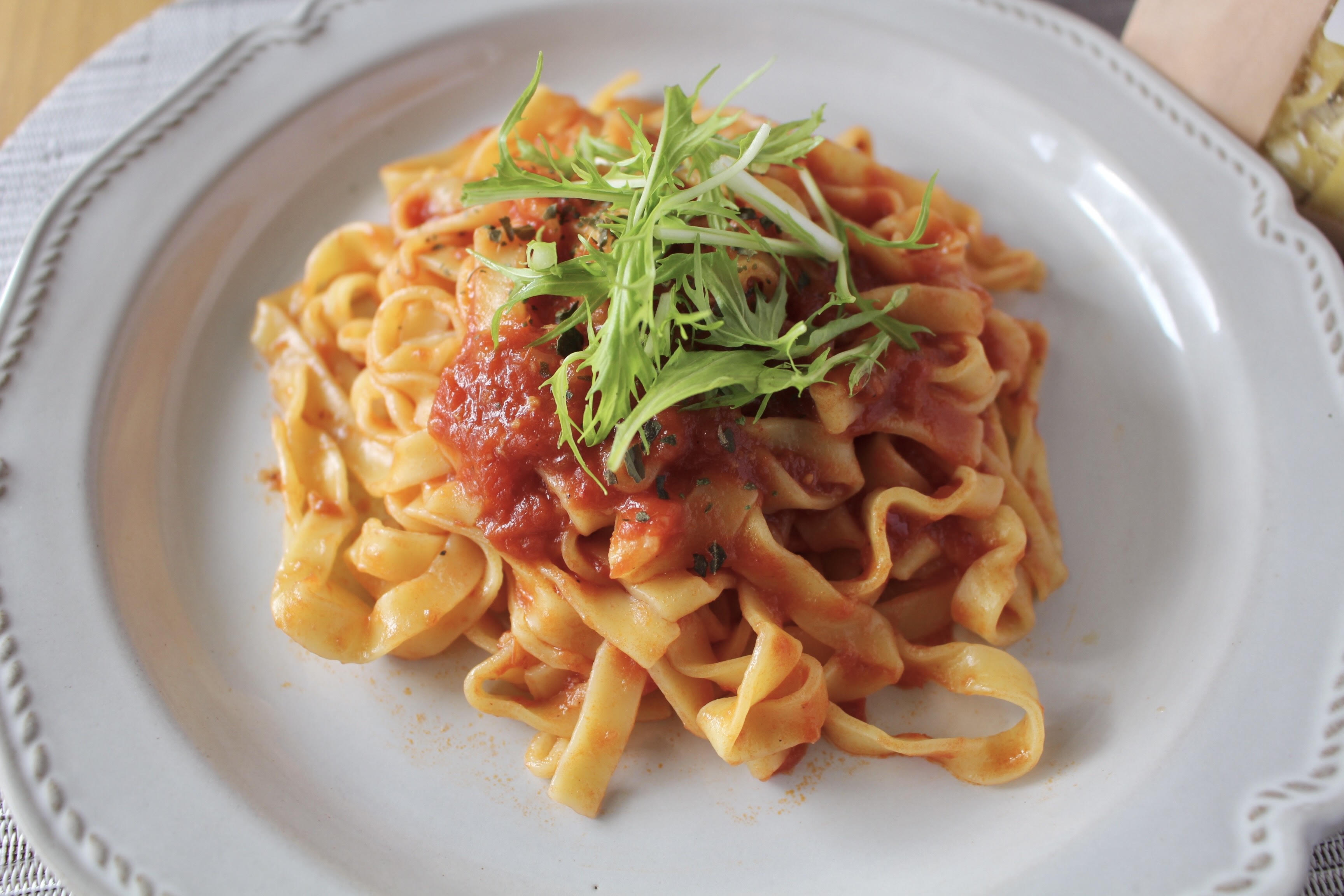 まさに『お店で提供されるトマトパスタ』そのものです◎
