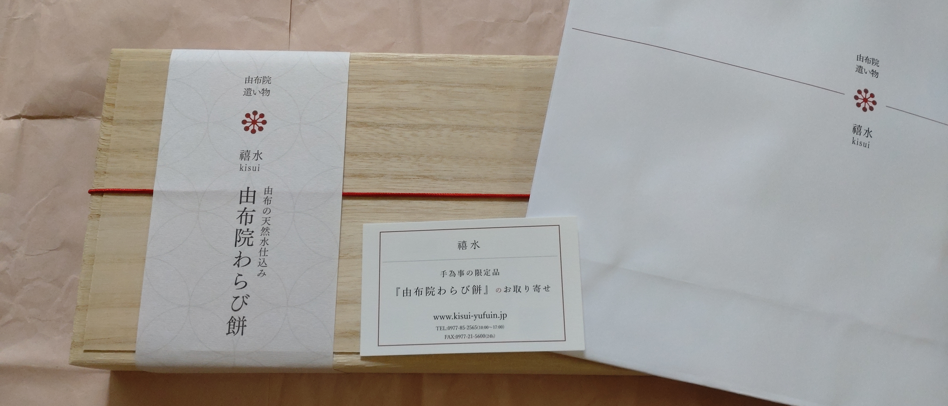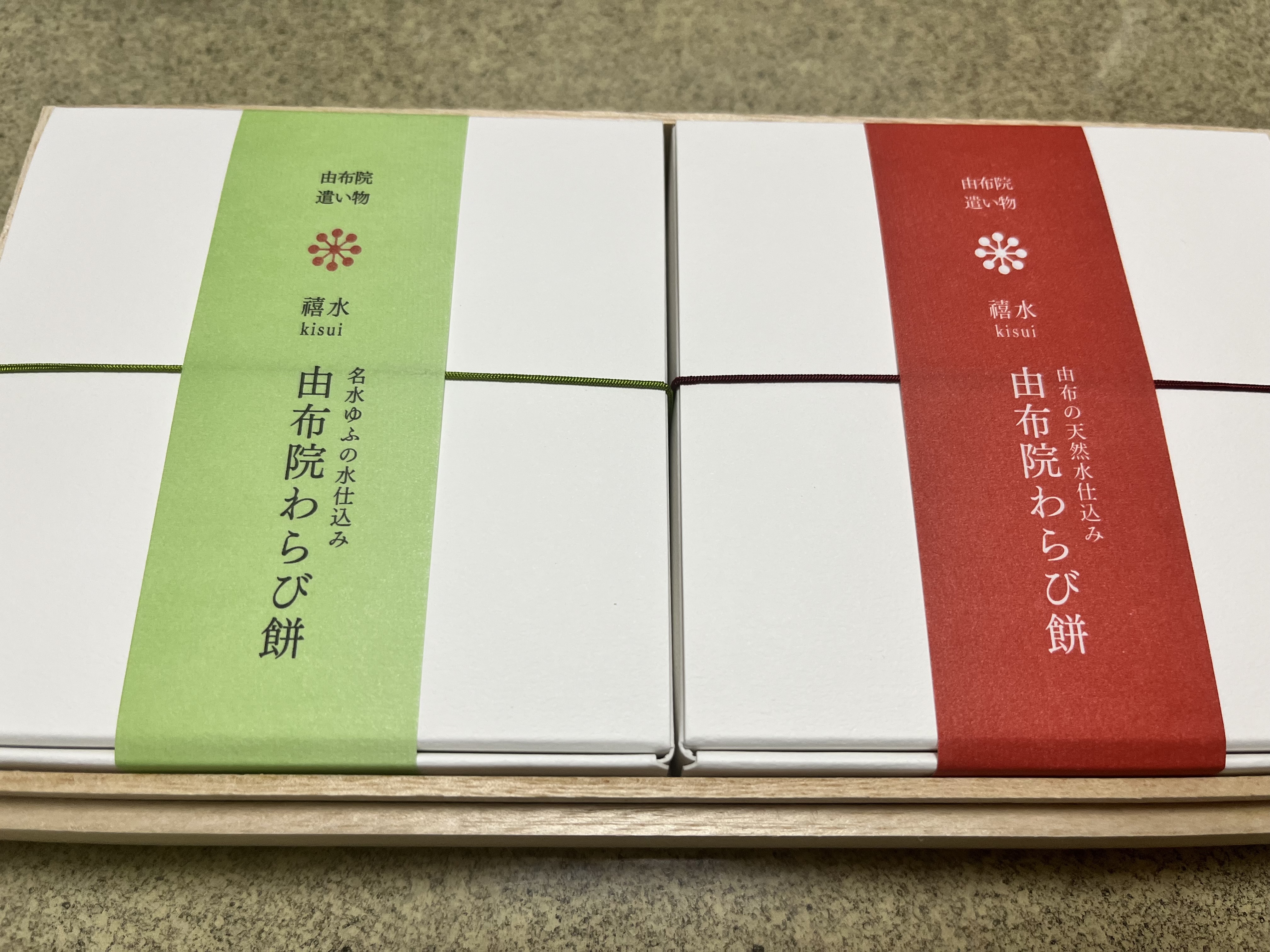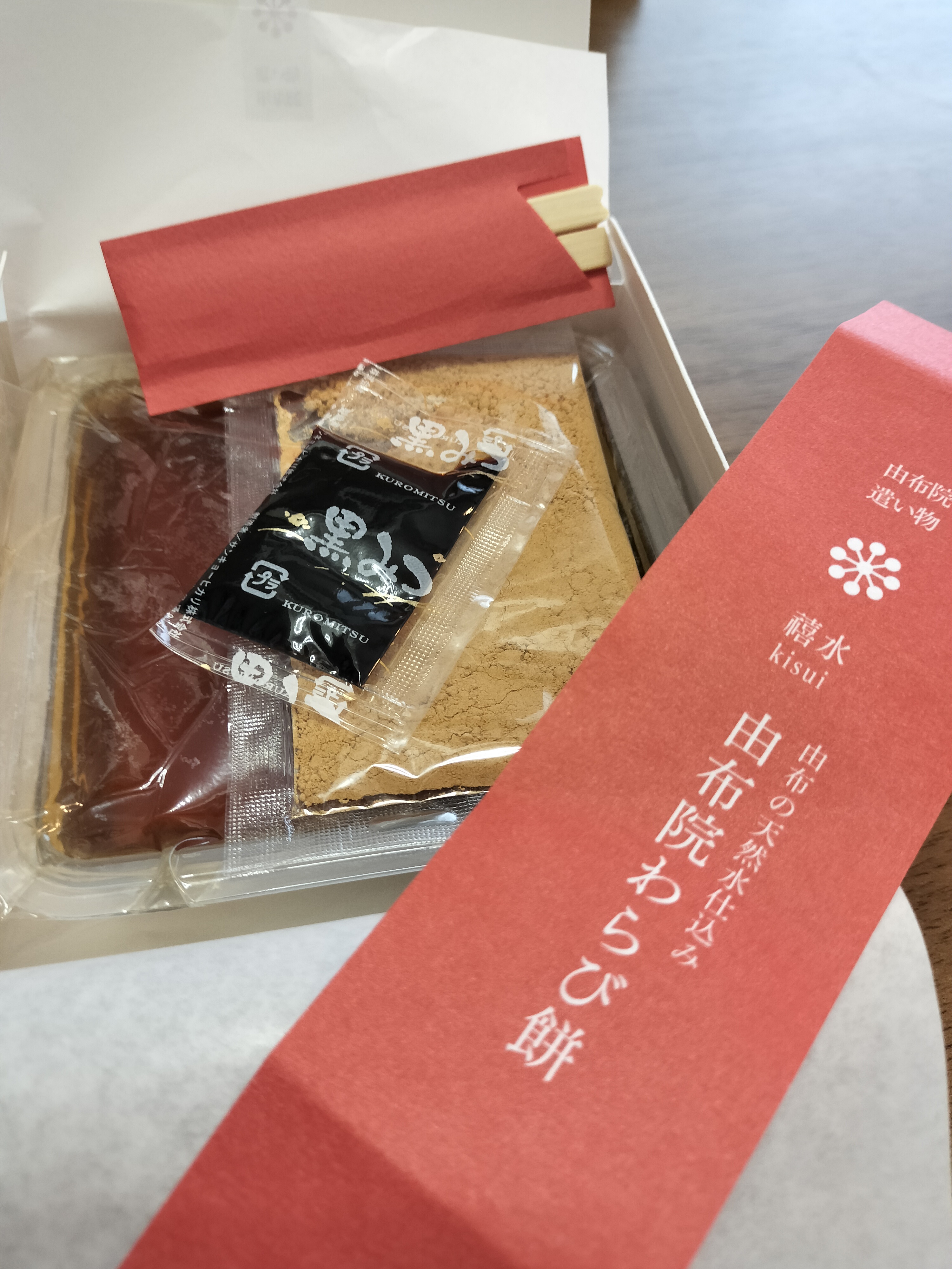 ワクワクしながら開けると、和を感じるパッケージの由布院わらび餅の真空パックが2箱入ってました。