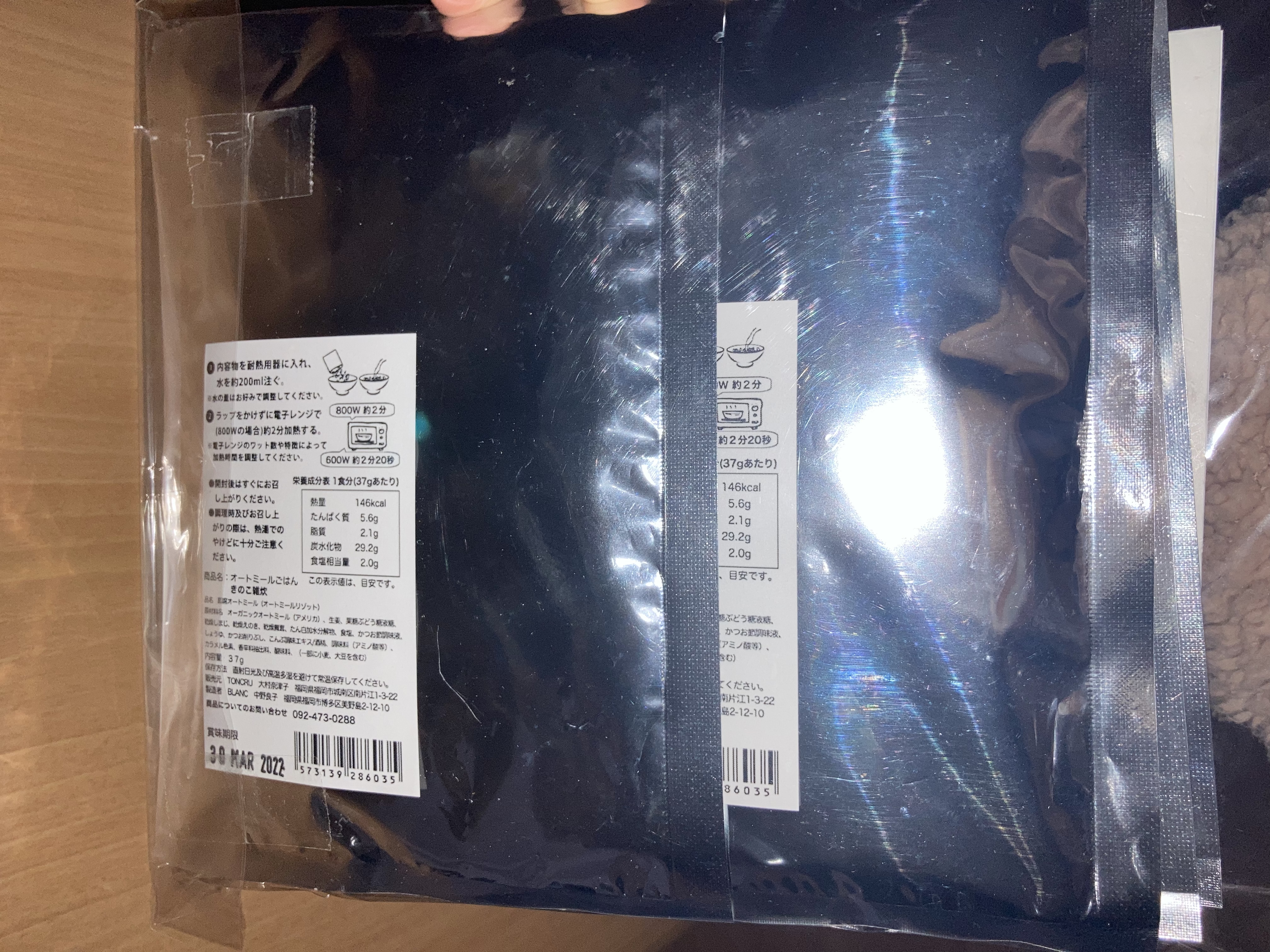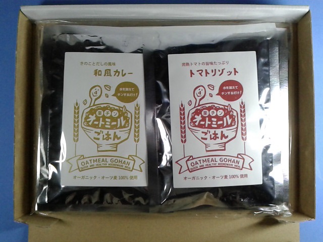 中にはちゃんと、「きのこ雑炊」、「トマトリゾット」、「和風カレーリゾット」の3種類6袋セットが入っていました(3番目の写真参照)。