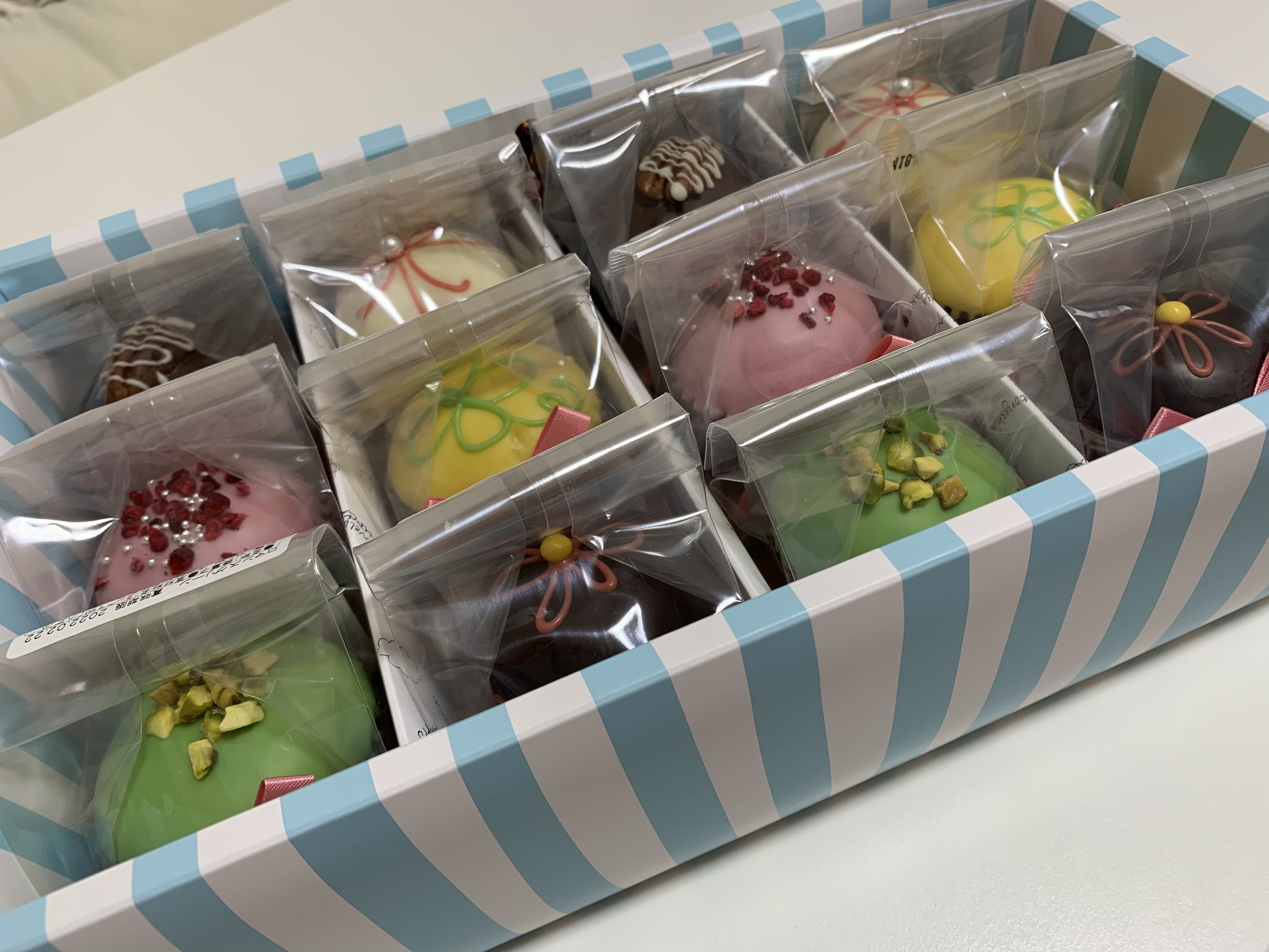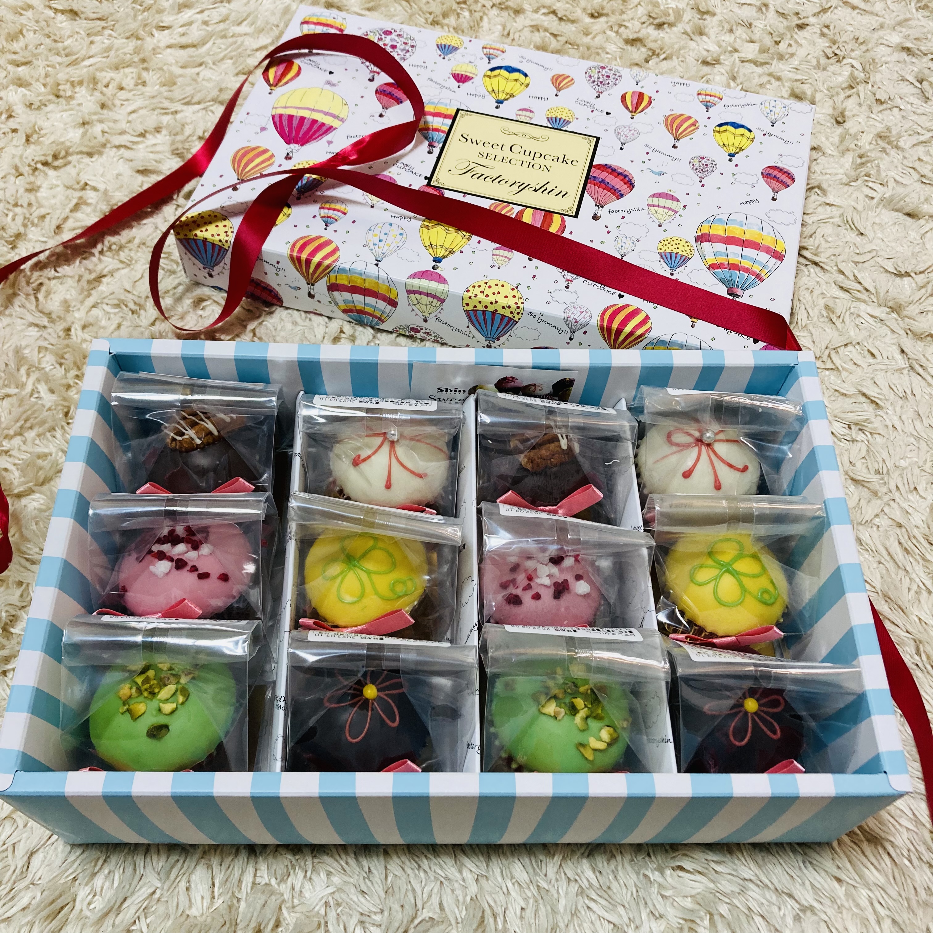 デコレーションにこだわったとっても可愛いミニサイズのカップケーキです。ラズベリーとチョコが相性抜群の「ジュエルピンク」や、レモンピールとポピーシード入りの爽やか味のベースにクローバーを描いた「ラッキークローバー」、人気のピスタチオフレーバー「ロマンスグリーン」等6種12個セット。見ているだけでも楽しくなれるお洒落なカップケーキなのでパーティーや誕生日などお祝い、女子会などにもぴったりなおしゃれなギフトです