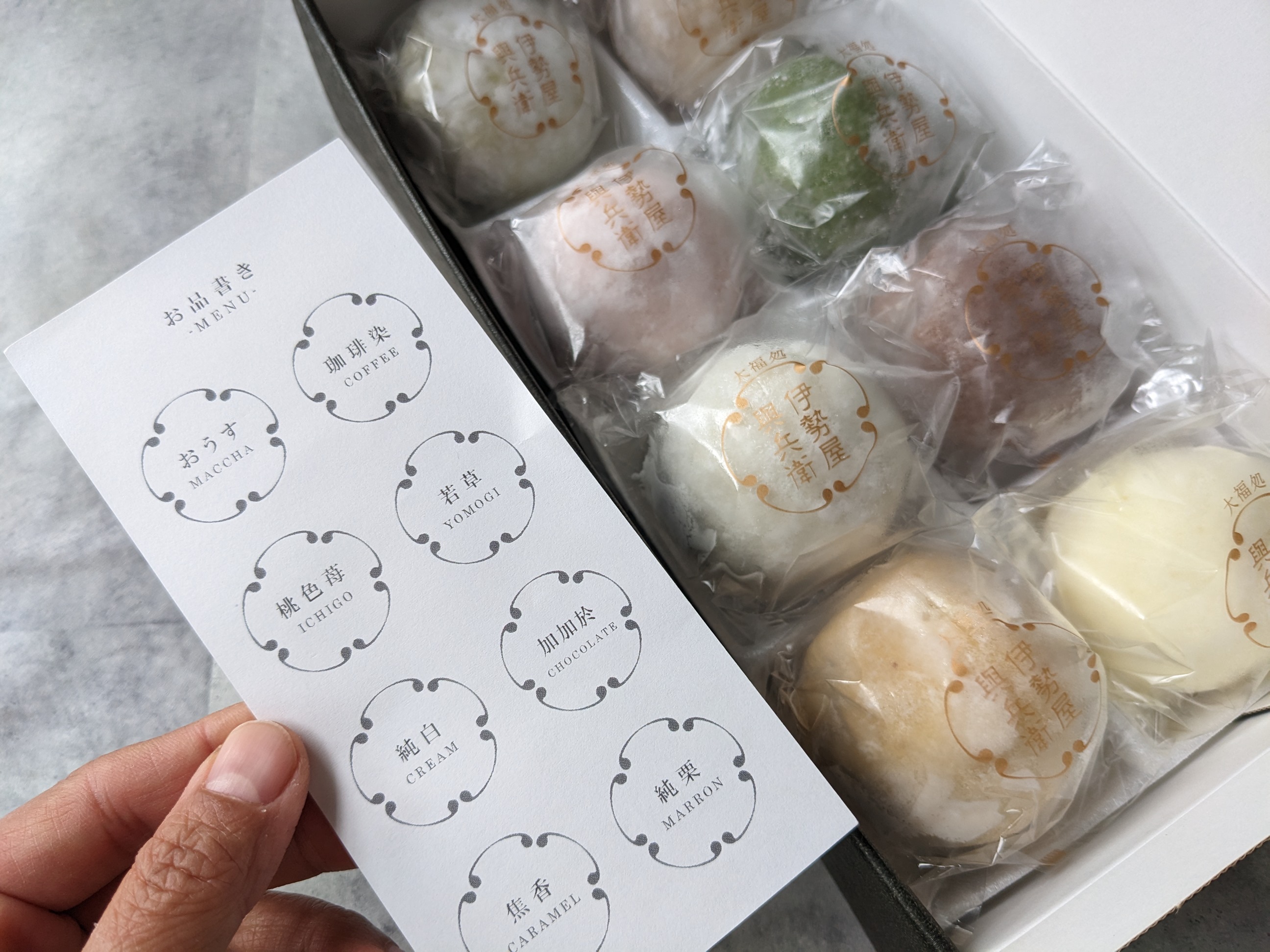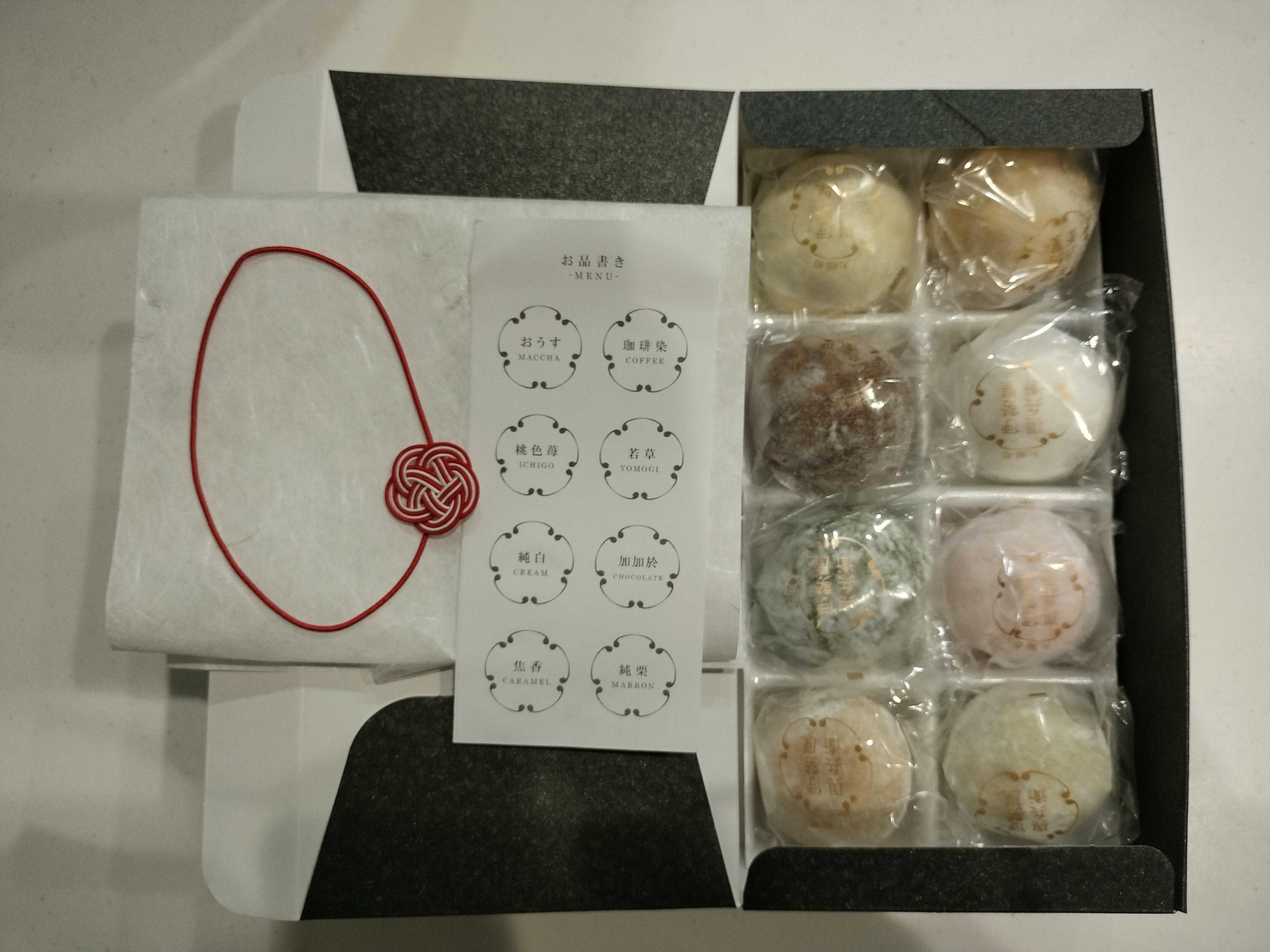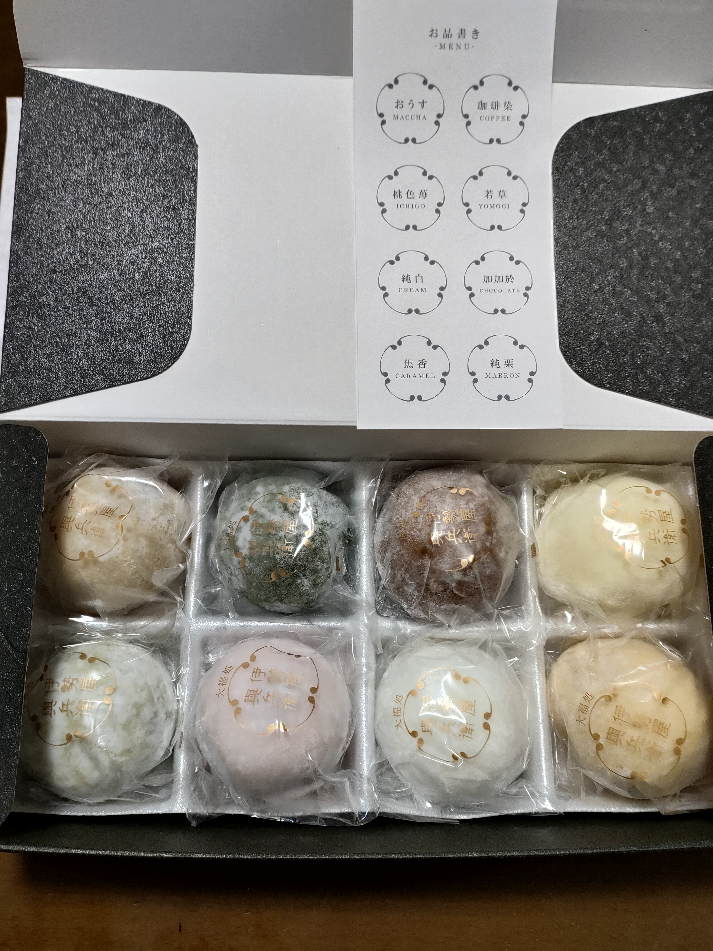 もっちりした感触の餅と当店人気のフレーバー8種をお楽しみくださいませ。