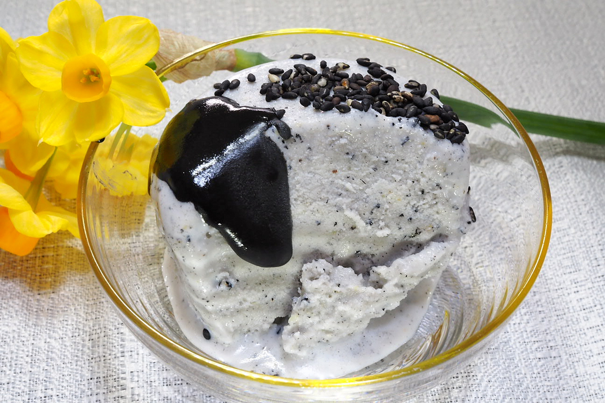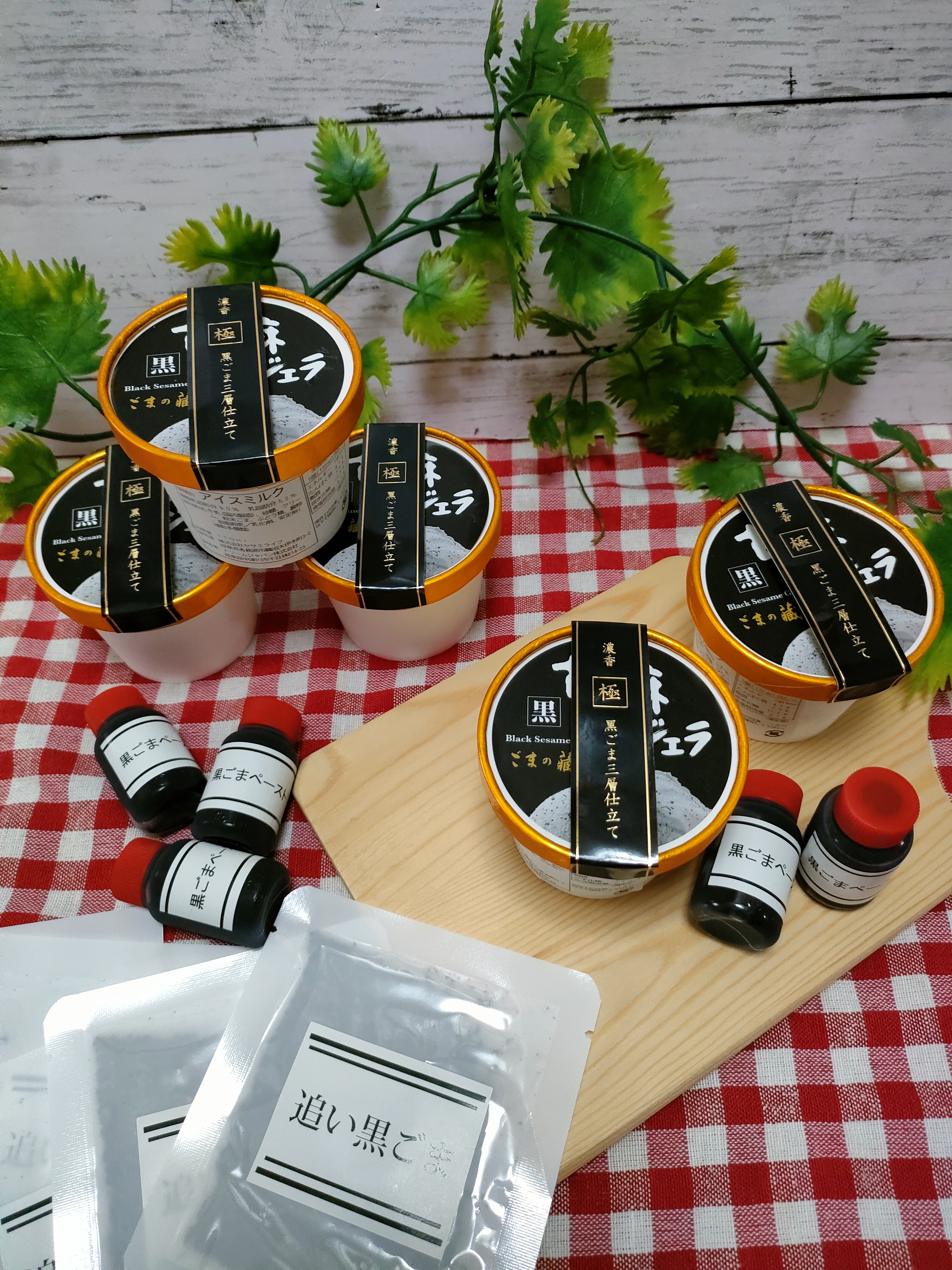 味が濃厚でありながら、後味がさっぱりとしたジェラートです。ジェラートのために黒胡麻の加工方法を独自で工夫しました。更に黒ごまの香りや風味をご賞味いただきたく為、黒ごまペーストと追い黒ごまは別添でお送りしています。