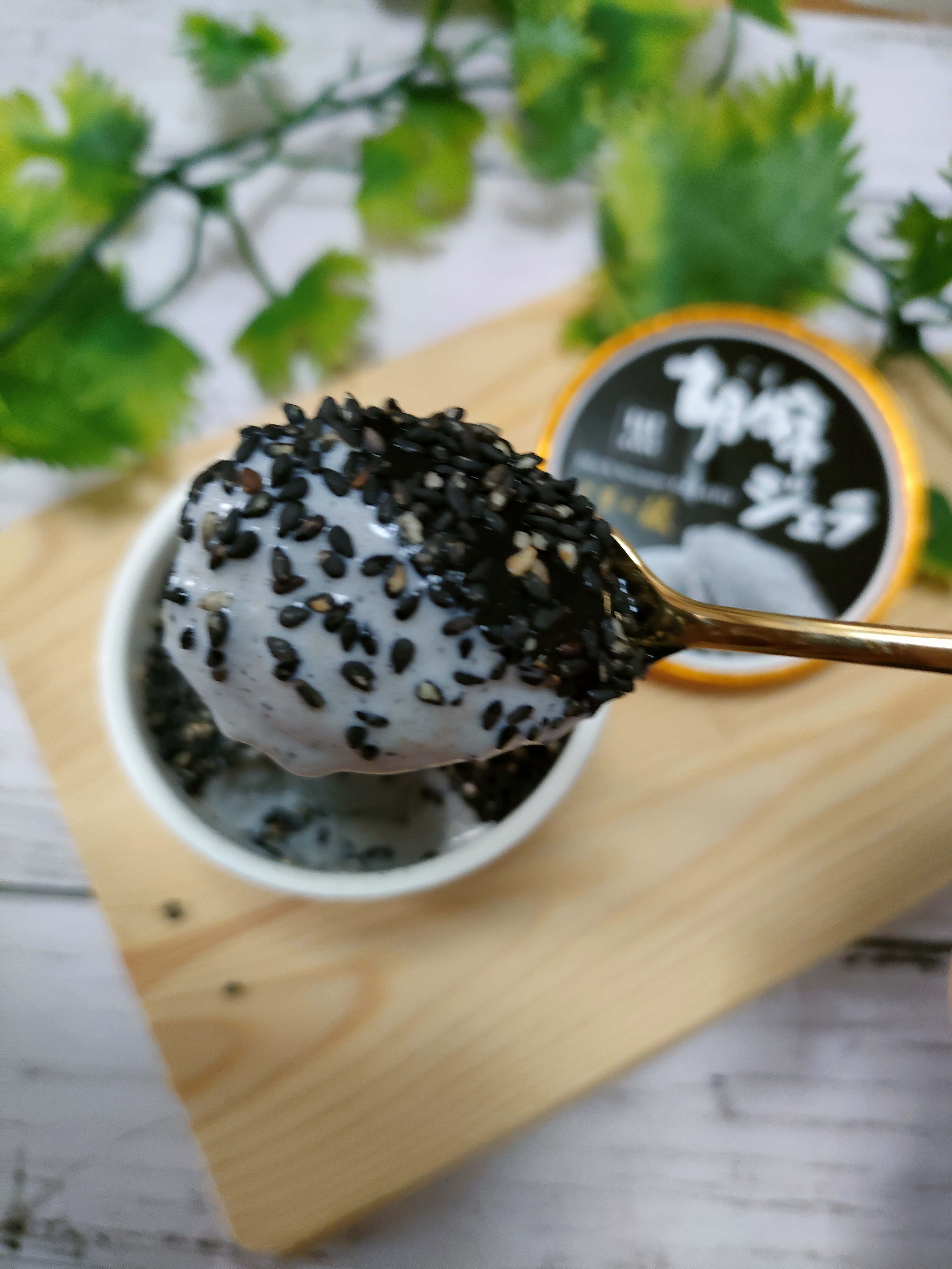 黒ごまペーストを冷蔵解凍して(冷水解凍でもOK)いただきます。