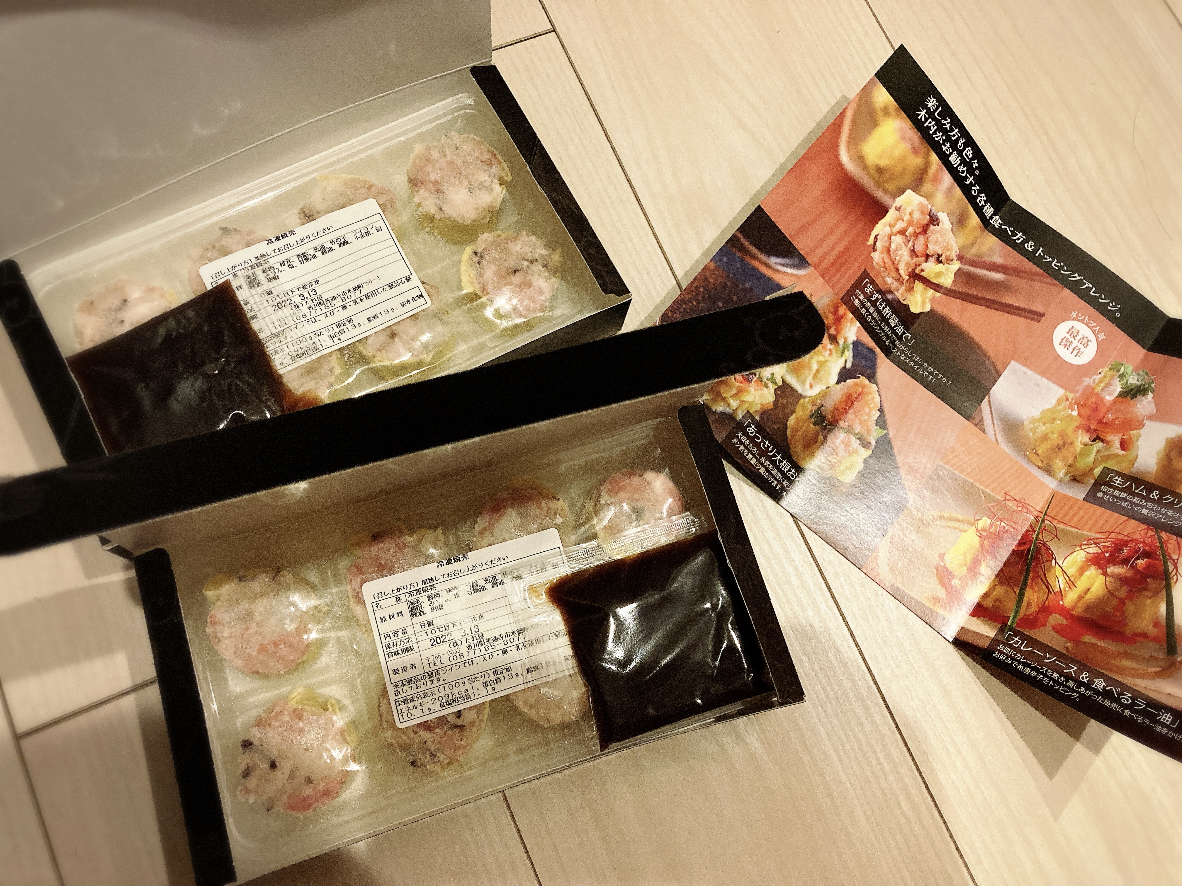 ゴロゴロとした具材のためにとても食感が良く、一口で海老のプリプリ感や豚肉のジューシーさを感じることができました。ジューシーさはありますが脂っこすぎることはなく、素材の旨味が感じられるとても美味しい焼売でした!HPに書かれていた通り、白ごはんとの相性も抜群で、白ごはんがとても進みます。そのままでもお肉や海老の旨味があり美味しかったですが、付属の酢醤油も味がしっかりしていて、焼売の味が引き立てられてさらに美味しかったです。