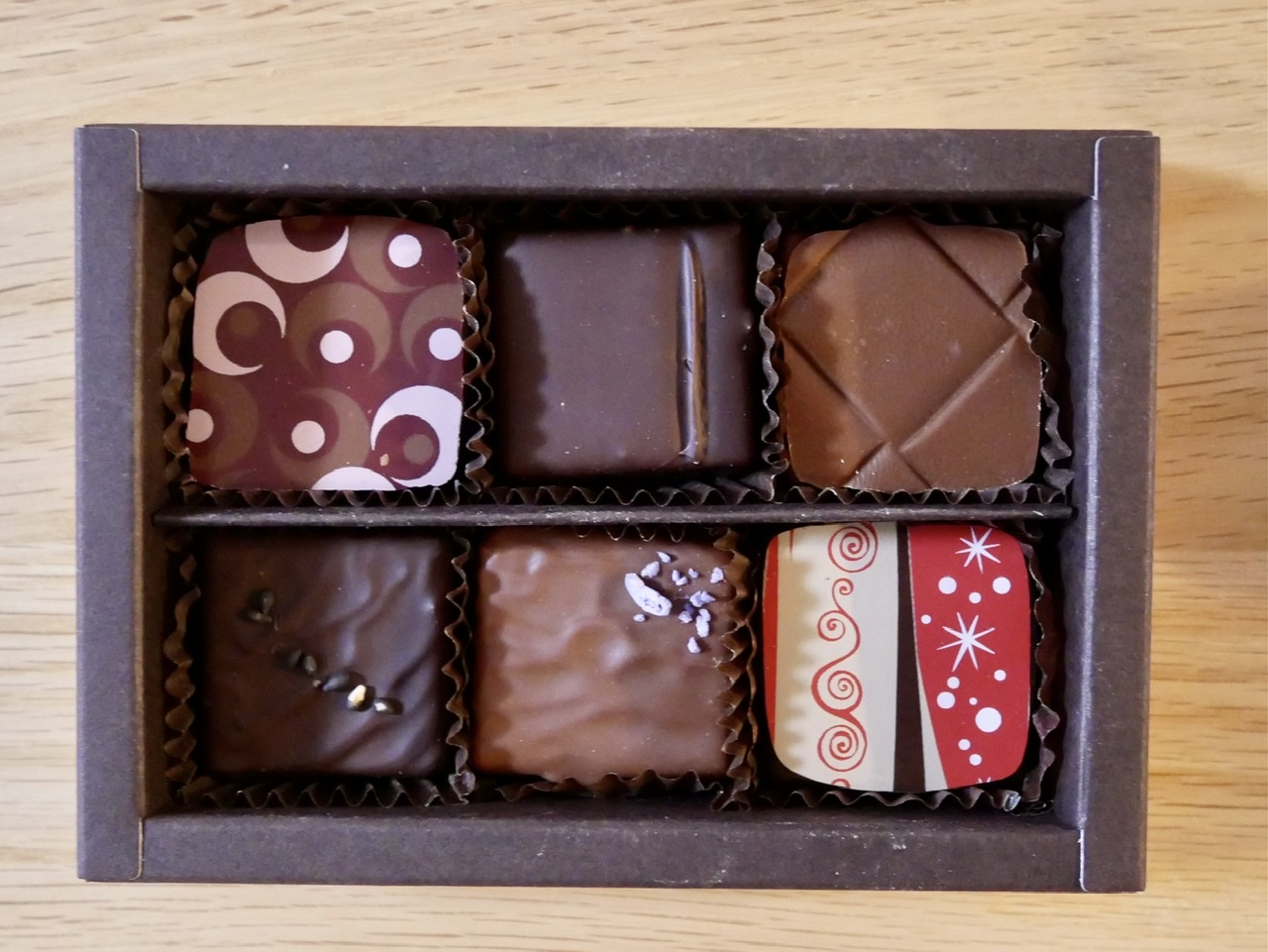奈良県生駒市にあるフランス菓子店が作った「ボンボンショコラ」です。ミルクの甘さの中にカシスの酸味を感じる「カシス」、しょうが風味の赤いベリーとミルクチョコレートのマリアージュ「フリュイルージュジャンジャンブル」、ホワイトチョコレートにすみれの花のリキュールをプラスした「パルフェダムール」など6種。高級感のあるボックスで届くので、バレンタインなどの贈り物にもおすすめです。