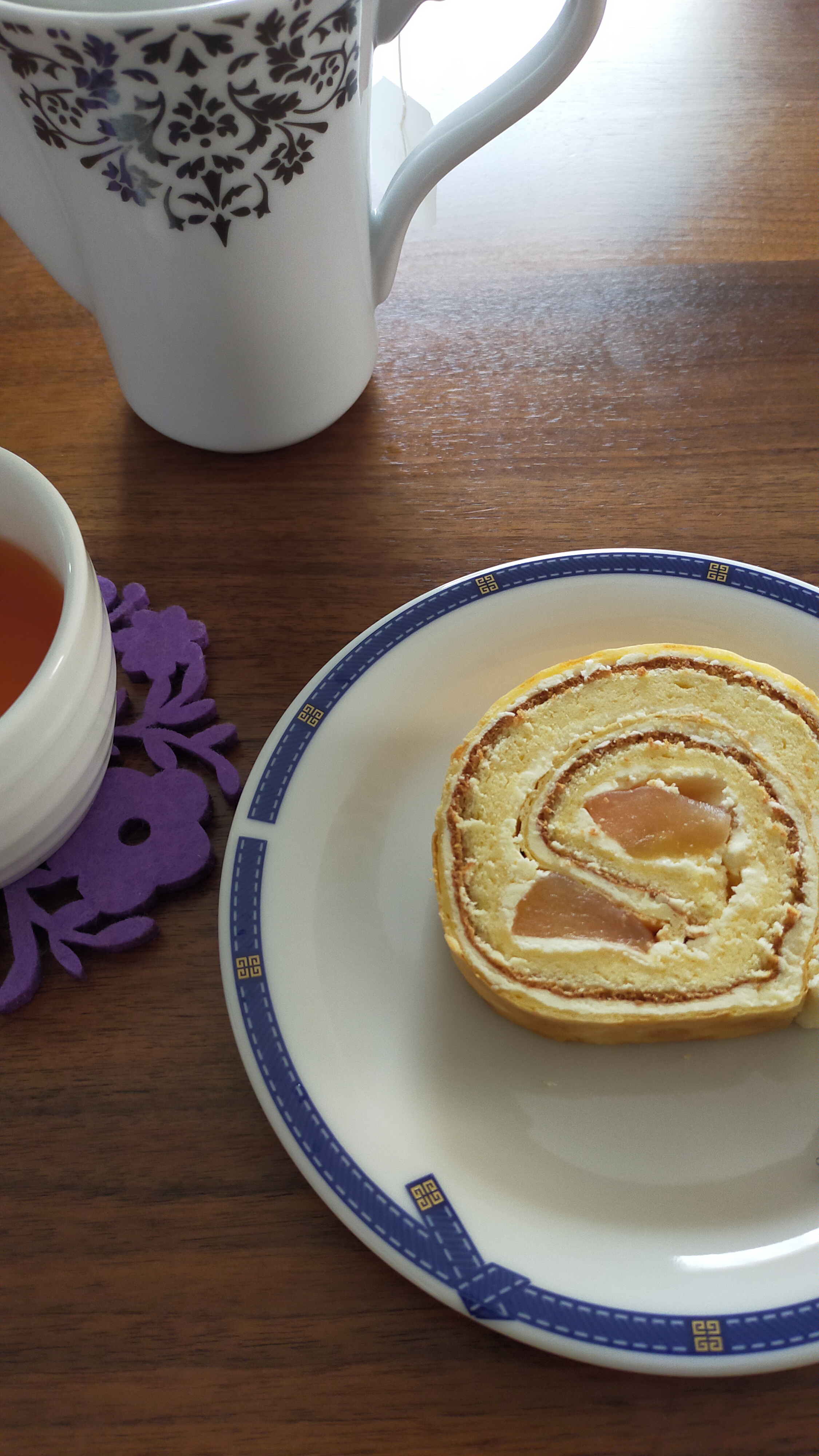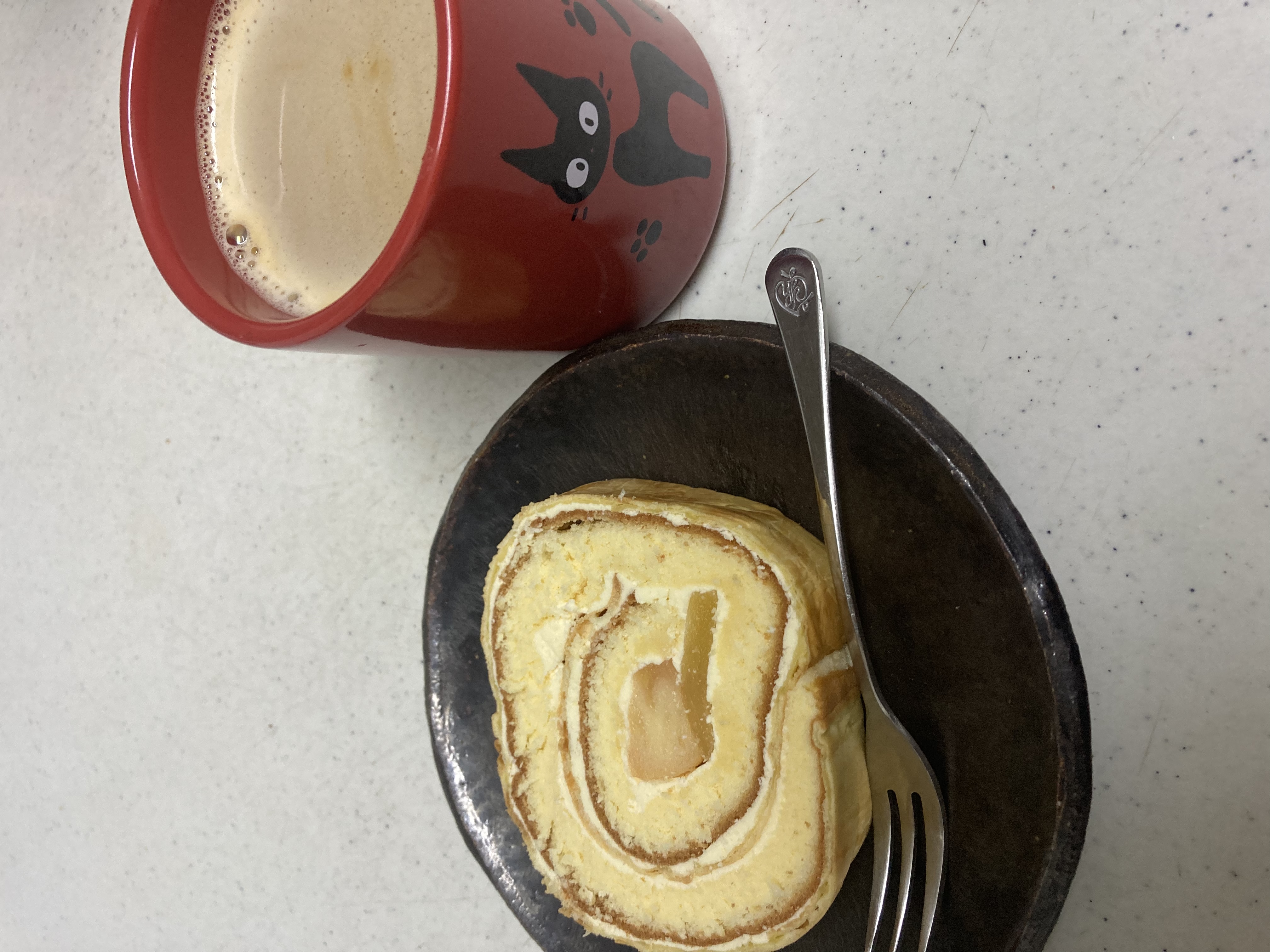 ロールケーキの間に挟んであるクリームは丁度いい甘さでりんごとスポンジと合わさって美味しさを引き立ててくれてました。