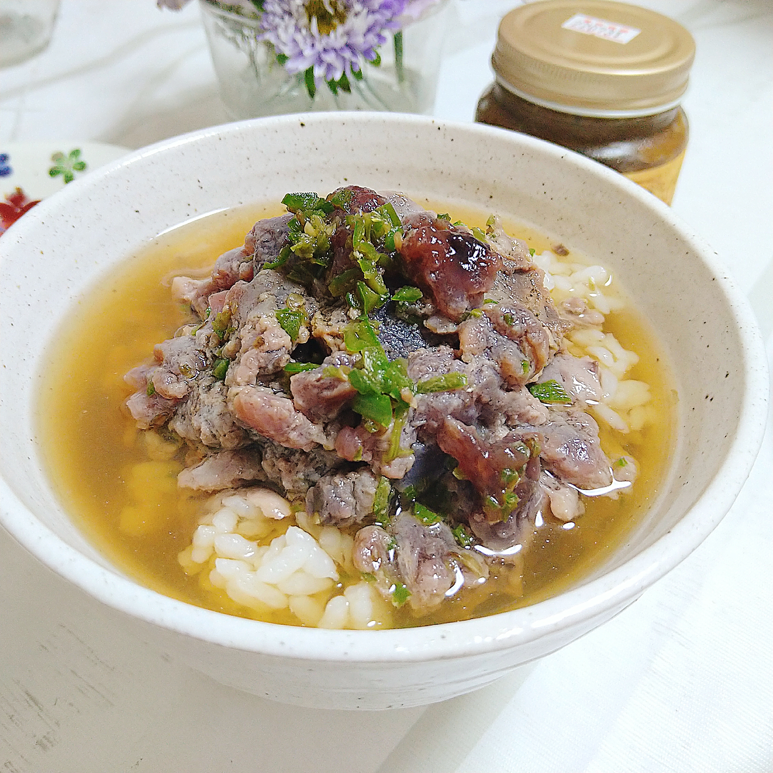 (3)青唐辛子、醤油と混ぜた残りのうずわをご飯に乗せて、希釈・沸騰させた熱々のうずわ出汁をかけます。うずわ茶漬として最高の〆をお楽しみいただけます。