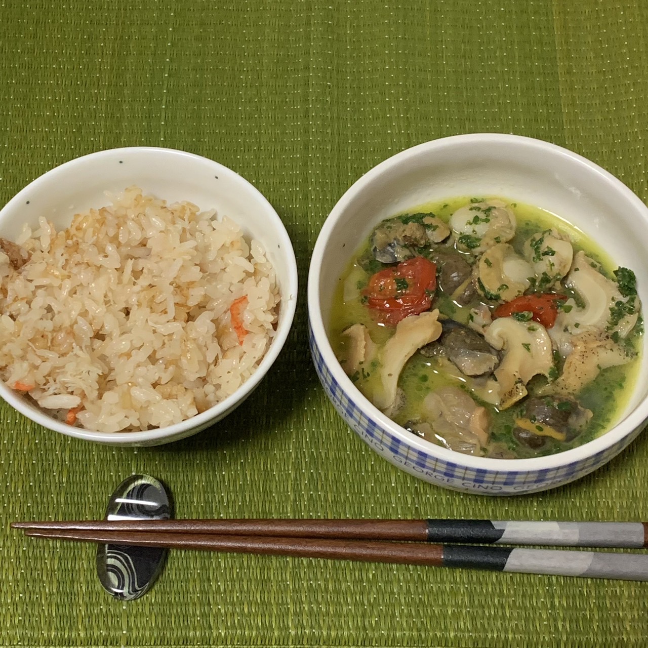 バイ貝は普段食べることないですが、身はぷるぷるでとろける美味しさ、貝柱は歯応えがあり、肝はレバーのような食感と味覚でガーリックとあいまって、びっくりです。バジルも苦手な方でも気にならないと思います。